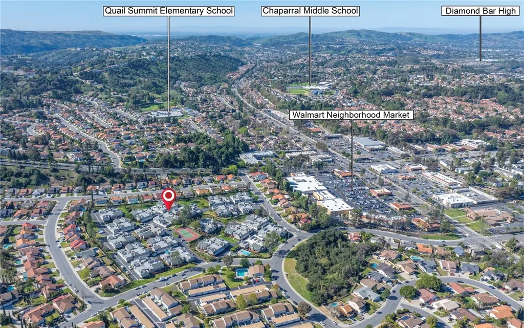 Welcome to the most prestigious Cimarron Oaks One neighborhood & Award-winning WALNUT VALLEY SCHOOL DISTRICT within highly rated Quail Summit Elementary, Chaparral Middle, and Diamond Bar High boundary. Pride of ownership in turn-key condition! This desirable End Unit open floor plan with vaulted ceilings with beautifully remodeled features including wood floors throughout. Upgraded kitchen, Bosch appliances, Low-E windows, zebra blind, recess light throughout, tinted window towards S side (HOA approved), newer AC, newer paint, newer water heater, two large bedrooms, balcony, high voltage NEMA 14-50 outlet for electric car, two car attached garage with laundry and sink inside. Enjoy Summer & take a dip in the community POOL & SPA or play some TENNIS. HOA dues include water, trash, fire insurance, exterior termite service, and common area maintenance. Centrally located in the heart of Diamond Bar with walking distance to the market, restaurants, banks, and shopping. Easy access to 60 & 57 Freeways. Do not miss!!