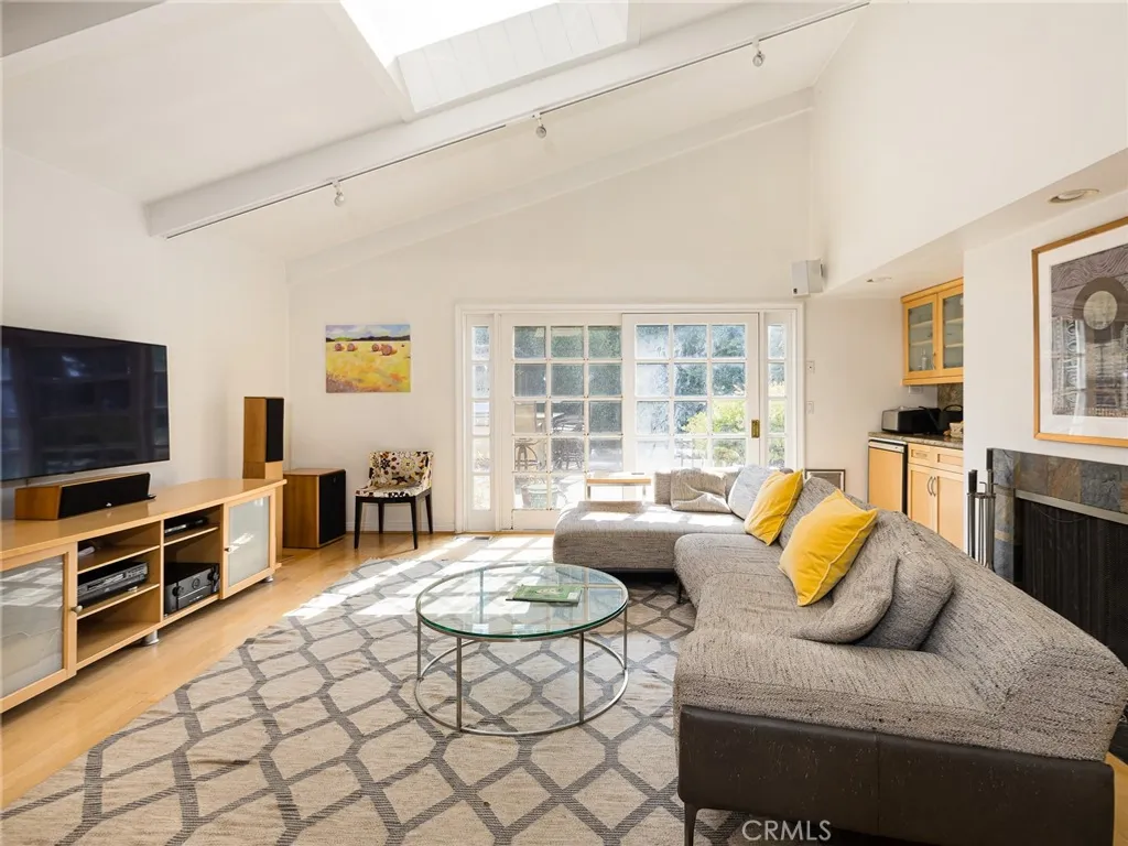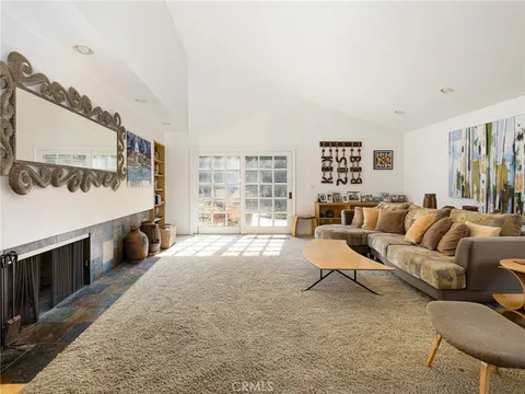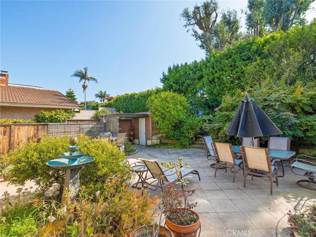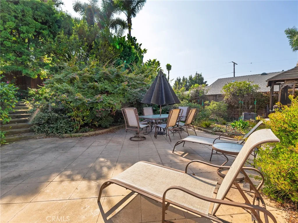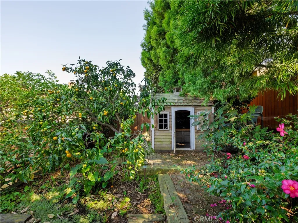 Spacious home with exceptional indoor-outdoor living! This beautifully maintained, ~2600 square foot residence offers an ideal blend of comfort and functionality throughout. The main level features an open concept kitchen with plenty of cabinet space, a large peninsula, five burner Thermador stove, double oven, and a dishwasher. The kitchen opens directly to the inviting living room which presents high ceilings, skylights, a fireplace, and a wet bar with a mini-fridge. Across the hallway from the kitchen, the large dining area connects directly to the family room which also features a fireplace, high ceilings, and built-in storage. The living and the family rooms both provide direct access to the sizeable and private backyard - an entertainer's dream showcasing a built-in outdoor grill with a dedicated gas line and peninsula, a garden shed, hot tub, fountain, California native plants, and mature fruit trees (two lime, one lemon, and one tangerine). The dining area also opens to its own serene garden space on the west side of the home. Back inside, all bedrooms are situated on the main floor of the home. The large primary suite includes a balcony, two closets (including a walk-in closet), and an en-suite bathroom with dual vanities and a shower. The second and third bedrooms are generously sized and each have walk-in closets, while the fourth bedroom can similarly serve as a great bedroom/office. A full bathroom with dual vanities, a shower, and a tub is conveniently positioned between the other three bedrooms. Moreover, a convenient half bathroom sits just off the entry, perfect for guests. Downstairs features an oversized laundry room with access to an immense storage area under the home as well as a two-car garage with built-in storage. Additional highlights include central heat, recessed lighting, built-in cabinetry, and abundant storage throughout. Combining open spaces, an ideal layout, and lush outdoor amenities, this home offers versatile living in a peaceful and private setting.