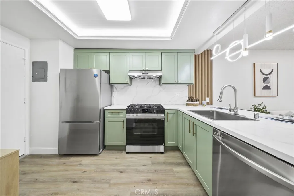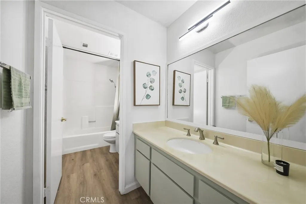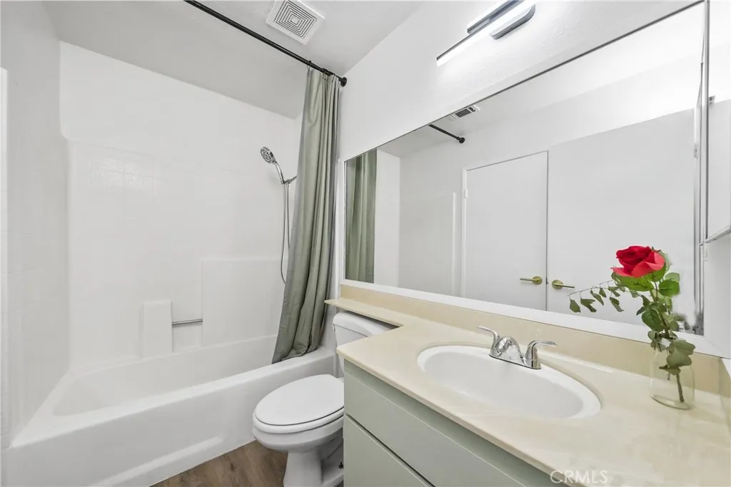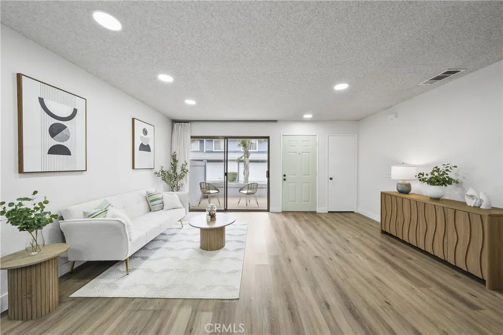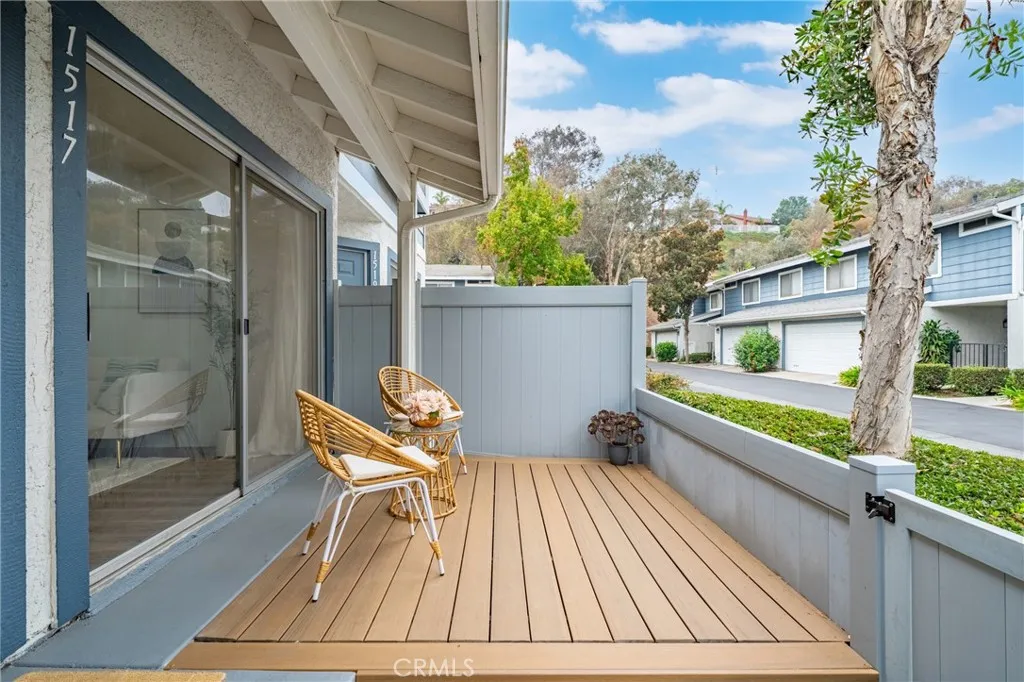 Welcome to 1517 McCabe Way, located in the gated Solana Park community in West Covina. This two-story home features 2 bedrooms, 1.5 bathrooms and 1/4 bath with sink. Approximately 1,025 square feet of living space. The main level offers an open floor plan combining the updated kitchen, dining, and living areas. The kitchen includes new cabinetry, quartz countertops with matching backsplash, a gas range with stainless-steel hood, a dishwasher, and a functional center island. Sliding glass doors from the living room open to a private front patio with a new composite deck, providing a comfortable outdoor space. A guest powder room and a storage closet complete the first floor. Upstairs has two bedrooms on opposite sides for privacy, both with spacious closets, and a shared full bathroom. A dedicated laundry room adds convenience. The attached two-car garage features a new epoxy floor, and guest parking is available throughout the community. Solana Park offers two swimming pools, a spa, picnic areas, with HOA covering common area maintenance and trash service. The home is close to Merced Elementary, Hollencrest Middle, West Covina High School, Mt. San Antonio College, shopping centers, restaurants, and easy access to the 10 and 60 freeways.