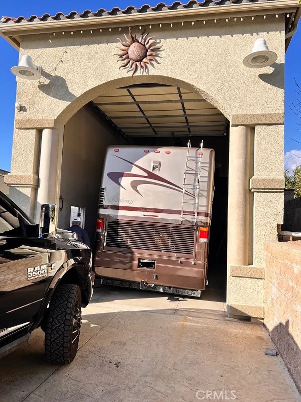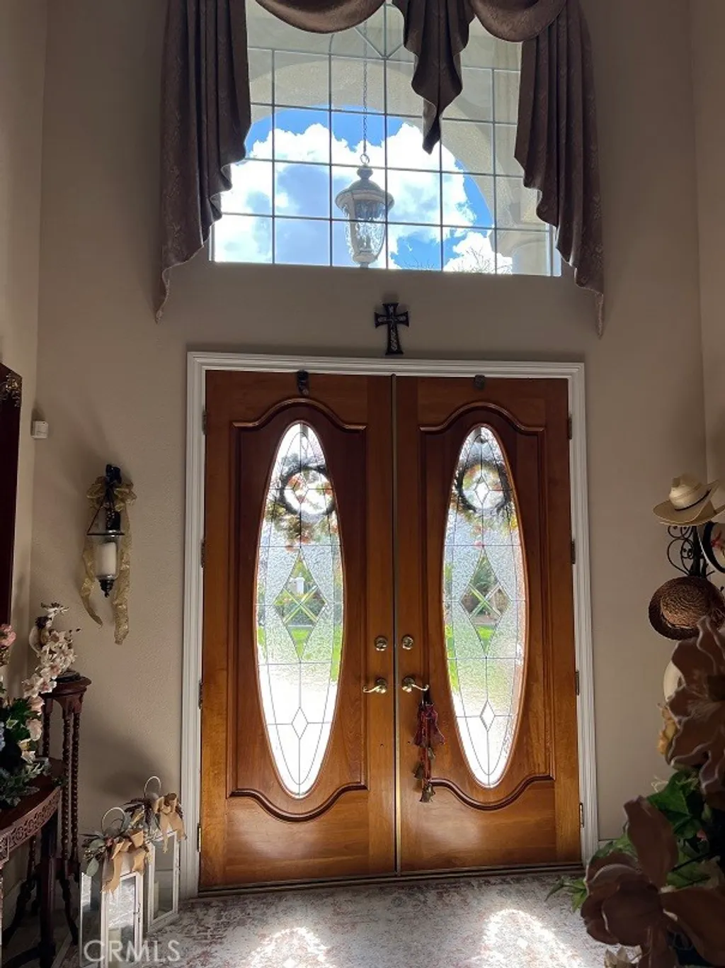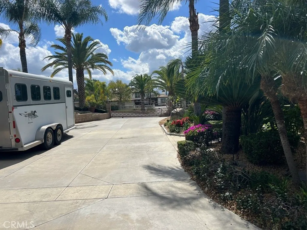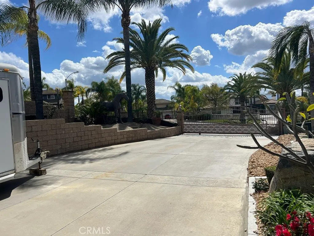 Start living your dream in this paradise that embraces comfort, luxury, tranquility, and elegance. Ideally planned on a quiet Cul-De-Sac with breathtaking views of summer sunsets, and mountain views. Property entrance with a custom automated iron gate with secure digital and remote access. Extra-long driveway for multiple RVs and a Grand RV garage large enough for a 42-footer RV. Landscaped with meticulous care and drought resistant plants in the front, and grass in the back for children to play. Mature trees and fruit trees throughout. Elegant entrance with exquisite double solid wood doors and ceramic tile floor throughout first floor. Spiral elegant wood stairway casing professionally crafted in the front and a 2nd stairway access in the back for casual access or service access. Inviting formal living room with cathedral ceilings and luxury chandelier lighting. Mediterranean style formal dining room, Classic grey granite counter tops over oak kitchen cabinets. Kitchen equipped with double stainless-steel ovens, microwave oven, dishwasher, food warmer, stainless steel stove, and a separate ice maker. Plantation shutters throughout the whole house and some rooms with custom window decorations. Chandeliers and ceiling fans. Burbon carpet and professionally installed ceramic tile. 6-inch baseboards and crown molding throughout the home. Purchased 47 solar panel system that generates enough electricity to power the entire estate at an estimated savings of 85%. Intercom system, dual ac units with their own thermostats, central vacuum system, and alarm system. 3 of the 5 bedrooms have their own private bathrooms. The inviting outdoor living comes with an extra-large custom pool with remote controls that can be operated from inside the house, beach entrance, Spa, decorated with a waterfall and a kiddie pool. The patio, barbecue, and fire pit were designed to entertain large groups for summer and cold nights. The extra-large RV garage was designed with great architecture for large motorhomes with large amperage for sustainable recharges. And do not forget the horse stalls for the modern cowboys that love comfort and country living combine in the same paradise. Large office room with separate access that can be used for work or play. Enjoy the NO HOA and no Special assessment restrictions. All of this and more in the prestigious area of Wood Crest.