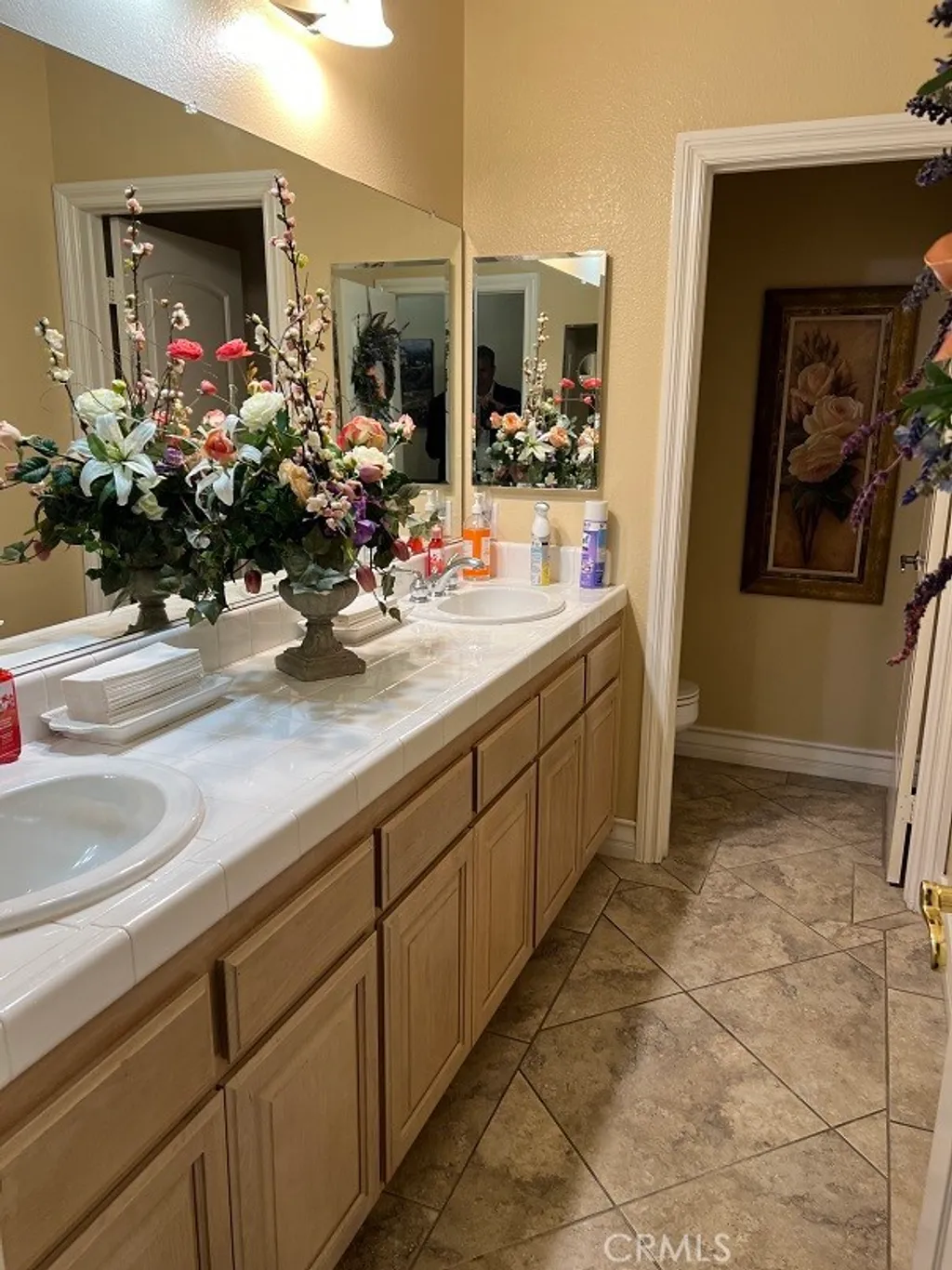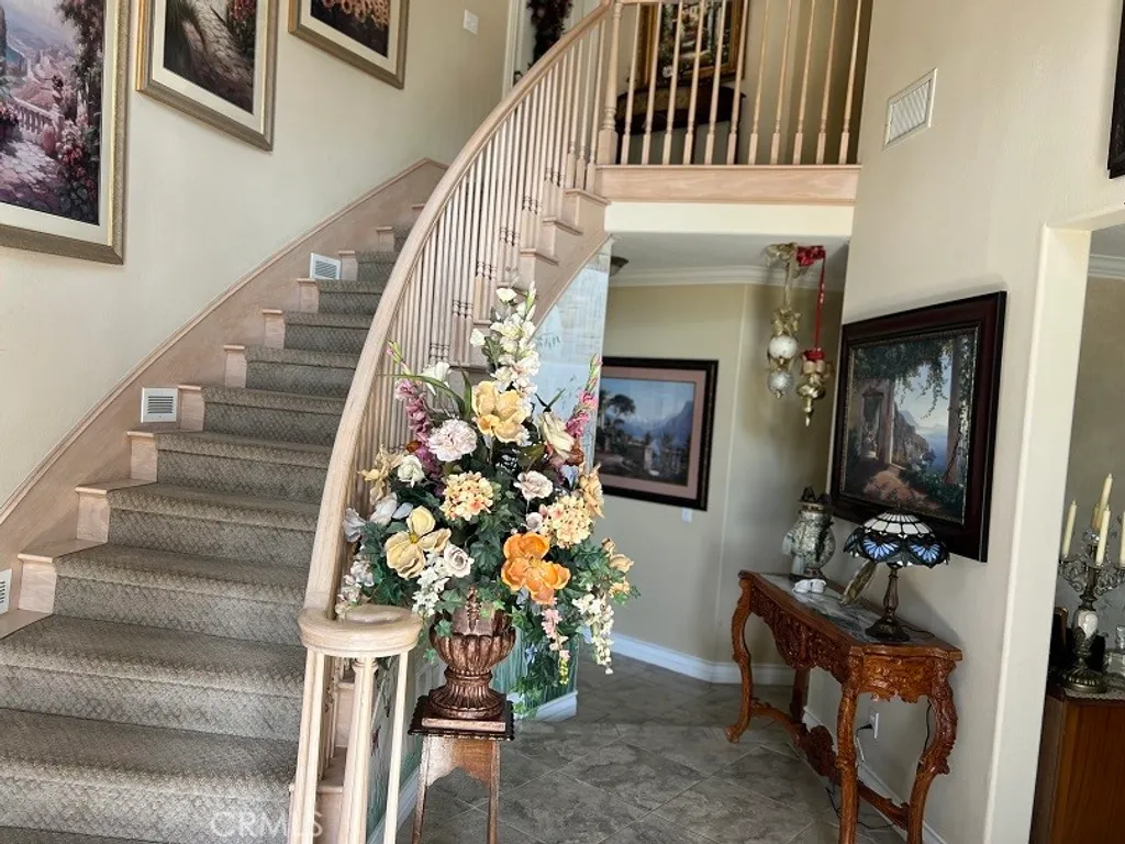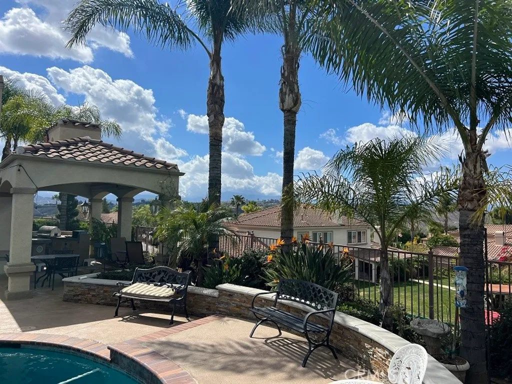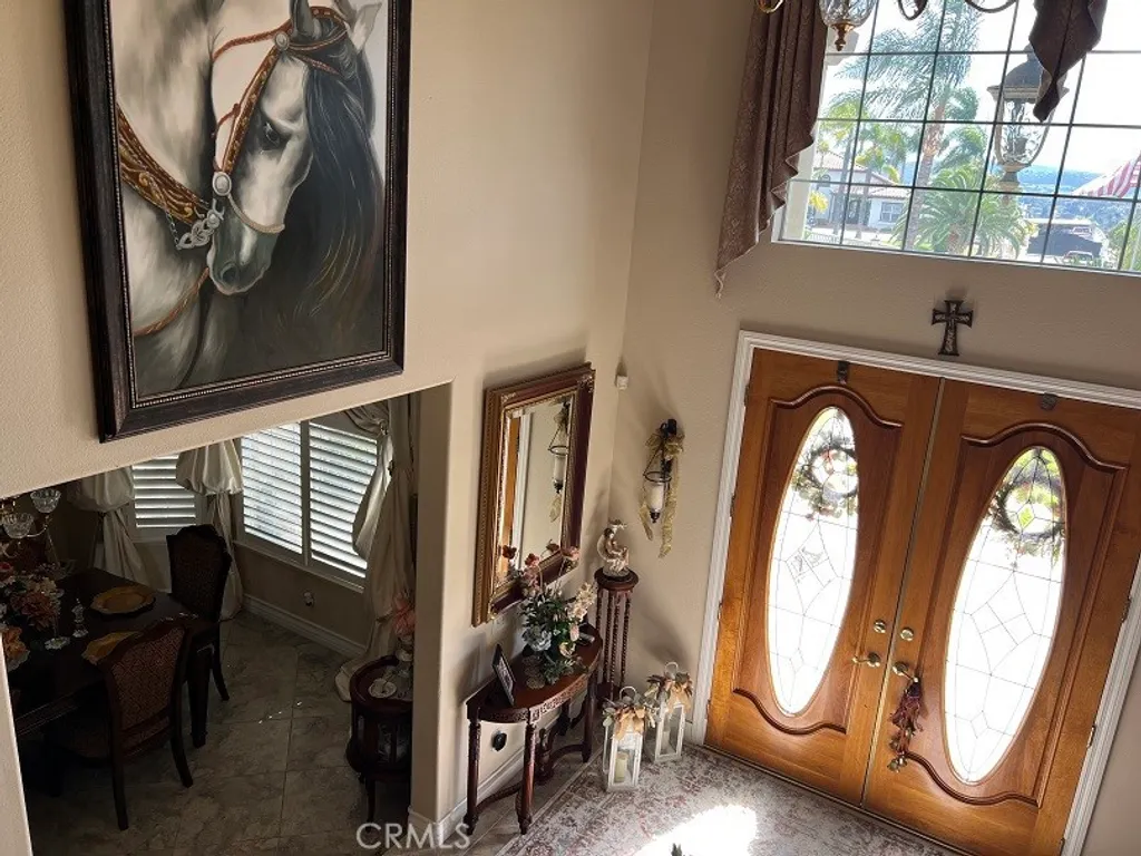 Start living your dream in this paradise that embraces comfort, luxury, tranquility, and elegance. Ideally planned on a quiet Cul-De-Sac with breathtaking views of summer sunsets, and mountain views. Property entrance with a custom automated iron gate with secure digital and remote access. Extra-long driveway for multiple RVs and a Grand RV garage large enough for a 42-footer RV. Landscaped with meticulous care and drought resistant plants in the front, and grass in the back for children to play. Mature trees and fruit trees throughout. Elegant entrance with exquisite double solid wood doors and ceramic tile floor throughout first floor. Spiral elegant wood stairway casing professionally crafted in the front and a 2nd stairway access in the back for casual access or service access. Inviting formal living room with cathedral ceilings and luxury chandelier lighting. Mediterranean style formal dining room, Classic grey granite counter tops over oak kitchen cabinets. Kitchen equipped with double stainless-steel ovens, microwave oven, dishwasher, food warmer, stainless steel stove, and a separate ice maker. Plantation shutters throughout the whole house and some rooms with custom window decorations. Chandeliers and ceiling fans. Burbon carpet and professionally installed ceramic tile. 6-inch baseboards and crown molding throughout the home. Purchased 47 solar panel system that generates enough electricity to power the entire estate at an estimated savings of 85%. Intercom system, dual ac units with their own thermostats, central vacuum system, and alarm system. 3 of the 5 bedrooms have their own private bathrooms. The inviting outdoor living comes with an extra-large custom pool with remote controls that can be operated from inside the house, beach entrance, Spa, decorated with a waterfall and a kiddie pool. The patio, barbecue, and fire pit were designed to entertain large groups for summer and cold nights. The extra-large RV garage was designed with great architecture for large motorhomes with large amperage for sustainable recharges. And do not forget the horse stalls for the modern cowboys that love comfort and country living combine in the same paradise. Large office room with separate access that can be used for work or play. Enjoy the NO HOA and no Special assessment restrictions. All of this and more in the prestigious area of Wood Crest.