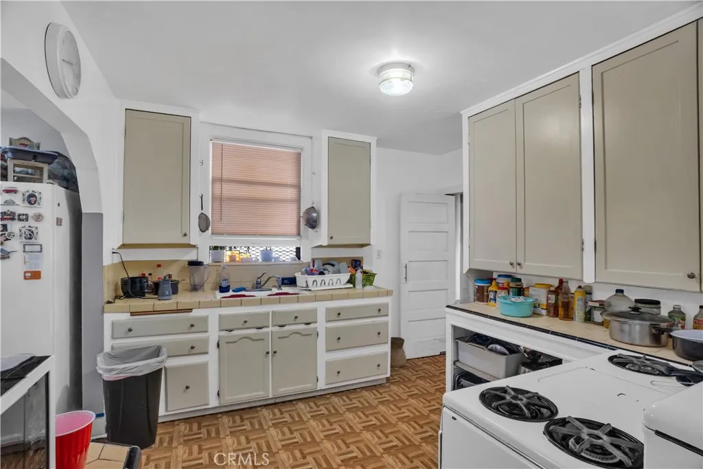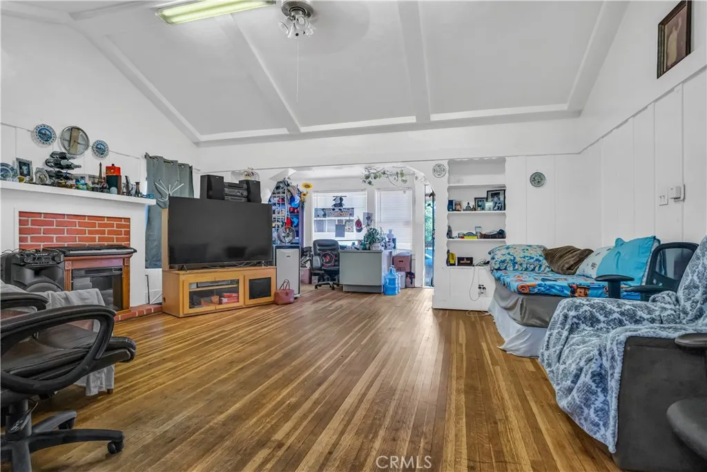 PRICE REDUCED TO SELL with NOT ONE but TWO rental units in rear with separate entrance. Home is LARGE with lots of character and personality. Boasts of original character with the ability modify as desired or leave its quaint appearance. Living room features very high beamed celings with fireplace, foyer, LARGE dining room area with chandeleir, LARGE kitchen w/eat-in breakfast area with lots of light and windows, overlooking backyard surrounded by fruit trees and peace. Some upgrages and separate laundry room. Minutes from DTLA, SOFI, USC, CRYPTO Arena & Convention Center. Great for multifamily and/or income from nearby college students. Come see this one while it lasts!