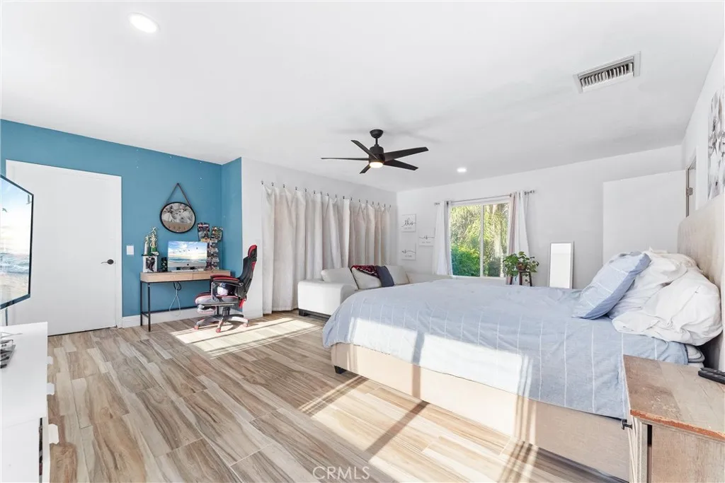 Welcome to 16940 Calle Espuela, located in the desirable Woodcrest neighborhood! This home is perfectly situated on a peaceful cul-de-sac and offers privacy, space, and endless possibilities. As you enter through the gated driveway, you're greeted by a beautiful, tree-lined approach leading to your home, which sits on an expansive 2.21 acres of land. There's plenty of room to create your dream space whether it's adding an ADU, pool, sports court, workshop, or even room for a couple of horses. This unique ranch-style home is perfect for multi-generational living, featuring two large primary suites with ensuite bathrooms, each in a separate wing of the house, along with two additional bedrooms and another bathroom. The formal dining room offers stunning views of the back of the property, all the way to the hills. Inside, you'll find upgraded bathrooms, an open kitchen with a walk-in pantry, and an inside laundry room. Recent updates include newer carpet, upgraded windows, and laminate flooring. As the weather cools down, the large rock fireplace, set under beautiful open wood beam ceilings, creates a warm and inviting place to gather. Step outside to enjoy the natural beauty of the property, surrounded by mature trees, plumeria, palm trees, and various citrus and fruit trees. Relax on one of the hanging swings, enjoy the sound of water cascading from the fountain, or gather around the firepit for cozy evenings under the stars. This property is truly one-of-a-kind, offering the perfect balance of space, comfort, and opportunity. Come see it for yourself and imagine all the possibilities!