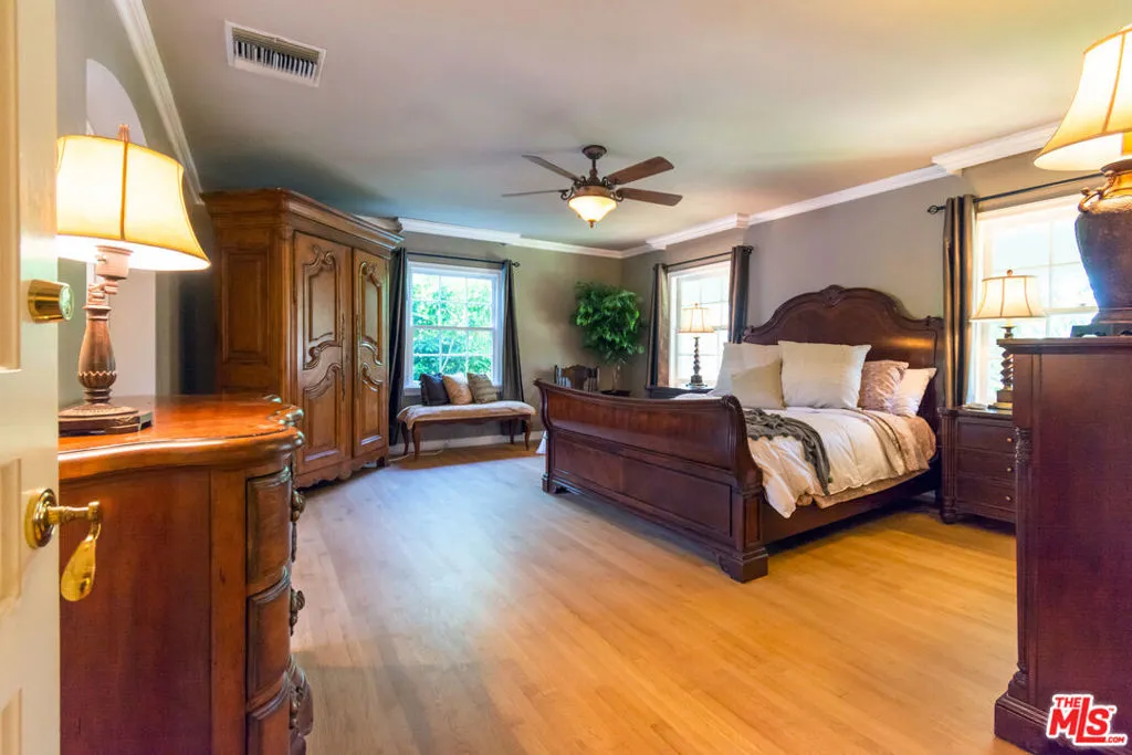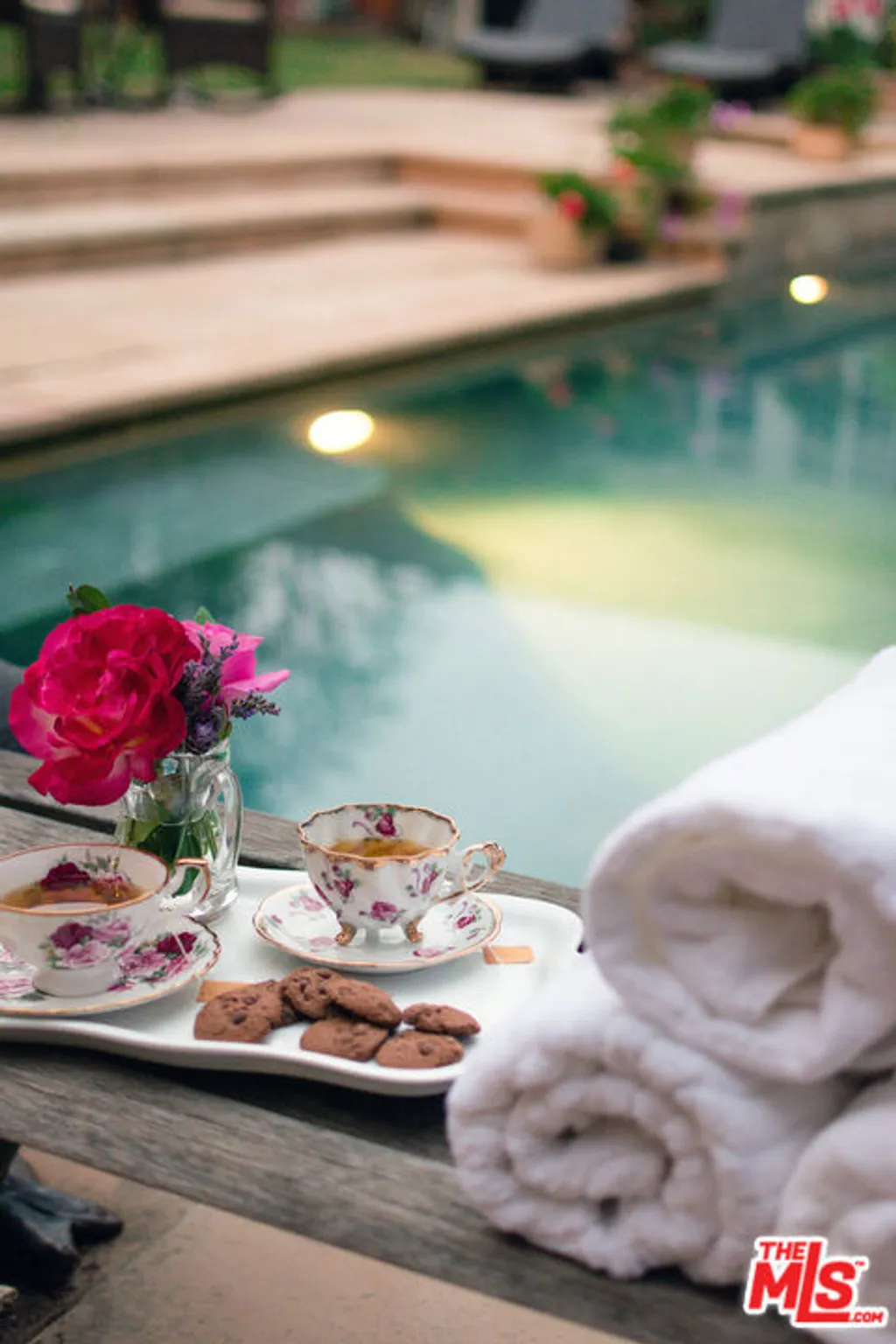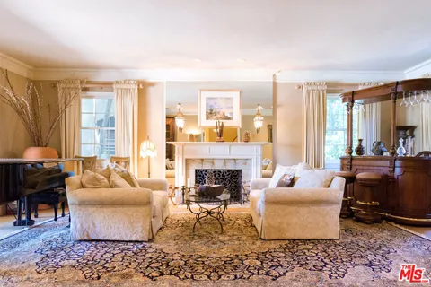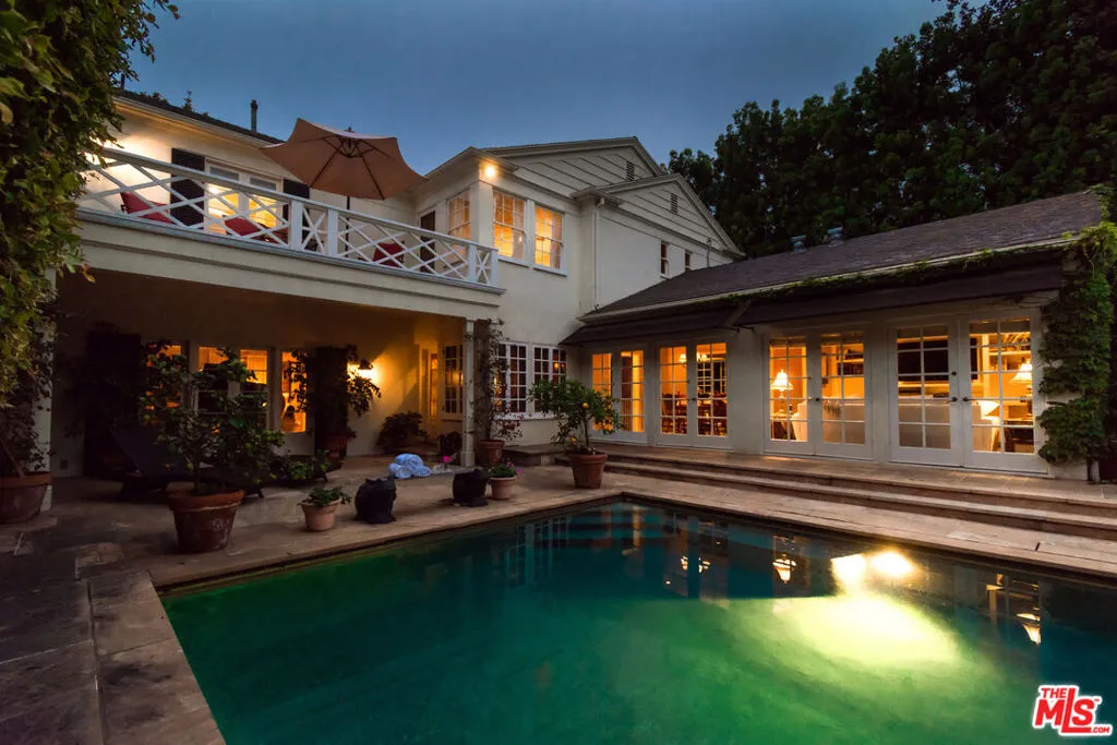 Secluded southern Colonial nestled on over 1/4 of an acre in the Beverly Hills Flats only 3 blocks from Beverly Hills Hotel! Approximately 5,000 S.F. of living space. Estate has beautiful hardwood floors, crown moldings, french doors, top of the line gourmet kitchen (2 New Miele Dishwashers/New Subzero Refrigerator/Freezer) with breakfast room with own sitting area. Gigantic balcony off master. Library with thoughtful built-ins, Huge formal dining room. The grounds are perfect for comfortable gatherings with pool, spa, grassy yard and 1000 s.f. guest house with full bathroom. Very private with tall shrubs surrounding front, sides of property and back yard. Home featured in Robert De Niro's movie, "What Just Happened."