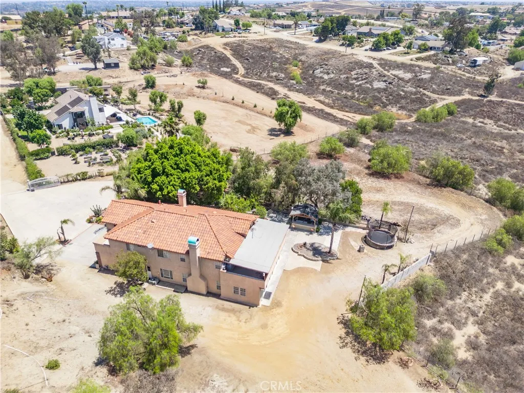Custom home on 2 ACRES in WOODCREST! This custom-built 5 Bedroom, 3 Bath estate is nestled in the heart of Woodcrest. This property offers privacy, panoramic views from TWO balconies & a lavish master SUITE. The large KITCHEN features custom cabinets, an island with built-in sink and plenty of storage for a clutter-free home. The living room features a wet bar with a prep sink. The abundant natural light and vaulted ceilings create an inviting atmosphere featuring TWO cozy fireplaces. A convenient downstairs bedroom and full bath make multigenerational living possible. The regal staircase leads to FOUR bedrooms upstairs. Double doors open to a primary suite with a private balcony and breathtaking views of the backyard. The luxurious ensuite bathroom features a large walk-in closet and soaking tub with separate shower. Two bedrooms share a Jack-and-Jill bath with double sinks. A spacious balcony overlooking the front yard connects two of the bedrooms. Includes custom chicken coops, an area for horse keeping with water nearby and a variety of mature FRUIT trees. The covered patio and BBQ ISLAND are perfect for entertaining. Plenty of space for a Workshop or RV/Boat storage. The agricultural zoning allows flexibility for equestrian & livestock uses. Plenty of space for ADU or 2nd Dwelling. Enjoy breathtaking sunset and mountain views in an area known for tranquility, open skies, and space to thrive. LOW property taxes, excellent schools, and easy access to all the essentials. This home can bring YOUR dreams to life. Schedule your private tour TODAY!