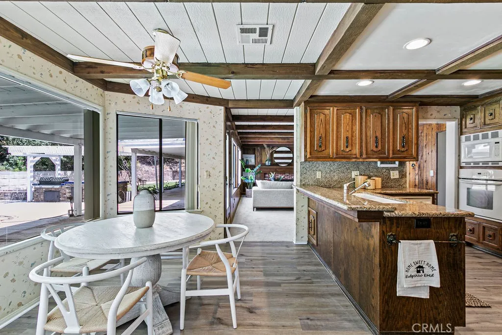 Situated in the coveted rolling hills of Villa Park, this commanding estate sits at an elevated position to the street and exudes the timeless elegance of a time past. In the same family for nearly 4 decades, this timeless traditional styled home is ready for the next buyer to bring it back to its former glory. Perched atop an elevated lot, this home screams potential for a truly impressive elevation and curb appeal. This 5 bed, 4 bath estate boasts nearly 4000 square feet of living space, a spacious traditional floorplan, and large entertaining styled backyard. Enter through lead glass inlaid front doors w/ elegant sidelights into a spacious entry and show style living room. Living room is huge with large windows letting in tons of light. Living room is open concept with the dining room giving a large spacious feel and easy entertainment space for those cherished holidays. Kitchen is dated but locationally perfect, with easy access for dining room serving, rear located for easy vision to the backyard and sprawling pool, and direct proximity to the family room. This kitchen is the central hub of the downstairs floorplan. The family room is rear floorplan located and has easy access to the entertaining styled backyard. Huge window walls give full line of site to the entire yard. Framed with an antique brick fireplace, wood paneled walls, exposed wood beams, and natural wood styled mantle, this room exudes the rich and elegant finishes of the period it was built. HUGE bonus room feels so nostalgic. Floor to ceiling brick finished fireplace wall, w/ wood stacking cove, built in bar, wood paneling, window wall, and billiards table reminds one of the fun this room would have been. This floorplan has a DOWNSTAIRS BEDROOM with easy downstairs bath access. Spacious laundry and three car garage are also big benefits. Upstairs one finds the primary bedroom and bath. The primary is sprawling, with corner windows that allow plenty of light to flood in. Primary bath is spacious with room to renovate. Secondary bedrooms are spacious, and hall bath is also ready for a facelift. Space for dual vanity sinks, tub and shower, and water closet make this a larger than normal space with plenty of potential. Backyard instantly reminds us of a simpler time, with HUGE covered patio for those lazy summer days. There is plenty of grass for room to run, large pool and elevated spa, lush but overgrown mature landscape, fire pit, gazebo, dog run, and swing set. Call for more details!
