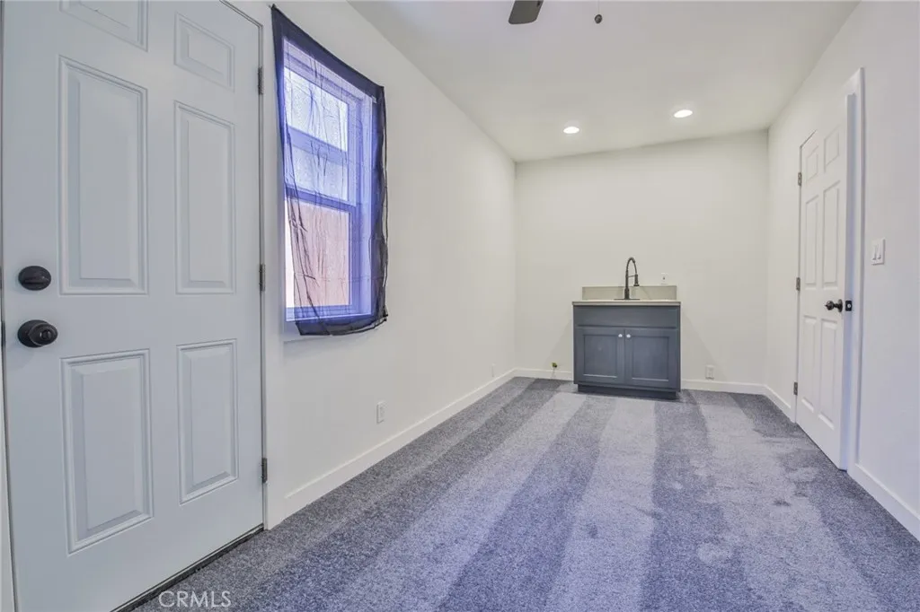 Great Starter Home with large backyard. Move in ready... Partially converted garage with kitchenette that could be used as a 3rd bedroom or a rental single with its own side door. Features include: 2 Bedrooms / 2 Bathrooms + Partially Converted Garage with a Kitchenette, Beautiful kitchen with granite counter tops, updated bathrooms, Tile flooring in Living room, Kitchen, and Baths, New Carpet in Bedrooms. Uncovered driveway parking. Alarm on property, Freshly painted interior and exterior. This is a must see!