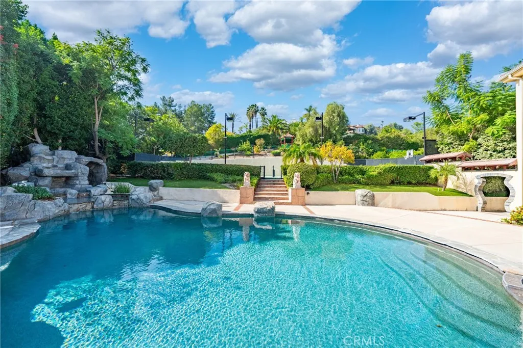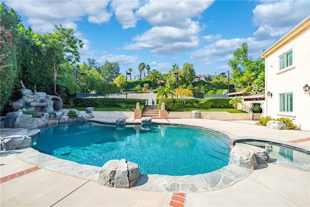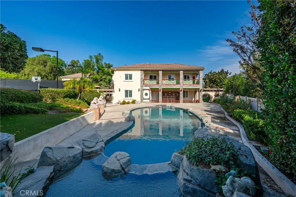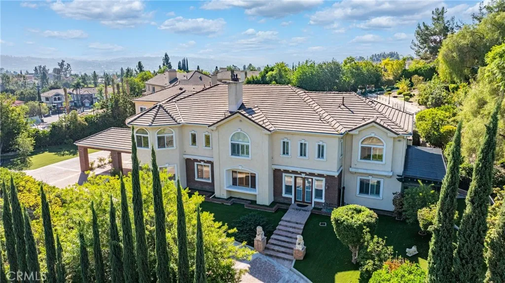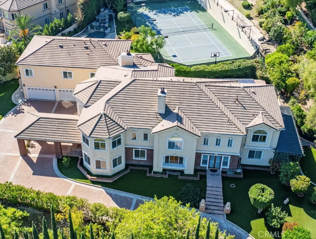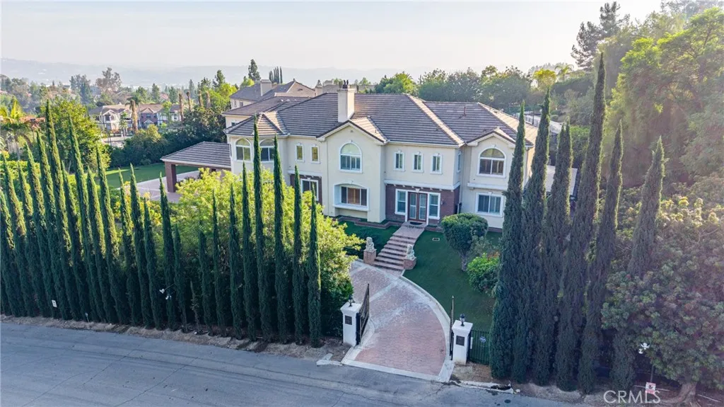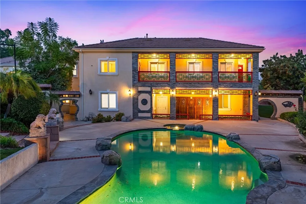 Welcome to a world of timeless elegance and refined sophistication. Tucked away in the prestigious Emerald Hills Estate community of Walnut, this magnificent custom-built mansion is a true architectural gem - designed for those who demand the very best in craftsmanship, privacy, and comfort. A grand private gate and long sweeping driveway set the stage for this stately residence, offering over 9,094 square feet of opulent living space surrounded by other multi-million-dollar custom estates. Grand Interiors. Step through the double doors into an impressive foyer crowned with a dazzling crystal chandelier and soaring ceilings that immediately evoke a sense of grandeur. The formal living room exudes warmth and elegance with its cathedral ceiling and fireplace, while the formal dining room provides an exquisite setting for hosting lavish gatherings. The gourmet kitchen is a culinary showpiece, featuring granite countertops, a center island, and stainless-steel appliances - perfectly balancing beauty and functionality. A spacious family room with a custom wet bar offers the ideal backdrop for relaxed entertaining. The mansion boasts total 8 bedrooms and 9 bathrooms, including six expansive bedroom suites, and two suites on the main level - ideal for guests or multi-generational living. The primary suite defines indulgence, featuring a private sitting area, walk-in closet, romantic fireplace, and a spa-inspired bath retreat that rivals a five-star resort. Entertainment & Relaxation. Every detail has been crafted for a lifestyle of leisure and sophistication. The resort-style backyard is a true sanctuary - complete with a sparkling pool and spa, waterfall feature, full-size tennis court with lighted, outdoor BBQ pavilion, gazebo, and a tranquil Chinese-style garden surrounded by fruit trees and lush landscaping. Exceptional Features Private elevator to all levels Four-zone central air and heating system Four-car garage with EV charging prewire Water softener system Sauna Central vacuum and advanced security system Professionally designed landscaping throughout. Set on a private and quiet cul-de-sac within the award-winning Walnut Valley Unified School District, this extraordinary residence offers both prestige and convenience - just minutes from fine dining, shopping, and major freeways. A rare opportunity to own one of Walnut's most distinguished estates.