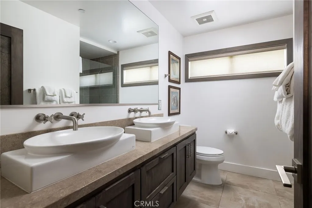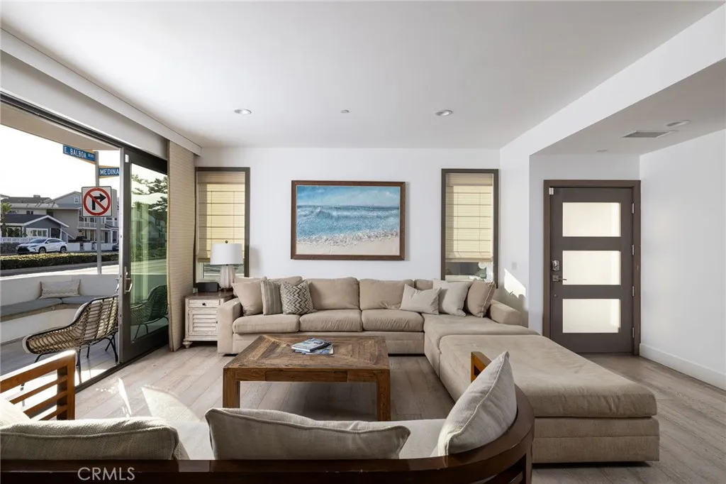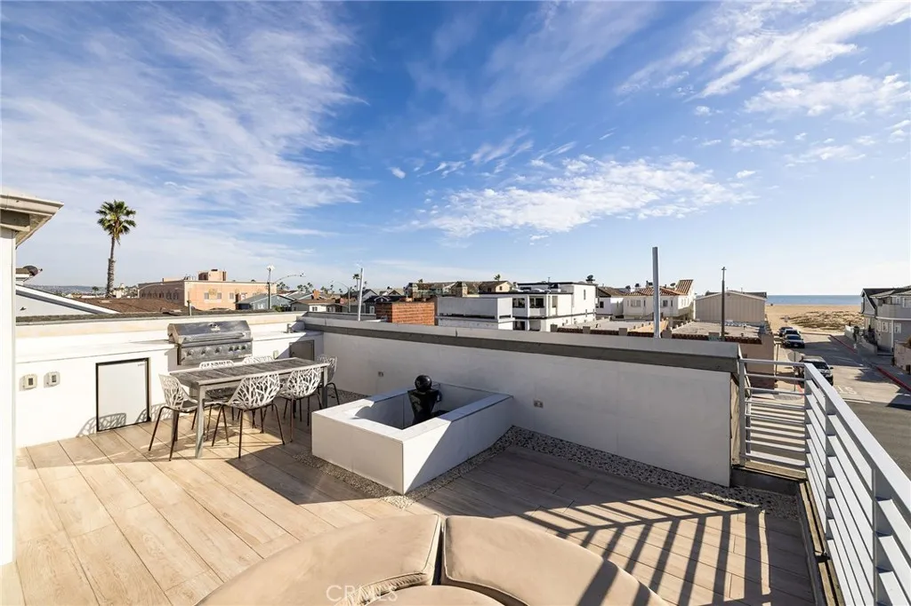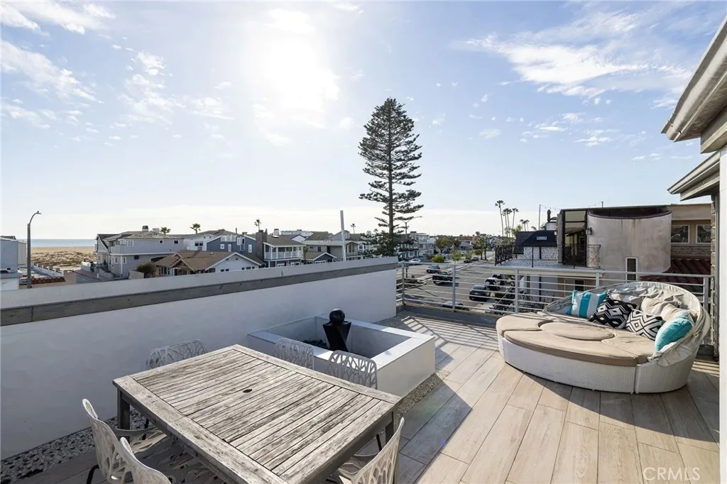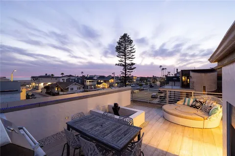 Immerse yourself in coastal sophistication with this remarkable tri-level corner-lot beach home, offering over 3,000 sqft of beautifully crafted living space and a breathtaking rooftop deck with ocean views. Completed in 2017, this contemporary gem is just moments from the beach and harbor, delivering stunning panoramas from every floor. Designed for effortless enjoyment, it comes fully furnished with TVs, a Sonos sound system, and stand-up paddle boards making it completely move-in ready. Inside, stylish wide-plank wood-look tile flooring flows throughout the thoughtfully designed interior. The chef s kitchen is a culinary dream, showcasing a striking marble island, a high-performance 48" Thermador dual oven range, and top-tier finishes. The inviting living area seamlessly extends to a private front patio through oversized sliding glass doors, creating an ideal space for entertaining or relaxing in the coastal breeze. The second level features four spacious bedrooms, including a refined primary suite, as well as a conveniently located laundry room and three additional guest rooms. On the top floor, a private en-suite fifth bedroom opens to its own outdoor deck. The rooftop retreat is designed for ultimate relaxation, complete with a built-in outdoor kitchen, a cozy firepit, and a tranquil water feature perfect for sunset gatherings or unwinding under the stars. Additional highlights include a 2-car direct-access garage, an elevator, a wide alley, ample side street parking, and underground utilities. Situated just a short walk from the Balboa Fun Zone, Balboa Pier, and a variety of dining and shopping destinations, this R2-zoned property offers exceptional versatility. With a coveted short-term rental permit, it presents an outstanding opportunity as a primary residence, vacation home, or lucrative investment. Experience the best of Newport Beach with this coastal retreat that blends luxury, convenience, and seaside charm.