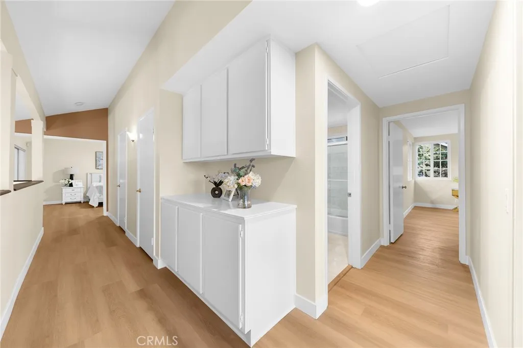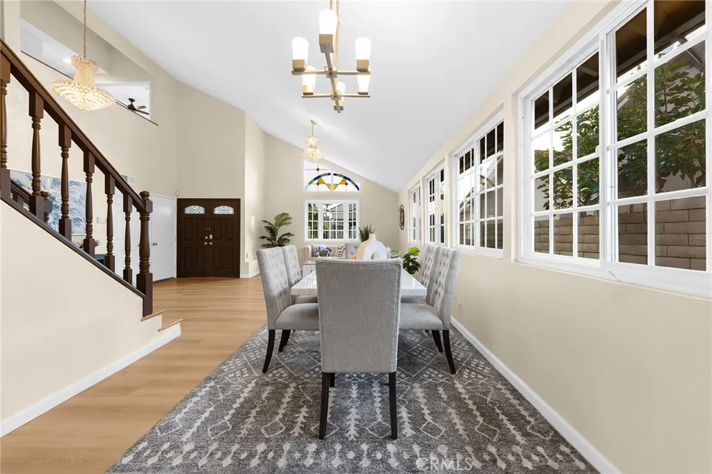 Welcome to this beautifully upgraded 4-bedroom, 3-bathroom residence located in one of Walnut's most desirable neighborhoods, served by the top-ranked Walnut Valley Unified School District. Offering a spacious and functional layout, this home is perfect for families or multigenerational living. The main level has no steps throughout, which features a bright formal living and dining area with soaring ceilings, a convenient ground-floor bedroom with a full bathroom, and an inviting family room anchored by a cozy fireplace. The fully remodeled kitchen showcases quartz countertops, a peninsula with breakfast bar seating, stainless steel appliances, Thermador stove and kraftMaid wood cabinetry - perfect for the home chef. The entire interior has been freshly painted, and new flooring spans both levels. Upstairs, the primary suite boasts vaulted ceilings, a generous walk-in closet, and a spa-inspired bathroom with dual sinks, a soaking tub, and a separate shower. Two additional bedrooms share a well-appointed hall bathroom. Recent upgrades include fresh interior paint, brand-new water heater, new attic insulation, a newer central A/C system, a fully remodeled kitchen, and updated flooring. The home faces directly south, filling the interior with natural light throughout the day. The backyard is beautifully landscaped, offering a serene setting ideal for outdoor dining, relaxation, and entertaining. Additional highlights include an indoor laundry room and a 3-car attached garage. Ideally located just minutes from award-winning schools, parks, shopping centers, and convenient access to the 60, 57, and 10 freeways, this move-in-ready home blends modern comfort with unbeatable location.