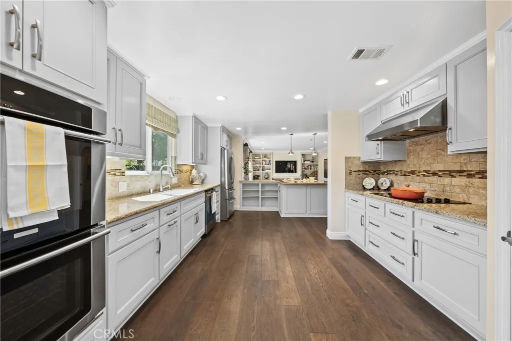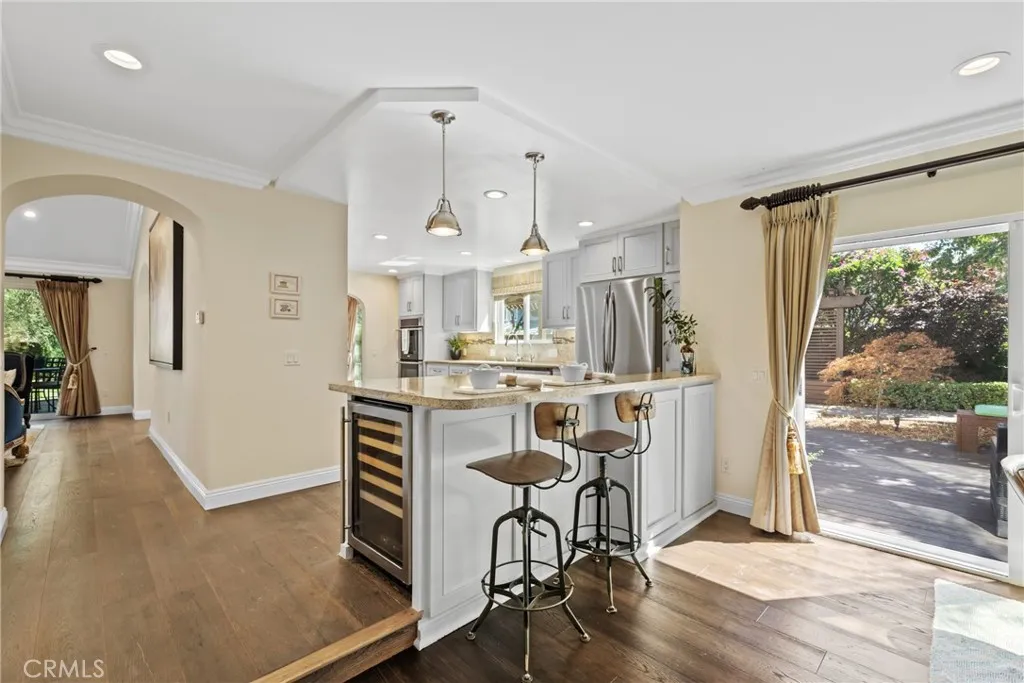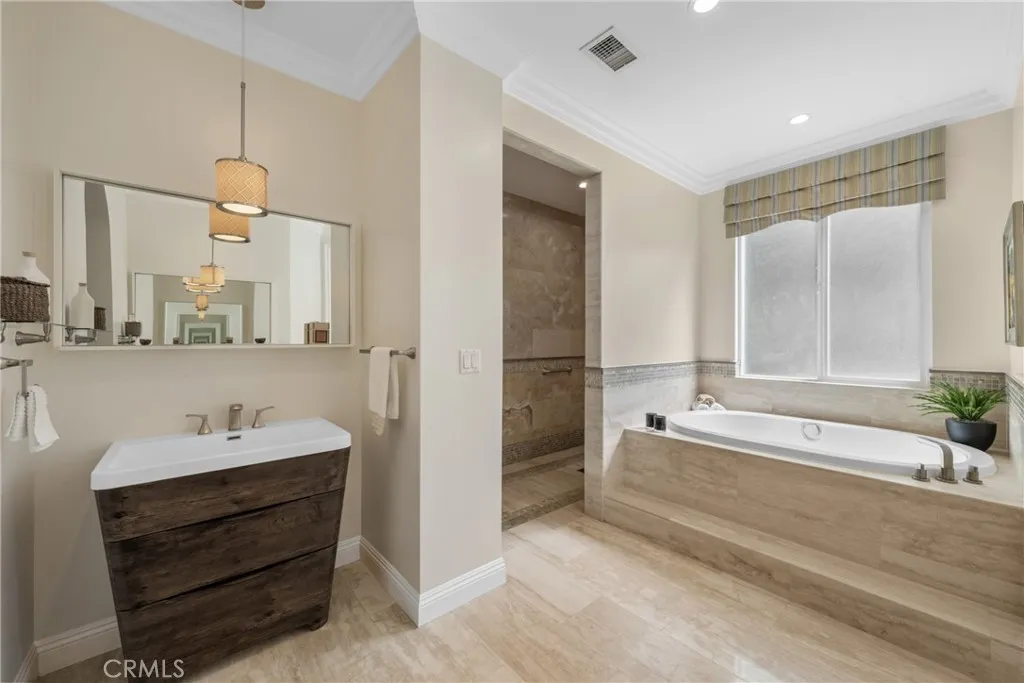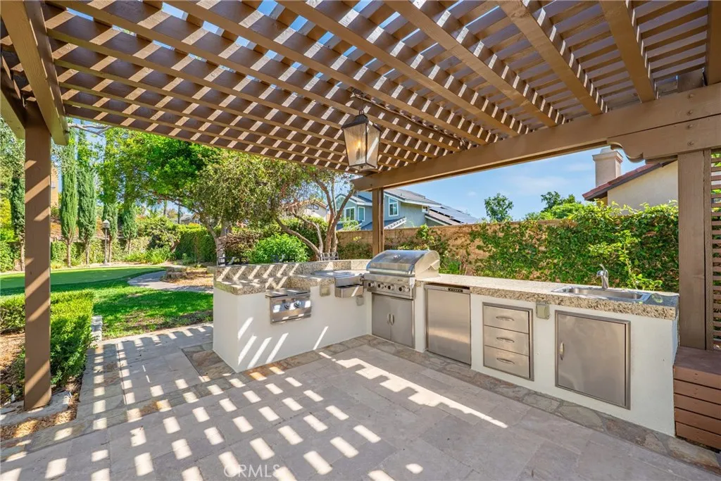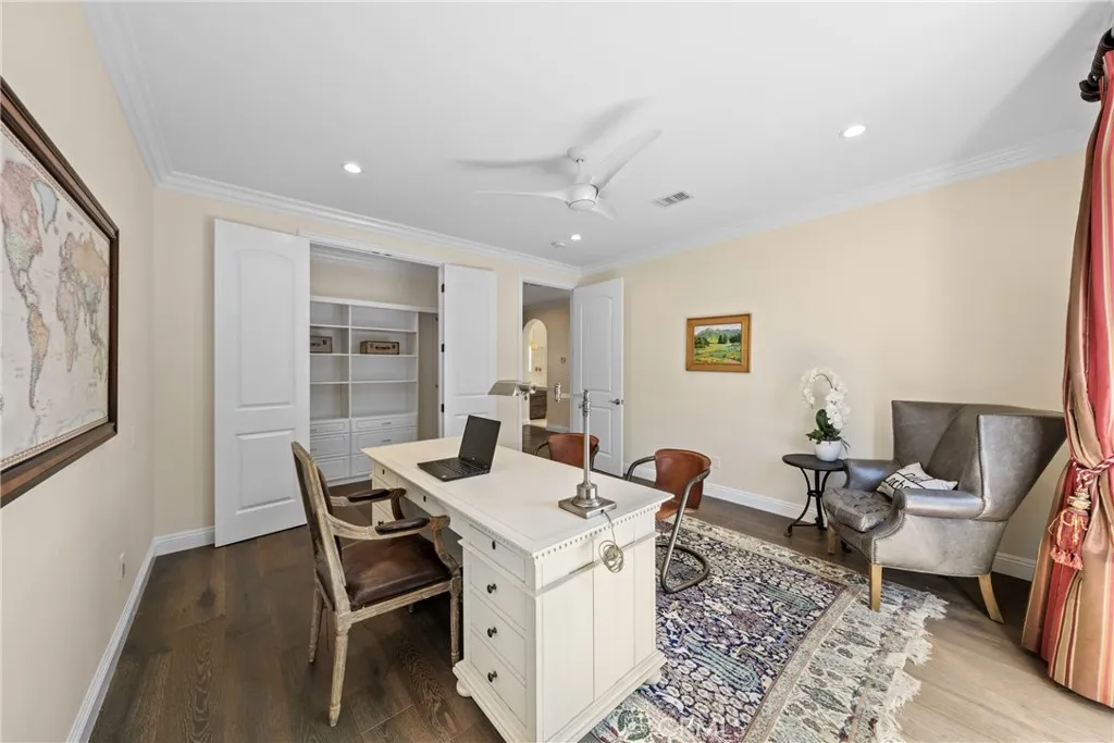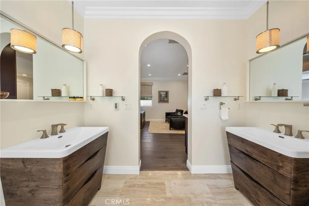 Welcome to a stunningly updated estate in the coveted Snow Creek neighborhood of Walnut, where modern elegance meets resort-style living. This 5-bedroom, 3.5-bathroom residence has been meticulously upgraded to deliver an elevated lifestyle, combining exceptional beauty with seamless functionality. Step through the elegant entry foyer and into a grand living room with a soaring ceiling and a 12-foot-wide, floor-to-ceiling glass door that fills the space with natural light and provides a spectacular view of the landscaped backyard oasis. The adjacent, oversized formal dining room and a separate family room with a cozy fireplace are perfect for family meals and evening relaxation. Both offer direct access to the backyard entertaining area. The chef's kitchen flows seamlessly into multiple living spaces. Flexible and luxurious private quarters The main level features a newer, private two-bedroom suite - a versatile space ideal for multi-generational living or a magnificent, multi-room professional office. A master bathroom and a spacious sitting area complete this wing. Both bedrooms have french doors that open to a secluded deck and a tranquil side yard. Upstairs, a luxurious master suite and two additional bedrooms provide ample space for a growing family. The professionally designed, wrap-around backyard is a true outdoor sanctuary. Multiple decks provide ample space for lounging, while a Koi pond and putting green offer serene and playful pastimes. A built-in fire pit creates a cozy focal point for evening relaxation, and the outdoor kitchen and dining area make summer entertaining a breeze. For the active family, a half basketball court provides endless fun, and a raised-bed vegetable garden awaits the green thumb. Upgrades and conveniences abound, Hardwood flooring and recessed LED lighting throughout the living areas, Custom closet for every bedrooms Tankless water heater and recessed LED lights through the living areas, Fresh interior and exterior paint,3-car attached garage with modern glass-paneled doors, epoxy flooring, and an oversized driveway, Located in the award-winning Walnut Valley Unified School District Convenient access to parks, trails, shopping, dining, and freeways, This rare Snow Creek floor plan masterfully combines timeless elegance with every modern luxury. This isn't just a house; it's a forever home waiting to be filled with new memories.