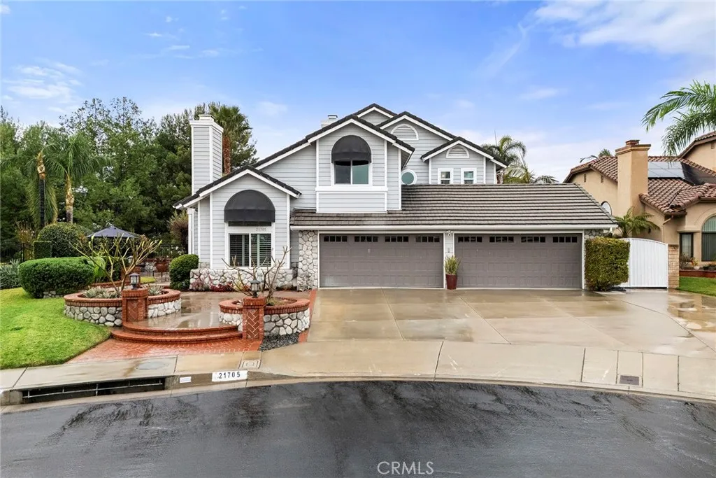 Nestled atop the hills in Yorba Linda at the end of a cul-de-sac, this spacious Brock home boasts a fabulous view of the city lights, hillsides, Disneyland fireworks and on a clear day a view of Catalina in the distance!! It features a formal living room with fireplace and separate formal dining room, split staircase, dual pane windows, plantation shutters, recessed lighting and dual unit central air conditioning. The updated kitchen with silestone counters and white cabinets opens to the family room with cozy fireplace, built-in TV unit and expansive windows encasing the sweeping views. The downstairs bedroom and bath are perfect for those overnight guests. The third fireplace warms the master bedroom suite and retreat...gain access to the walkout viewing deck with glass partitions through the sliding glass door. Two additional bedrooms and one bathroom complete the upper story. Relax on the patio with its retractable awning while enjoying the beauty of the lush landscaping and the sound of the bubbling in-ground spa...you've found your own little paradise!! The four car garage is perfect for the car enthusiast. The solar panels, which are purchased, will keep you cool on those summer evenings. No HOA, freeway close, excellent Placentia/Yorba Linda School District. Close proximity to parks and miles of walking trails. Come buy!!