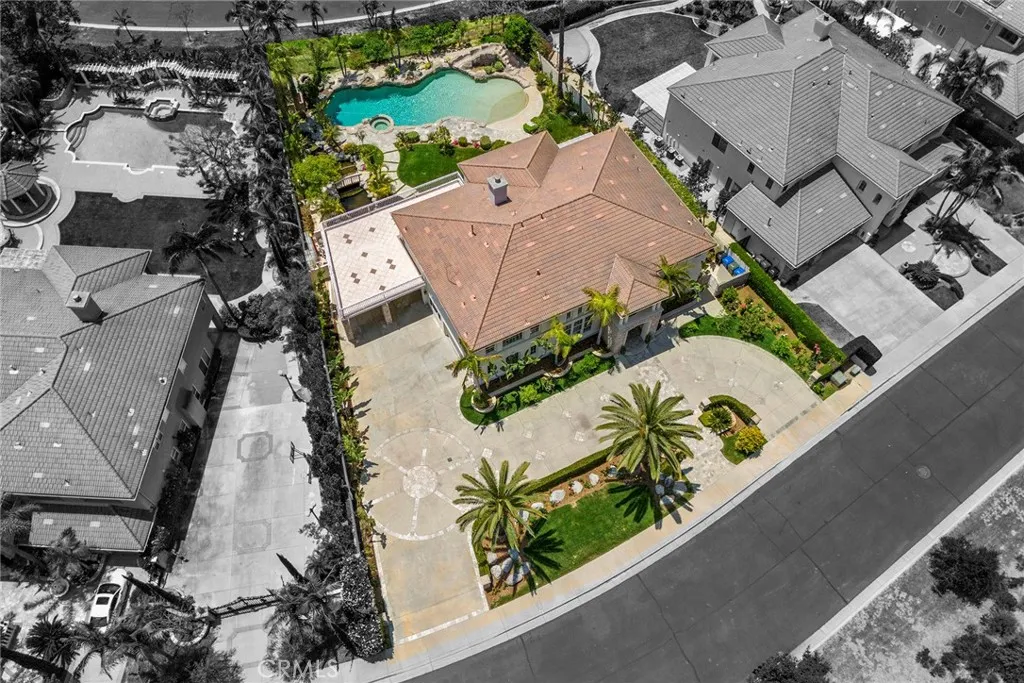 This ultimate masterpiece estate, remodeled and updated in 2023, enjoys over $900K in upgrades; it spans 5,618 sq ft of perfection, and is nestled amidst the serene landscape of the exclusive guard-gated community of Hill Top (with only 48 homes). Located on over half an acre, with sweeping city light views, this grand semi-custom estate offers an unparalleled fusion of opulence and tranquility. Step through the custom grand front doors into a world of refined elegance and natural light. The entry foyer welcomes you with its soaring ceilings and sets the tone for the lavishness that awaits. Completely upgraded throughout with a gourmet kitchen that is a culinary masterpiece, equipped with top-of-the-line Thermadore stainless steel appliances, 3 built in columns: 36 refrigerator, 24 wine and 30 freezer, large center island that doubles as a breakfast bar, and is highlighted with a $7K kitchen faucet. There is also an additional ice maker, and beverage fridge in the eating area. Off the kitchen is a wall of stackable doors that open to the breathtaking resort style backyard, complete with a huge 5 star hotel size lagoon style beachfront entry pool, Koi pond with romantic viewing bridge, entertainer's BBQ, and exotic fruit trees throughout. Perfect for indoor and outdoor living or entertaining. Flawless, and move-in ready with new flooring throughout the entire home, 4 exquisite chandeliers, 2 enclosed and lighted walls of floating wine bottles (one on each side of the living room fireplace), family room with custom fireplace, huge formal dining room, and 5 exquisite bedrooms; one ensuite is located on the main level and perfect for multigenerational living, or a live-in situation. The primary suite is a retreat in itself with its scenic wrap around viewing deck that overlooks the lush grounds, city lights, and twinkling stars. It is a sanctuary of luxury and comfort. There are 5.5 new luxurious bathrooms (1 outside by the pool complete with stunning shower). This home redefines custom and is second to none! Experience a lifestyle of luxury, relaxation, and sophistication. Immerse yourself in the enchanting surroundings as you lounge by the sparkling pebble tec pool, unwind in the spa, or bask in the sun on the sprawling patio. Enjoy this zen-like romantic property, the meticulously landscaped grounds, and the peace and tranquility creating an atmosphere of serenity. Every detail curates timeless elegance. Cannot be reproduced at this price!
