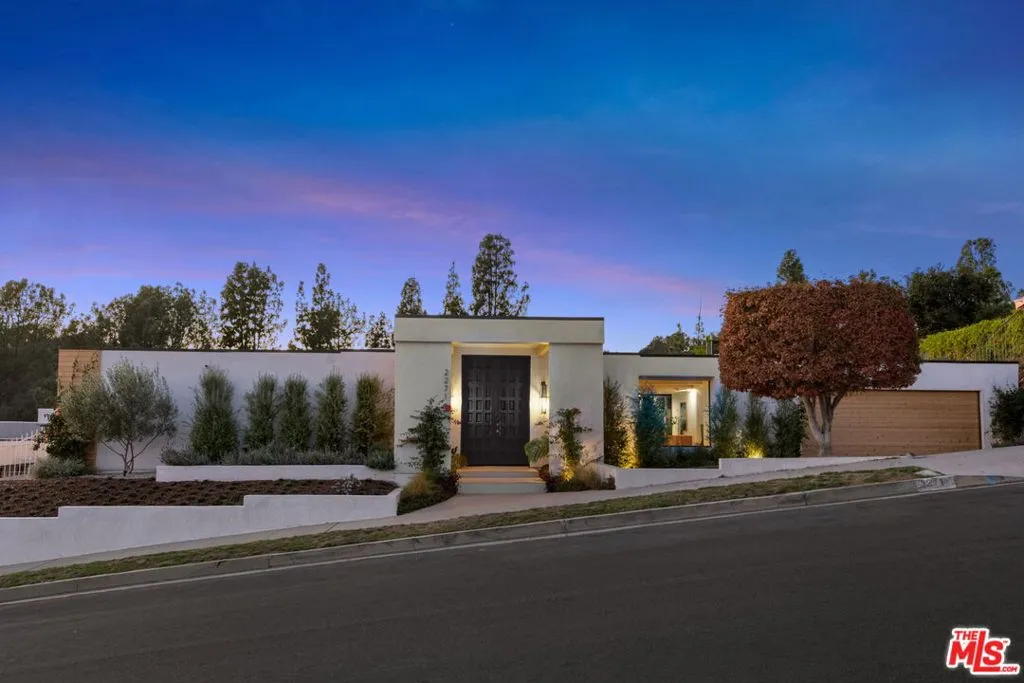 This gorgeously remodeled modern enclave sits atop the hills of Los Feliz with 180 degree views over the entire city! This single story home is a true masterclass of luxury living infused with deep design sophistication creating a truly relaxed elegance. The skillfully designed open floor plan is flooded with natural light creating an opulent great room affording you an incredible space for the ultimate Southern California lifestyle. Your modern gourmet kitchen offers the best in appliances, bespoke quartz counters, custom cabinets, a casual open breakfast room and a peninsula bar perfect for entertaining. Naturally your main living space spills out to a sunny resort style backyard with swimmers pool, bubbling spa, huge deck for outdoor dining, lounging and sunning and a grassy area for the kids and dogs! Back inside discover your sumptuous primary suite privately sequestered away with sublime Western light exposure and a personal patio with jetliner views of the city. The primary bathroom exudes warmth and privacy with luxury design touches thru offering a large frameless glass shower, floating dual vanities, soaking tub and attached walk in closet. Venturing back you will find a private den with a handsome bar perfect to hang out and watch some tv enjoying the fireplace and patio with incredible sunsets and views. In the rear private guest wing, the home is finished with 3 bedrooms and 2 bathrooms ideal for kids and visitors with one of the bathrooms doubling as your pool bathroom opening right out into the backyard! And just down the poolside breezeway is an awesome detached pool house bonus room perfect for your office, studio or game room! Incredible landmarks of Los Angeles are so close including cherished Griffith Park, hip and bustling Los Feliz Village, the magnificent Observatory, and the serenity of the Fern Dell Nature Trails right out your back door!