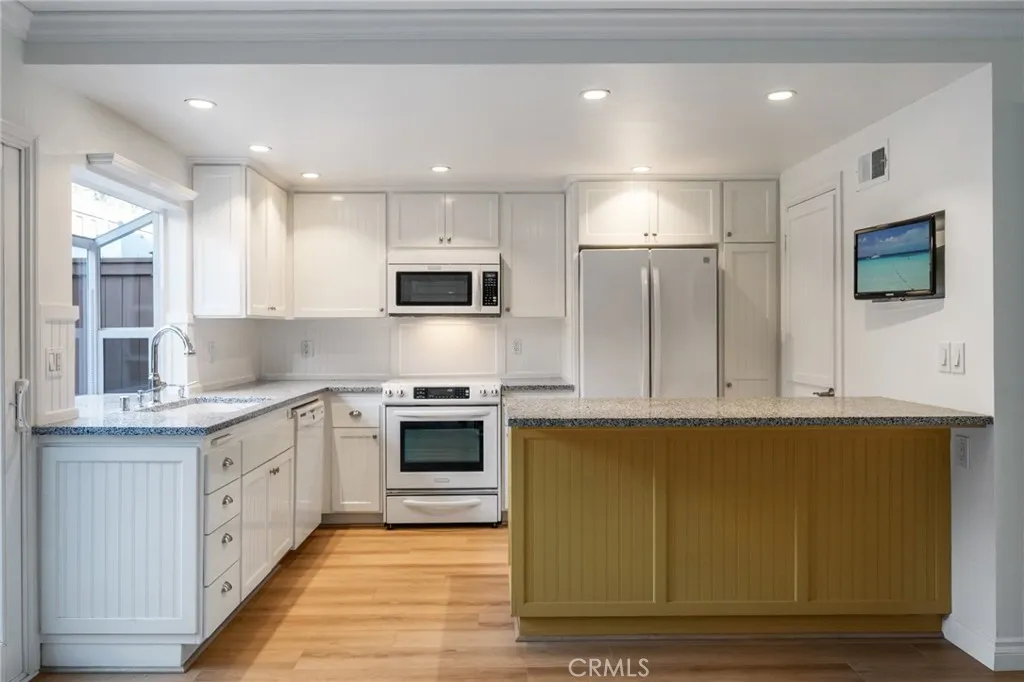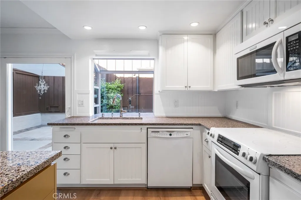 Welcome to this charming three-bedroom, two-and-a-half-bath townhome in the highly sought-after community of The Gardens. Freshly painted and move-in ready, this residence blends modern comfort with timeless appeal. The main level features beautiful luxury vinyl plank floors, enhancing the bright, open layout. The kitchen is thoughtfully appointed with clean white appliances, elegant Vetrazzo countertops, soft-close drawers, and a spacious pantry. A lovely bay window bathes the area in natural light, creating a warm and welcoming atmosphere. The adjacent dining room offers an ideal space for entertaining family and friends. Upstairs, you'll discover three generously sized bedrooms. The primary suite offers ample closet space, providing plenty of storage and comfort for daily living. Experience true year-round comfort, staying cool during summer with efficient A/C or opt to use the Whole House Fan for savings on your energy bill. Vinyl dual-pane windows throughout, along with upstairs double-hung windows, provide efficient ventilation. Additional upgrades, including a tankless water heater and brand-new furnace (2024), contribute to lower utility bills and lasting peace of mind. For those perfect breezy days, simply open the front door and secure the HOA-approved screen door to invite a natural cross-breeze throughout your living space. Step outside to a private patio oasis featuring a custom-made sunshade (chandelier included!), drip system with programmable timer for your favorite plants, and beautiful brick highlights - perfect for morning coffee or evening gatherings. The spacious 2-car garage, freshly painted for a clean look, includes large custom cabinets, ample storage for tools and seasonal items, a lengthy countertop for workspace, a deep sink for easy cleanup, and a dedicated clothes-drying area - making it as functional as it is versatile. Two additional highlights include a front view overlooking the largest greenbelt in the community, offering spaciousness and privacy, and convenient guest parking access at the back. Residents of The Gardens enjoy a sparkling pool and well-maintained tennis courts, all surrounded by lush, mature landscaping. In addition, The Gardens boasts a prime location near shopping, dining, and banking, with easy freeway access for seamless commutes and weekend getaways.