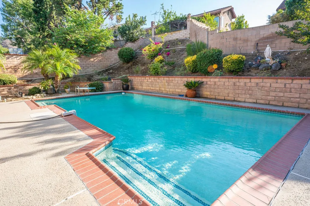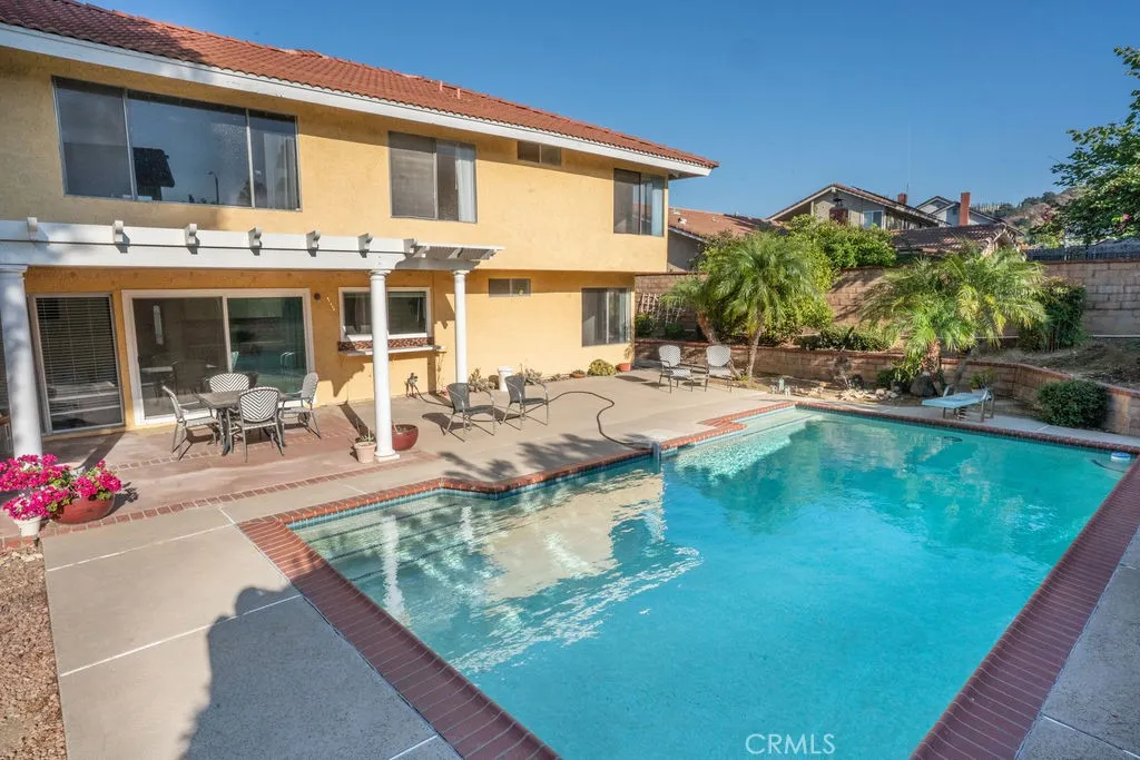 Discover this stunning 5-bedroom, 3-bathroom pool home, ideally located in the highly sought-after community of Hacienda Heights. Renovated, the homeowner transformed the dining room into a spacious 6th bedroom, featuring wide-plank laminate flooring. The room also includes a non-permitted ensuite bathroom, complete with a ceramic tile shower surround, ceramic tile flooring, and a custom vanity with a granite countertop. Upon entering the house, you'll be welcomed by soaring vaulted ceilings. To the left, the expansive living room boasts wide-plank laminate flooring and elegant wood shutters adorning the windows. The generous family room, featuring a cozy fireplace, seamlessly flows into the chef-inspired kitchen, which showcases two-tone white/light blue cabinetry, stainless steel appliances, ceramic tile flooring, and Corian countertops. All four bathrooms have been updated, featuring ceramic flooring, tile-surround showers, granite countertops, and custom cabinetry. The main floor offers a thoughtfully designed layout with two bedrooms and two bathrooms, providing optimal convenience and flexibility. A wrought iron staircase leads to the second floor, where the primary suite awaits, complete with dual closets and an en-suite bathroom featuring a shower, double custom vanities, and elegant finishes. Two additional bedrooms, another bathroom, and a versatile bonus room - ideal as a fifth bedroom - complete the upper level. The backyard is an entertainer's paradise, with a spacious patio for outdoor dining and a large pool perfect for family gatherings. This home is located near Hsi Lai Temple, county parks, shopping centers, schools, medical facilities, supermarkets, restaurants, and banks, and is part of the esteemed Mesa Robles School and Glen A. Wilson High School districts.