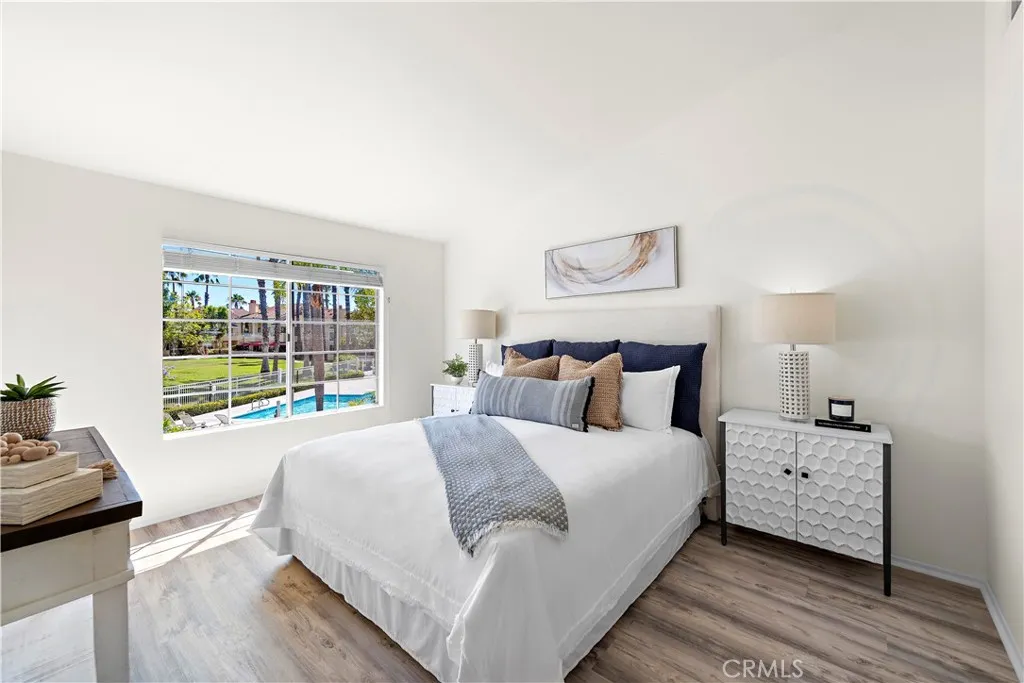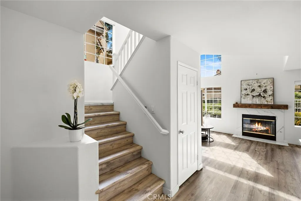 Welcome to 25186 Via Las Palmas, Laguna Niguel - an exceptional corner-unit condo located in the prestigious Del Prado Community. This beautifully upgraded two-story residence offers 1,377 square feet of bright and open living space, featuring 2 bedrooms, 2.5 bathrooms, and a prime position along the peaceful greenbelt for maximum privacy and tranquility. Inside, you'll find soaring cathedral ceilings and expansive windows that fill the home with natural light. Recent renovations include modern kitchen cabinetry, new stainless-steel appliances (including a new stove and dishwasher), and remodeled bathrooms that blend comfort with contemporary style. Custom window coverings and refined finishes add a touch of sophistication throughout. The main level showcases an open-concept layout connecting the kitchen, dining, and living areas, complete with a cozy fireplace and direct access to a private patio - perfect for outdoor dining and entertaining. Upstairs, you'll find two spacious master suites, each offering a private en-suite bathroom, while a convenient powder room serves guests on the main floor. Additional highlights include a two-car direct-access garage with laundry facilities and ample storage. Del Prado residents enjoy resort-style amenities, including two swimming pools, two spas, and beautifully maintained greenbelts. Conveniently located near Life Time Fitness, local restaurants, Yosemite Park, and the Laguna Niguel/Mission Viejo train station, this home offers both comfort and accessibility. Nearby shopping at Sprouts Farmers Market and top-rated schools, including Orange County Academy of Sciences and Arts, make this a perfect choice for modern living. With easy access to the 73 Toll Road and I-5 Freeway, this move-in-ready home perfectly blends coastal elegance, comfort, and convenience - an exceptional opportunity to experience the best of Laguna Niguel living.
