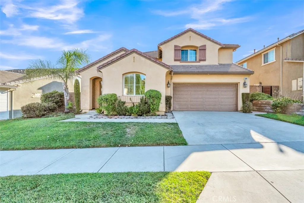 Beautiful home with a view and lots of upgrades. This better than new home features 4 bedrooms and 3.5 baths + Loft. formal living room and dining room, family room with fireplace, large kitchen with breakfast nook and bar. Granite counter tops, travertine back splash, kitchen island, maple cabinets, Stainless Steel appliances, Tile flooring and upgraded carpet. Bedrooms offer walk-in closets, master bathroom has a large oval tub, Walk-in closet with upgraded closet organizers. Convenient upstairs laundry room with sink. Inviting low maintenance backyard with full patio cover with ceiling fan & recessed lighting. custom built Bull Brand bbq grill. Eight citrus trees & one 15 year old avocado tree. 3 Car Garage offers newer epoxy flooring, ton of overhead storage & shelves space. Newer large water capacity water heater + Water softener in place. Outdoor entryway offers patio area with relaxing water fountain. Home also offers energy efficient dual zone A/C Units. Conveniently located within walking distance from Todd elementary, and in close proximity to the community pools, "Deleo Regional Sports Parks, Club House and Gym. Minutes to "Dos Lagos" & "Corona Crossings Shopping Center" and entertainment. This property is S per clean. Must See!