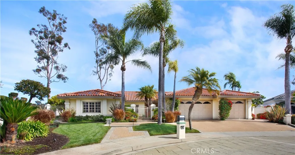 Located near the ocean in the prestigious gated community of South Peak, this one-story home is situated on a prime 13,000 square foot cul-de-sac lot with sweeping views from the mountains to the sea. This sprawling custom home is an entertainer's dream boasting a large backyard complete with a Pebble Tec pool, outdoor speakers, a built-in BBQ plus firepit, and an observation terrace with ocean view. Enter the home through a gated fountain courtyard into a superb floorplan designed for indoor/outdoor living. The formal living and dining room includes a fireplace and opens to the backyard while the spacious family room includes a walk-in bar, fireplace, and custom media center with surround sound and opens to the pool, patio and yard. The kitchen is a chef's delight with a center island, granite countertops, custom cabinetry, and stainless steel commercial-style appliances and features an open design to the family room and breakfast nook. The primary suite includes a large walk-in closet and a luxurious bath with marble counter tops, a soaking tub, large shower plus dual vanity sinks. Rounding out the bedroom wing, the property highlights two guest suites, one with an ensuite bath and the other with a lovely sitting alcove. The fourth bedroom spotlights a dual office with custom desks. The home includes a total of 4 bedrooms and 3.5 baths plus a laundry room complete with a sink and opens to an expansive 3-car garage with epoxy flooring, special lighting, and built in cabinetry. Warm and inviting, this home includes travertine flooring, crown moldings, custom storage, a large grassy area, fruit trees, and spectacular sunrises and canyon views in a serene, private, and tranquil setting. This home is just minutes from the Ritz Carlton Hotel, the Waldorf Astoria Monarch Beach Resort, the Monarch Beach Links Golf Course, and El Niguel Country Club and a short drive to both downtown Dana Point and the Marina or to Laguna Beach. Stroll to Salt Creek Beach from the nearby walking trail or relax and the enjoy the ideal coastal lifestyle in this spectacular setting.