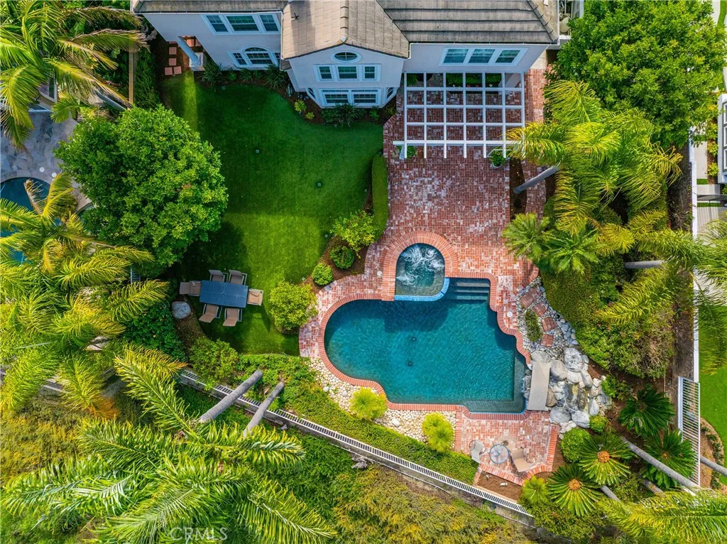 Tucked away in the distinguished community of Moulton Ranch lies an extraordinary residence that captures the essence of Southern California's premium lifestyle. This remarkable property, a sought-after Brock Classics Cavetto, with its impressive stature & expansive lot, redefines luxurious living. Highlighted by Saddleback Mountain views, this stunning home features 5 spacious bedrooms & 5 elegant bathrooms in addition to an Office and Bonus Room. Step through the commanding hand-forged iron doors to be immediately enveloped by the home's unmistakable grandeur & sophistication. The main level presents a harmonious blend of living areas, featuring an inviting Living Room, an elegant Dining Room, & a welcoming Family Room designed for both intimate family moments & sophisticated entertaining. The heart of this home is its chef-inspired Kitchen a true culinary haven featuring stainless steel appliances, exquisite cabinetry, stunning countertops, & a center island perfect for meal preparation & casual dining. Just off the Kitchen, a bright breakfast nook provides serene views of the lush grounds. The dedicated Office boasts dramatic high ceilings, abundant natural light, & generous dimensions for productivity & inspiration. Versatility abounds in the thoughtfully designed Bonus Room, which can be transformed into your ideal media center, fitness space, or recreation area. Retreat to the sumptuous Primary Suite, which offers breathtaking views of the majestic Saddleback mountains, a lavish spa-inspired bathroom, remodeled in 2025 and dual walk-in closets for the ultimate in convenience and luxury. The additional Bedrooms are thoughtfully appointed w/generous proportions & plentiful natural light. Convenience is enhanced by a main-level bedroom w/private ensuite bathroom, complemented by an additional powder room on the 1st floor. There is a Tesla Powerwall for efficiency. Outside, your personal paradise unfolds, featuring a resort-style pool & spa, outdoor living areas ideal for entertaining, & expansive lawn space. The picturesque setting creates a tranquil atmosphere that refreshes the spirit. For those in pursuit of exceptional living, this distinctive property awaits your discovery. More than merely a residence, it represents the pinnacle of California living at its most refined. Welcome to your new lifestyle in Moulton Ranch, where elegance meets serenity, & every luxury is thoughtfully provided. Claim your own piece of paradise.