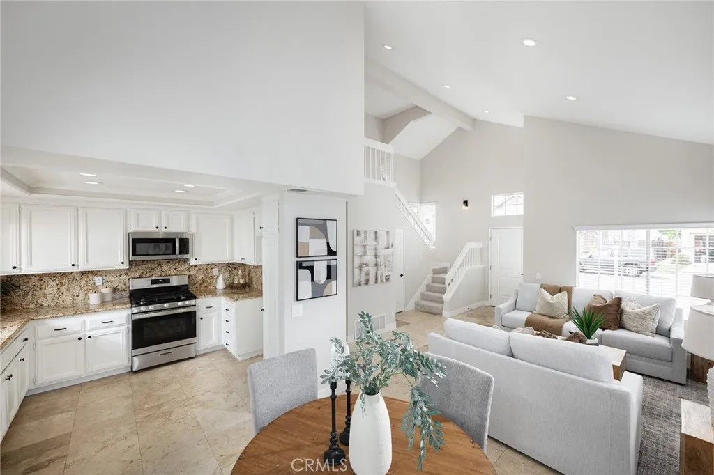 Beautifully Upgraded Home in the Desirable Tampico Tract of Rancho Niguel! Welcome to this inviting three bedroom home featuring tasteful upgrades throughout. The remodeled kitchen offers a garden window, granite countertops, white cabinetry with black hardware, recessed lighting, a new stainless steel oven and microwave, and a new dishwasher, perfect for those who love to cook and entertain. The adjoining dining and living areas feature travertine flooring, recessed lighting, and vaulted ceiling, creating an open and comfortable layout ideal for everyday living and entertaining. Upstairs, the beautiful primary suite features a stylish ensuite bath with a granite-topped vanity and a stone-surround shower. The hallway offers custom cabinetry for extra storage or linens, along with two additional bedrooms and an upgraded guest bath with a granite countertop vanity and stone finishes. Decorative sconces illuminate the staircase, adding warmth and character to the home. Additional highlights include an upgraded downstairs bath with a granite countertop vanity and tasteful finishes throughout. The spacious wrap-around backyard features a stone seating area, perfect for relaxing evenings, barbecues, or weekend gatherings. Residents also enjoy access to the exclusive Rancho Niguel Recreation Club, featuring pools, tennis courts, pickleball, racquetball, fitness center, playground, and more!