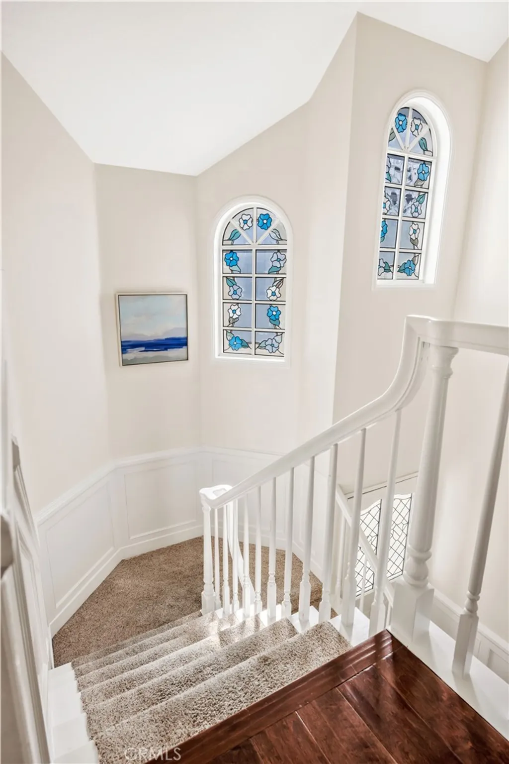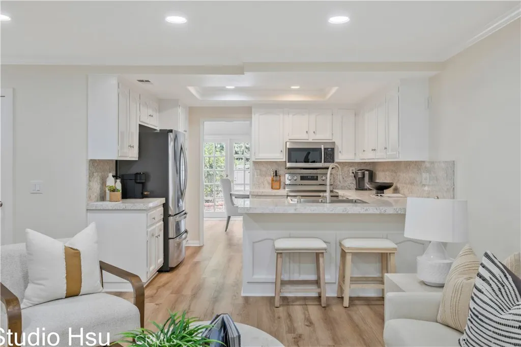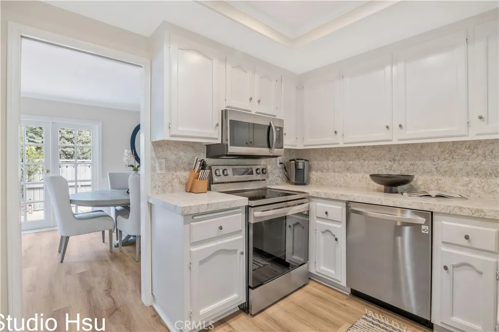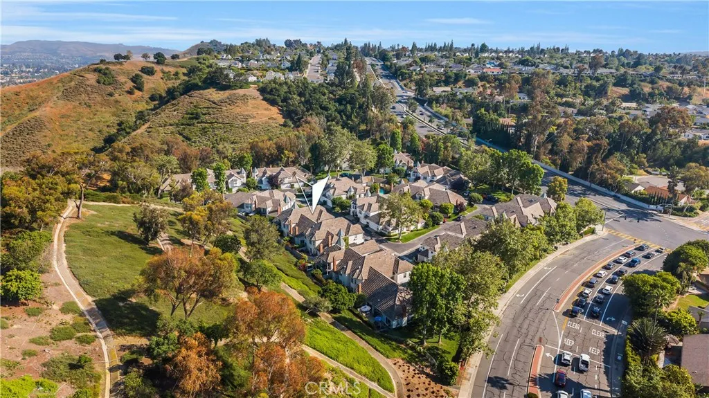 Welcome to 29282 Rue Cerise located in the gated community of Ville de Cerise! This spacious and stylish 3-bedroom, 2.5-bathroom home offers approximately 1,950 sq ft of comfortable living space. This charming residence features both a separate living room and family room, along with a formal dining area that opens to a patio backing to a tranquil, tree-lined hillside - providing privacy and a serene outdoor setting. As you enter the home, you're greeted by soaring ceilings in the living room, along with a built-in bar and cabinetry, creating an inviting space for entertaining. The kitchen located just off the family room, features newer quartz countertops and flows seamlessly into the home's social spaces. All three bedrooms are upstairs, including a spacious primary suite with oversized dual closets and an upgraded bathroom featuring a custom vanity with quartz counters and a walk-in, glass-enclosed shower. The additional bedrooms also have ample closet/storage space, including a walk in closet. Additional upgrades completed in 2022 include luxury vinyl plank flooring downstairs, newer carpet upstairs, fresh interior paint, newer smart thermostat, electrical upgrades (upgraded panel, wiring, and lighting throughout), and attic insulation replacement (2024). The home also features an attached two-car garage with laundry hookups. The HOA completed major improvements including full community repiping, new roofs, and freshly repaved streets (2020). Enjoy community amenities such as a pool and spa in this quiet, well-maintained gated enclave of just 48 homes. Don't miss this rare opportunity to own a turnkey home in one of Laguna Niguel's most charming and secluded neighborhoods.