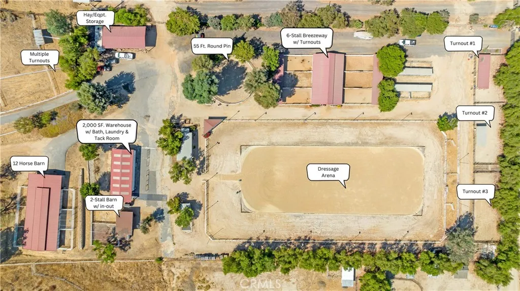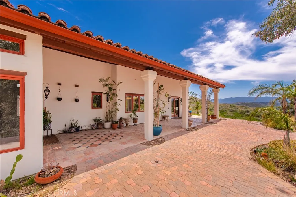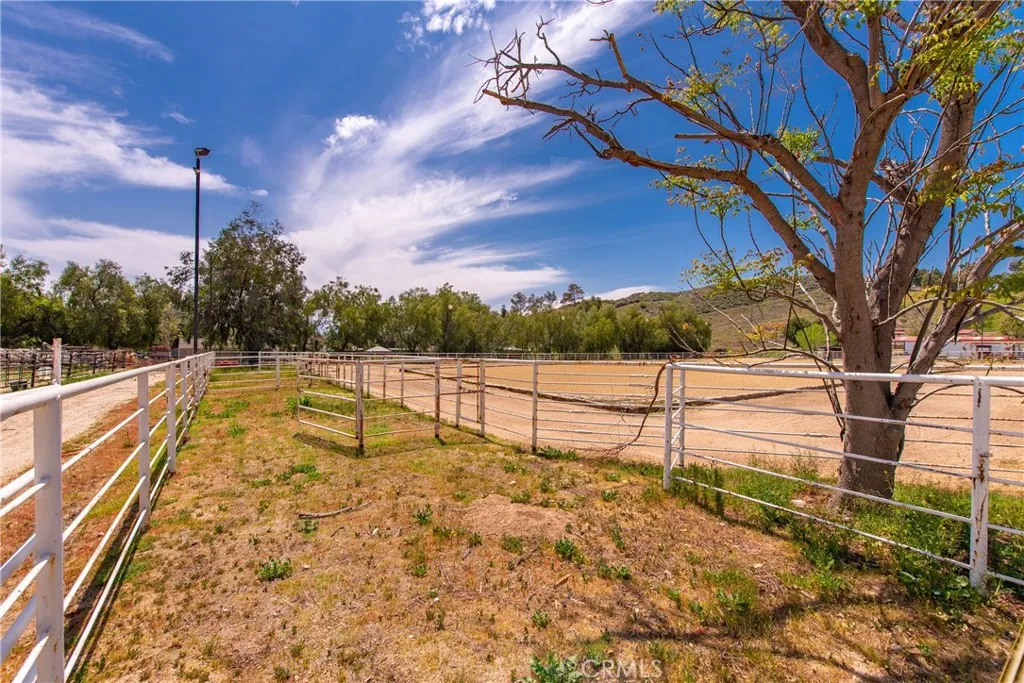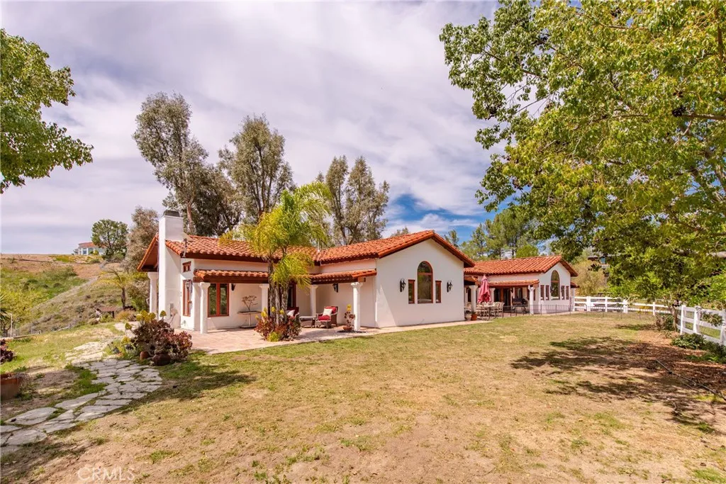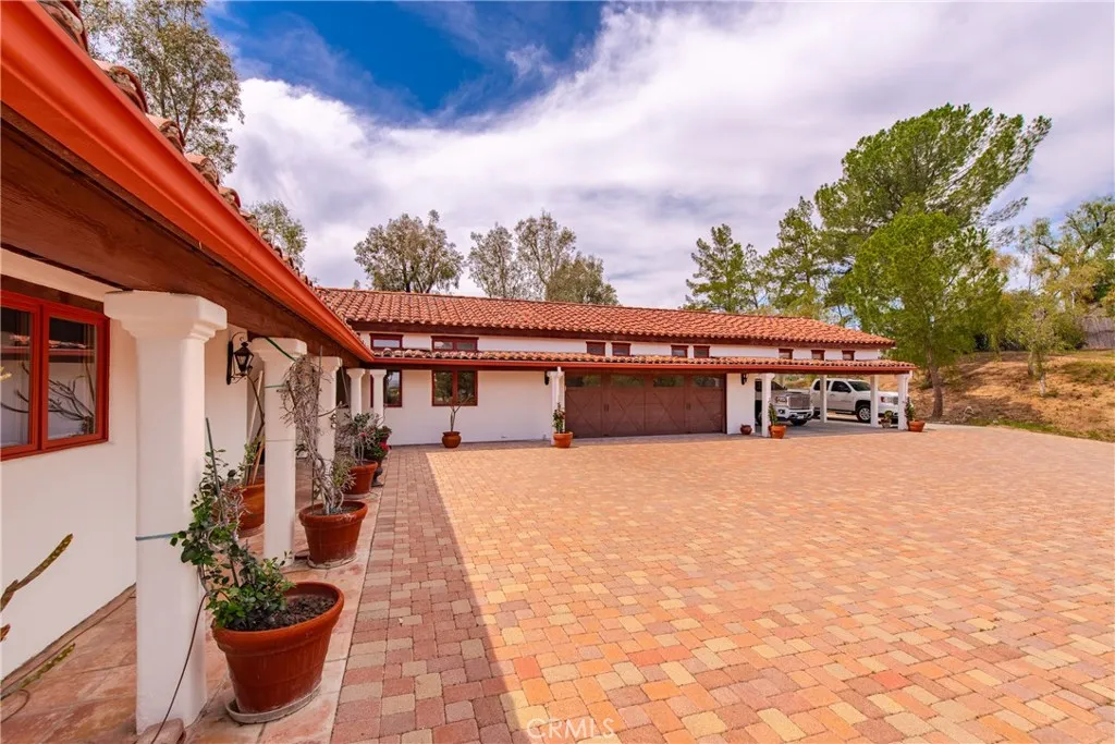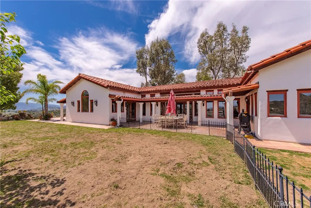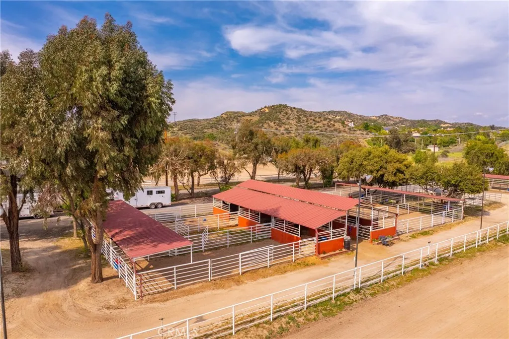 Extraordinary 8.9-Acre Equestrian Estate with Stunning Spanish Hacienda & Premier Horse Facilities. Discover an equestrian sanctuary like no other! Set on 8.9 breathtaking acres, this remarkable estate is a dream come true for horse enthusiasts. Designed with both functionality and elegance in mind, the property features a 12-stall Barnmaster barn, a 6-stall Mare Motel with a covered center aisle and spacious attached paddocks, and a 2-stall barn with in-and-outs, providing ample accommodations for your horses. Multiple large turnouts, including an expansive 1-acre hillside turnout, offer plenty of space for exercise. Equestrian facilities include an oversized arena with Arena Aid professional footing and arena lights, perfect for training and evening rides. A 55-ft round pen provides an ideal space for groundwork, while the 2,000 sq. ft. warehouse is equipped with a tack room, cross-tie tack-up area, bathroom, wash rack, and laundry, ensuring top-tier convenience and efficiency. Atop a scenic hill, the 3,353 sq. ft. Spanish hacienda boasts breathtaking views from every window. This elegant home features 3 bedrooms, 3 bathrooms, and a dedicated office, blending rustic charm with modern luxury. Sustainability and energy efficiency are at the forefront, with a 55-panel solar system, a 14kW home generator, and two 500-gallon propane tanks for ultimate reliability. Offering an unparalleled combination of equestrian excellence and refined living, this rare property is a must-see. Great location with close freeway access. Only 35 miles to Los Angeles.