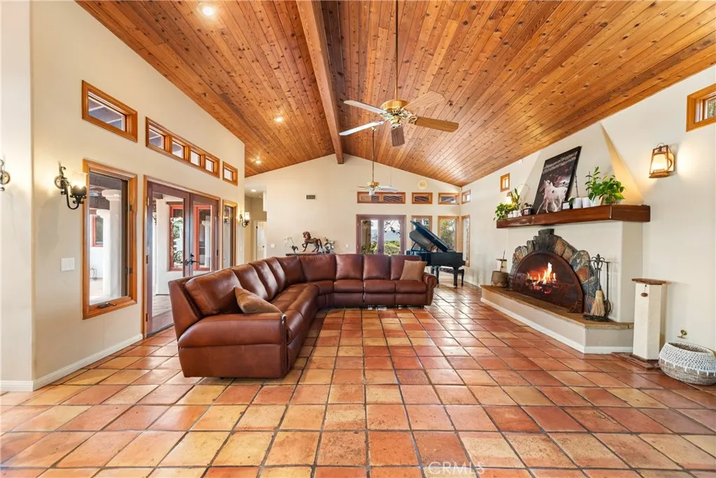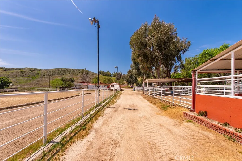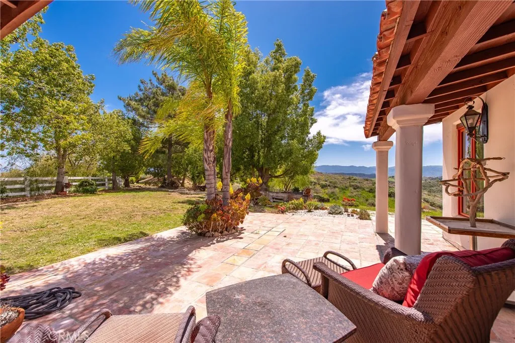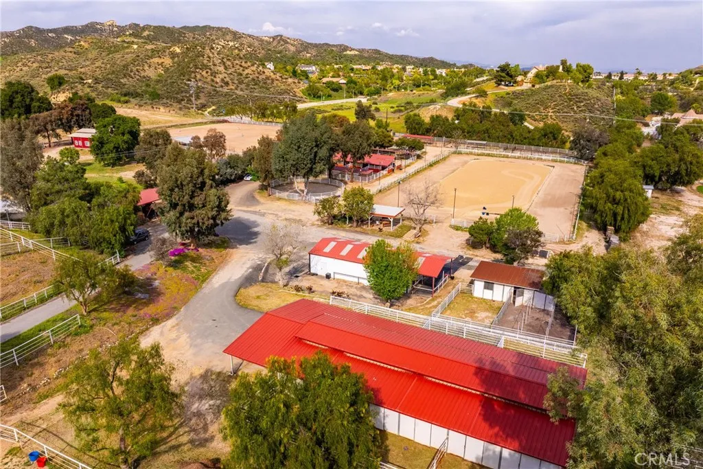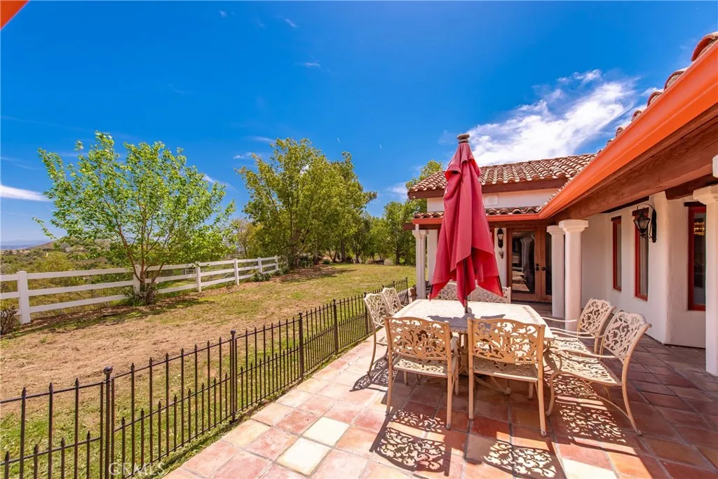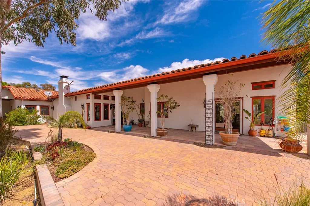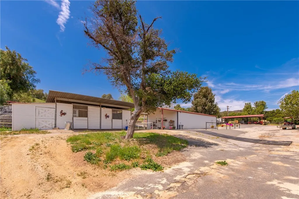 Extraordinary 8.9-Acre Equestrian Estate with Stunning Spanish Hacienda & Premier Horse Facilities. Discover an equestrian sanctuary like no other! Set on 8.9 breathtaking acres, this remarkable estate is a dream come true for horse enthusiasts. Designed with both functionality and elegance in mind, the property features a 12-stall Barnmaster barn, a 6-stall Mare Motel with a covered center aisle and spacious attached paddocks, and a 2-stall barn with in-and-outs, providing ample accommodations for your horses. Multiple large turnouts, including an expansive 1-acre hillside turnout, offer plenty of space for exercise. Equestrian facilities include an oversized arena with Arena Aid professional footing and arena lights, perfect for training and evening rides. A 55-ft round pen provides an ideal space for groundwork, while the 2,000 sq. ft. warehouse is equipped with a tack room, cross-tie tack-up area, bathroom, wash rack, and laundry, ensuring top-tier convenience and efficiency. Atop a scenic hill, the 3,353 sq. ft. Spanish hacienda boasts breathtaking views from every window. This elegant home features 3 bedrooms, 3 bathrooms, and a dedicated office, blending rustic charm with modern luxury. Sustainability and energy efficiency are at the forefront, with a 55-panel solar system, a 14kW home generator, and two 500-gallon propane tanks for ultimate reliability. Offering an unparalleled combination of equestrian excellence and refined living, this rare property is a must-see. Great location with close freeway access. Only 35 miles to Los Angeles.