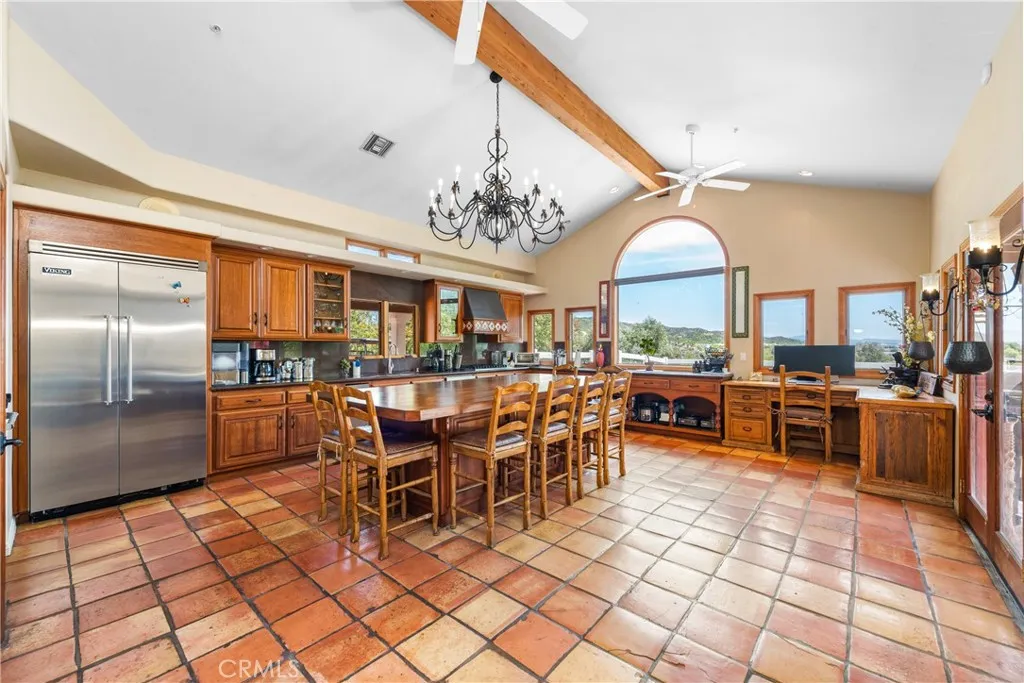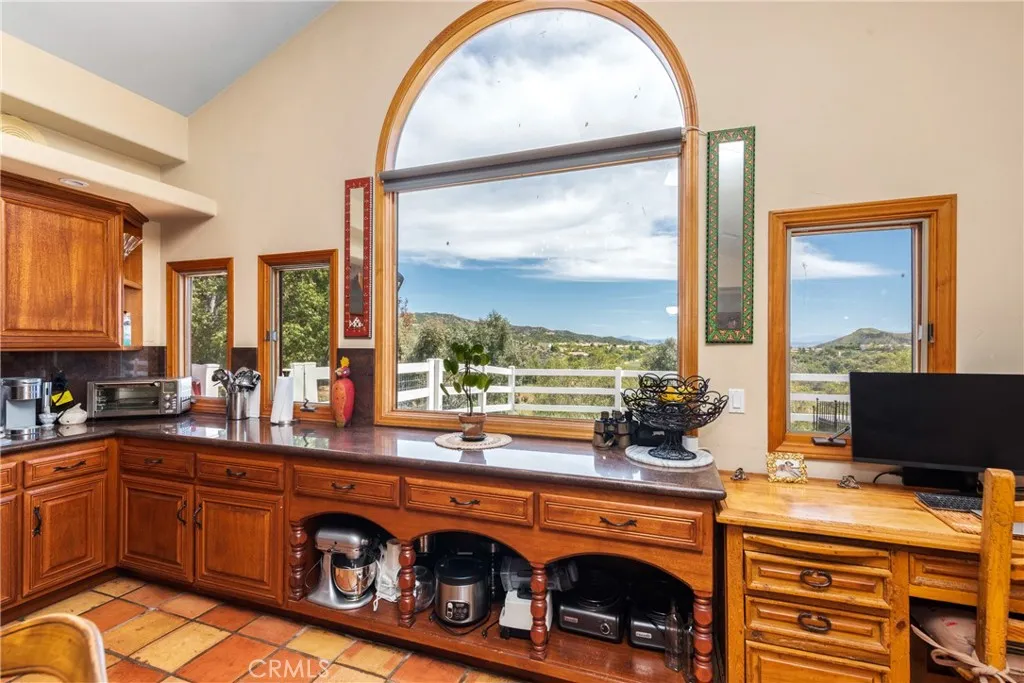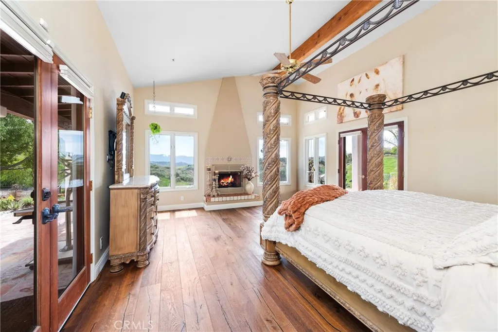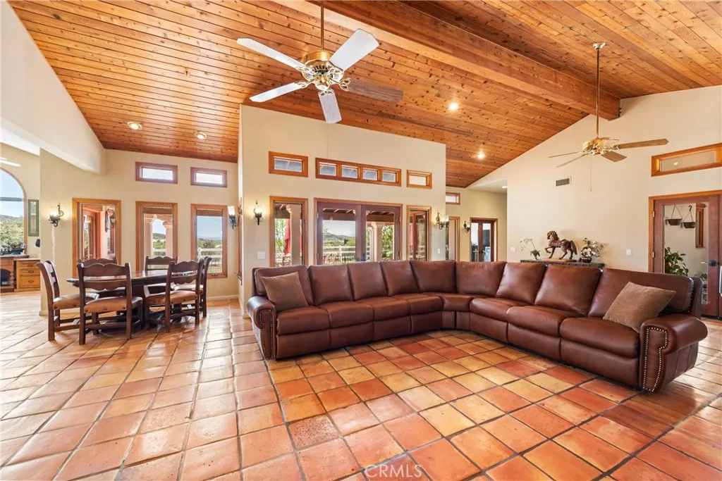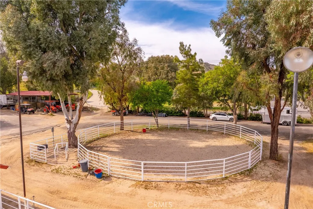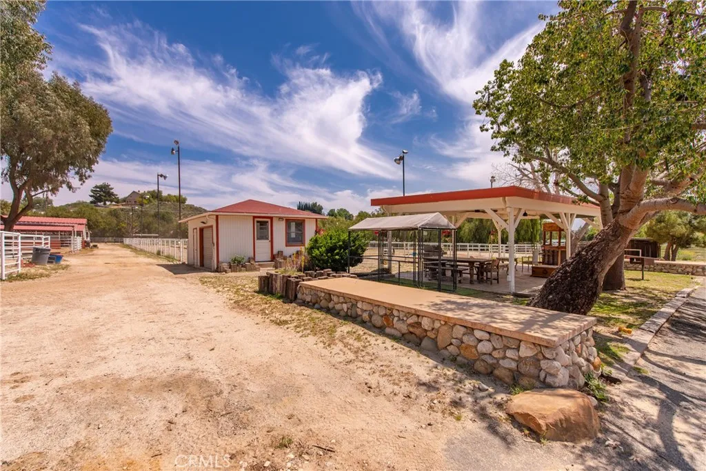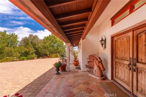 Extraordinary 8.9-Acre Equestrian Estate with Stunning Spanish Hacienda & Premier Horse Facilities. Discover an equestrian sanctuary like no other! Set on 8.9 breathtaking acres, this remarkable estate is a dream come true for horse enthusiasts. Designed with both functionality and elegance in mind, the property features a 12-stall Barnmaster barn, a 6-stall Mare Motel with a covered center aisle and spacious attached paddocks, and a 2-stall barn with in-and-outs, providing ample accommodations for your horses. Multiple large turnouts, including an expansive 1-acre hillside turnout, offer plenty of space for exercise. Equestrian facilities include an oversized arena with Arena Aid professional footing and arena lights, perfect for training and evening rides. A 55-ft round pen provides an ideal space for groundwork, while the 2,000 sq. ft. warehouse is equipped with a tack room, cross-tie tack-up area, bathroom, wash rack, and laundry, ensuring top-tier convenience and efficiency. Atop a scenic hill, the 3,353 sq. ft. Spanish hacienda boasts breathtaking views from every window. This elegant home features 3 bedrooms, 3 bathrooms, and a dedicated office, blending rustic charm with modern luxury. Sustainability and energy efficiency are at the forefront, with a 55-panel solar system, a 14kW home generator, and two 500-gallon propane tanks for ultimate reliability. Offering an unparalleled combination of equestrian excellence and refined living, this rare property is a must-see. Great location with close freeway access. Only 35 miles to Los Angeles.