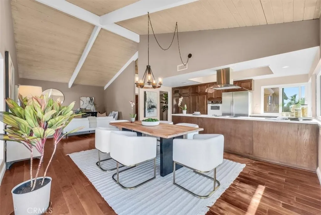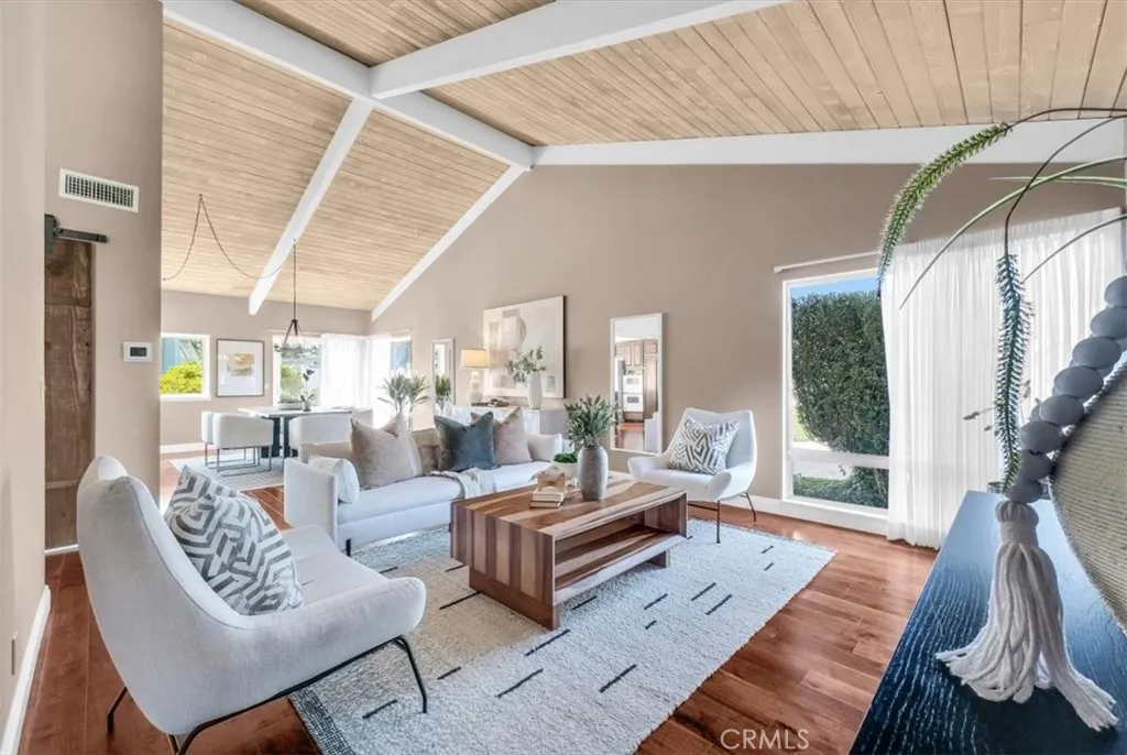 CHECK THE COMPARABLES ON THIS NEW PRICE ! 31358 Flying Cloud is an Attached single level two bedroom two bath SFR in the heart of the Midcentury-inspired marvel called Pacific Island Village - a planned community located on the Pacific Island Hilltop above Monarch Beach and the coastline resorts - approximately one mile from the beach. The home has interior remodeling yet retains much of the original Midcentury feel including original Midcentury style open beamed ceilings, 60's style wood burning fireplace, and original bathrooms and kitchen. Wood Flooring. Double door entry. No stairs anywhere inside the property. Mirrored wardrobes. Newer Roof. Newer windows. Front Lawn. And close to a two car detached garage only a few steps away from the front door. Partial view of Capo Valley and City Lights from kitchen and rear bedroom. Mission Bells in the morning. Nearby coastal ridge hiking trails. Great potential in a Five Star Hilltop Location! The property is ideally located on a corner site, near the community pool and clubhouse, on the street level. The Pacific Island Hilltop provides casual living high above the resorts, and close proximity to everything everyone loves about the Laguna Beach/ Dana Point Resort Areas. No age restrictions in Pacific Island Village/ Planned Community with No mello roos and low property tax rate.