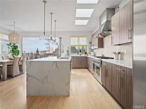 To live in the Sand Section with ocean views is like securing coveted seats set in the some of the most exclusive real estate in the world here in SoCal. From the comfort of your home, you get to watch the magic of the Pacific Ocean and the vast sky above unfold in movement and never-ending change day after day, morning, noon and evening. Top that off with an expansive indoor-outdoor living experience in the vibrant heart of North Manhattan Beach and you've arrived at a rare destination. Just three blocks from The Strand and steps from some of the most beloved restaurants, coffee houses, shops and spas in Manhattan Beach, this like-new, modern style townhome (built in 2017) offers the dream beach lifestyle you've earned. Leave your car in the garage all weekend long and get the flip flops out. Views with vibes. Privacy with proximity. Security with space, for loved ones or hobbies or both. Come in from the beach, shower off, prepare dinner in your open floorplan kitchen, full of top-of-the-line Thermador appliances and step out to BBQ as you watch the sun dip below the horizon. Every bedroom enjoys its' own bathroom and the lower level fourth bedroom suite could also make the perfect sofa sectional TV room getaway. You're also positioned for the shortest commute in the city to the Westside and all points north. This property is an ideal retreat for those with an active lifestyle seeking a newer construction home with ocean views, year-round indoor-outdoor living and easy access to everything Manhattan Beach has to offer.