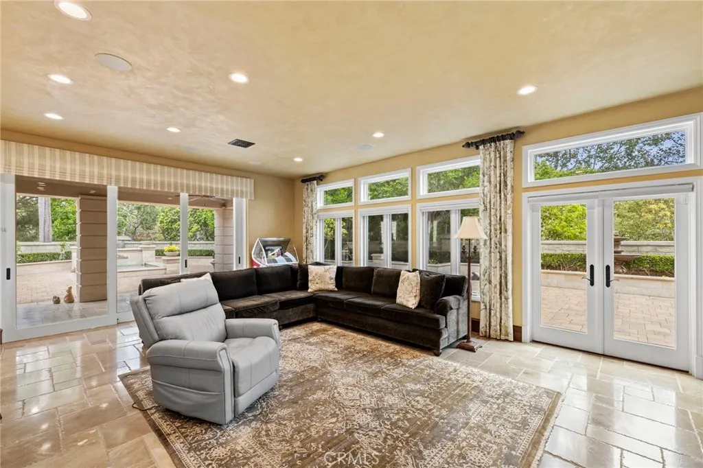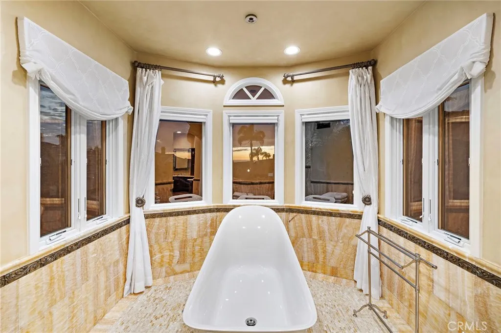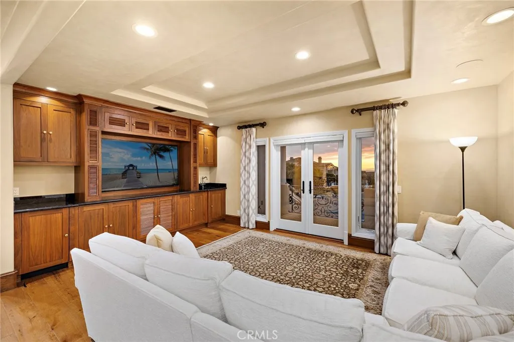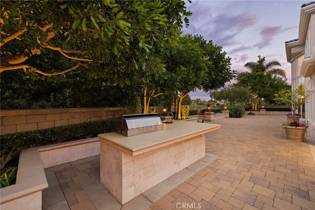 Within the guard-gated community of Ocean Ranch, this expanded & remodeled home blends refined craftsmanship with everyday functionality, offering a seamless flow between indoor & outdoor living. A custom wrought-iron and glass entry opens to Italian stone flooring throughout the main level, Venetian plaster walls, and walnut details carried throughout the home. The main floor features a large guest suite with a ensuite bath and walk-in closet - ideal for guests or multi-generational living. A versatile piano room or library offers an elegant setting for music, reading, or quiet relaxation. At the heart of the home, the reconfigured expanded kitchen showcases an oversized island with leathered limestone countertops, custom walnut cabinetry, a walk-in pantry and an added powder room. Top-tier appliances include a Viking 60 gas range with double ovens, Sub-Zero refrigeration, warming drawer, and three dishwashers by Bosch and Fisher & Paykel. Adjacent to the kitchen and family room, a generous breakfast nook with built-in seating provides a welcoming space for casual dining and connects to the main-floor laundry room and direct garage access. The expanded family room - permitted and finalized - features custom walnut cabinetry, surround sound, and Kolbe sliding pocket doors that open to the outdoor living area. The backyard is designed for year-round entertainment with a covered Ipe patio, built-in BBQ, spa, fireplace, and travertine-clad planter walls. Interlocking pavers surround the home, complementing the natural-stone driveway and newly refreshed landscaping with updated irrigation. Upstairs, the primary suite features a step-down retreat, built-in entertainment center, dual walk-in closets with custom built-ins, and a luxurious yellow-onyx bath with dual vanities and refined finishes. An additional media / bonus room with French doors to a Juliet balcony captures Catalina Island views and offers flexible living space. Every system has been thoughtfully upgraded, including dual HVAC with new ducting, epoxy-coated plumbing, a 75-gallon water heater, and eight security cameras. The garage includes new LiftMaster openers, a Tesla charger, and overhead storage. Recent updates include a new roof and underlayment, full exterior paint, Andersen Renew casement windows and French doors, and refinished hardscape throughout. Minutes from world-class beaches, Dana Point Harbor, and award-winning schools, this exceptional home embodies coastal luxury and timeless design.