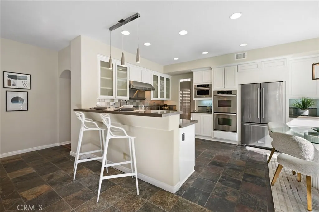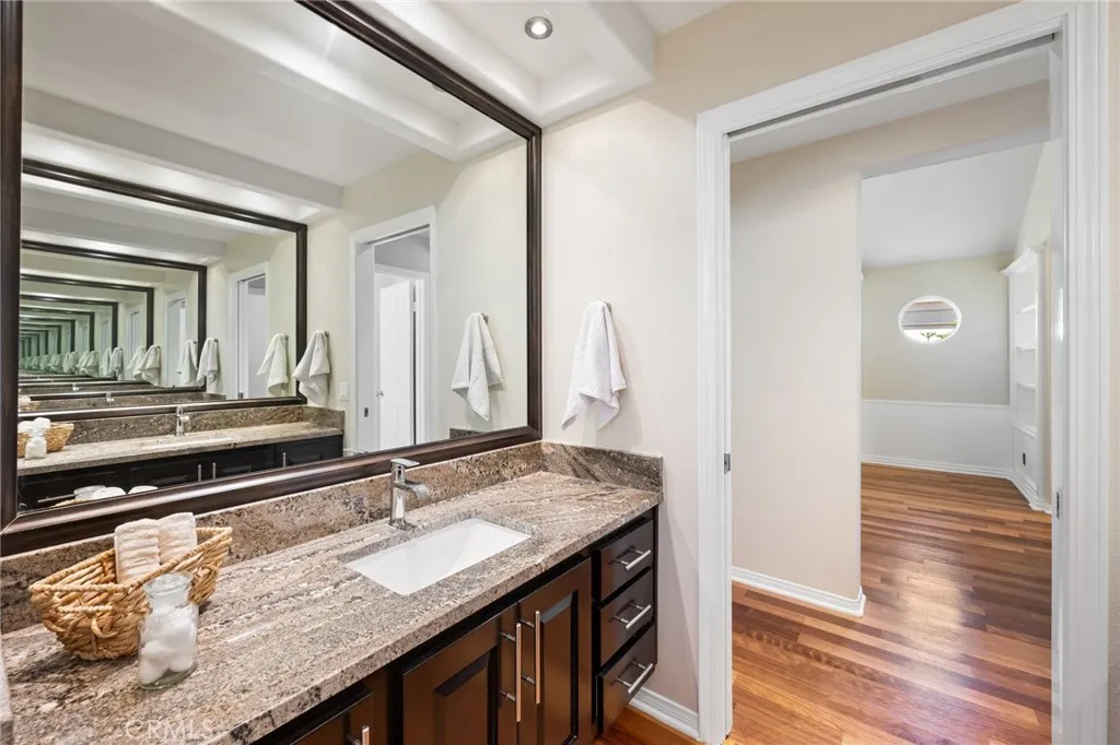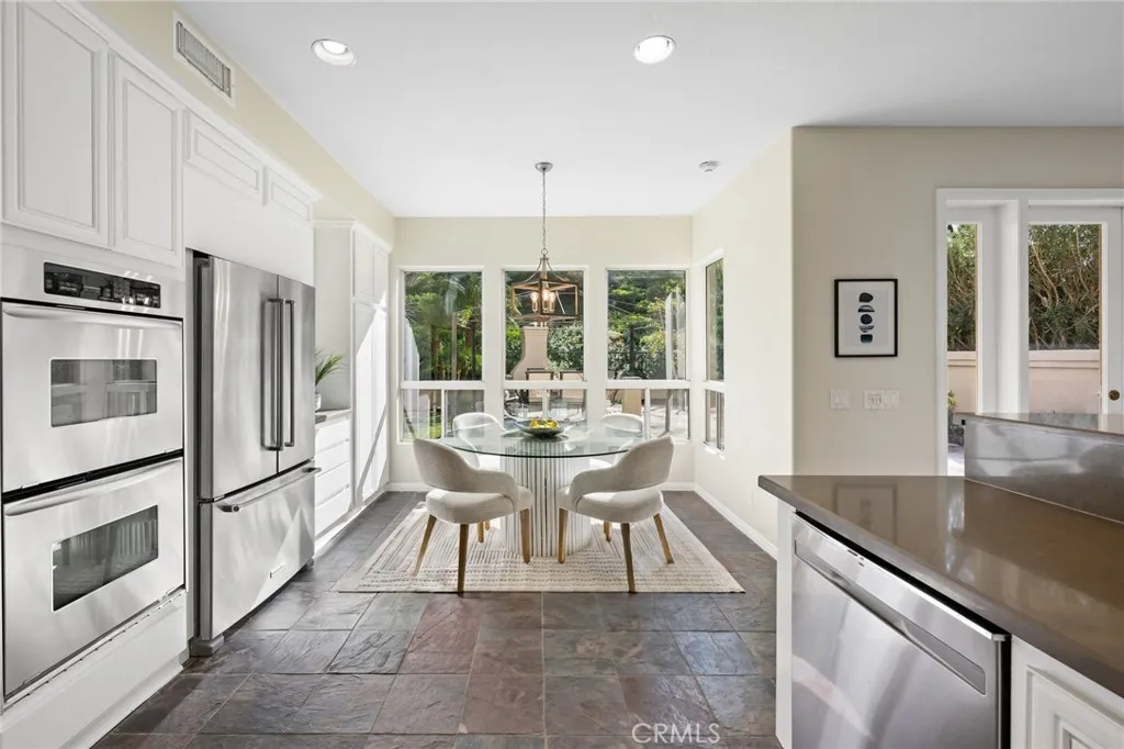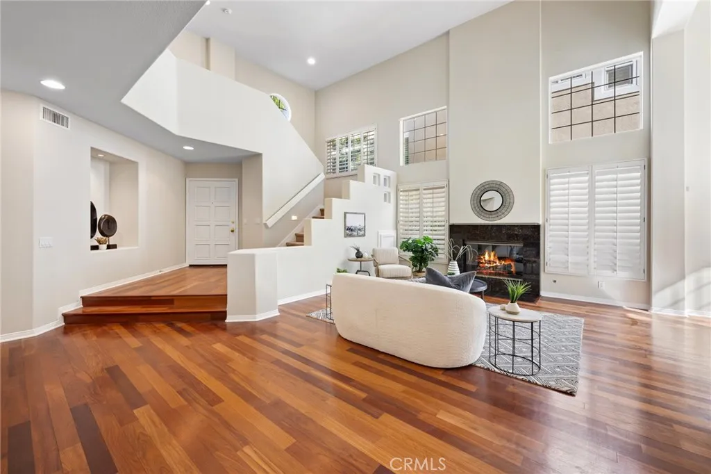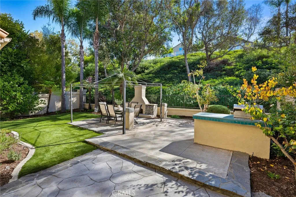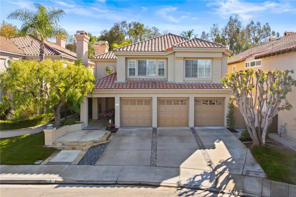 Welcome to your dream home in the prestigious Marina Hills community, majestically poised at the end of a peaceful cul-de-sac. Offering an expansive layout of 4 bedrooms, 3.5 baths, a spacious bonus room, and a 3-car garage, this property spells nothing but opulence. The generously sized plot features a beautifully renovated home with extensive upgrades done in recent years. These include PEX piping in 2018, owned 8.5kW solar system installed in 2022 with an EV charger in the garage, and dual HVAC systems replaced in 2019. Be welcomed into a grand living room with a cozy fireplace that leads to a formal dining area. An updated, spacious kitchen opens to a large family room with another fireplace, offering ample space for gatherings. The lower level houses a bedroom complete with an en suite bathroom. Upstairs, discover a luxurious primary suite with a private seating area and fireplace. The indulgent primary bath boasts dual vanities, two walk-in closets, a soaking tub under a large skylight, and a stand-alone shower. This level is completed by an office space with a built-in desk, a voluminous bonus room with built-ins, and two additional bedrooms with a full bath. The property brims with timeless warmth and comfort with wood floors adorning most of the house. The rear yard promises endless entertainment opportunities with a patio, fireplace, and built-in BBQ. Just steps away from your front door, enjoy exquisite, resort-like community amenities like a pool, spa, clubhouse, tennis/pickell ball courts, bike path to the beach and a sports park. This is not just a home, but a lifestyle fit for those who seek a blend of comfort, and convenience less than 15 minutes to Salt Creek beach.