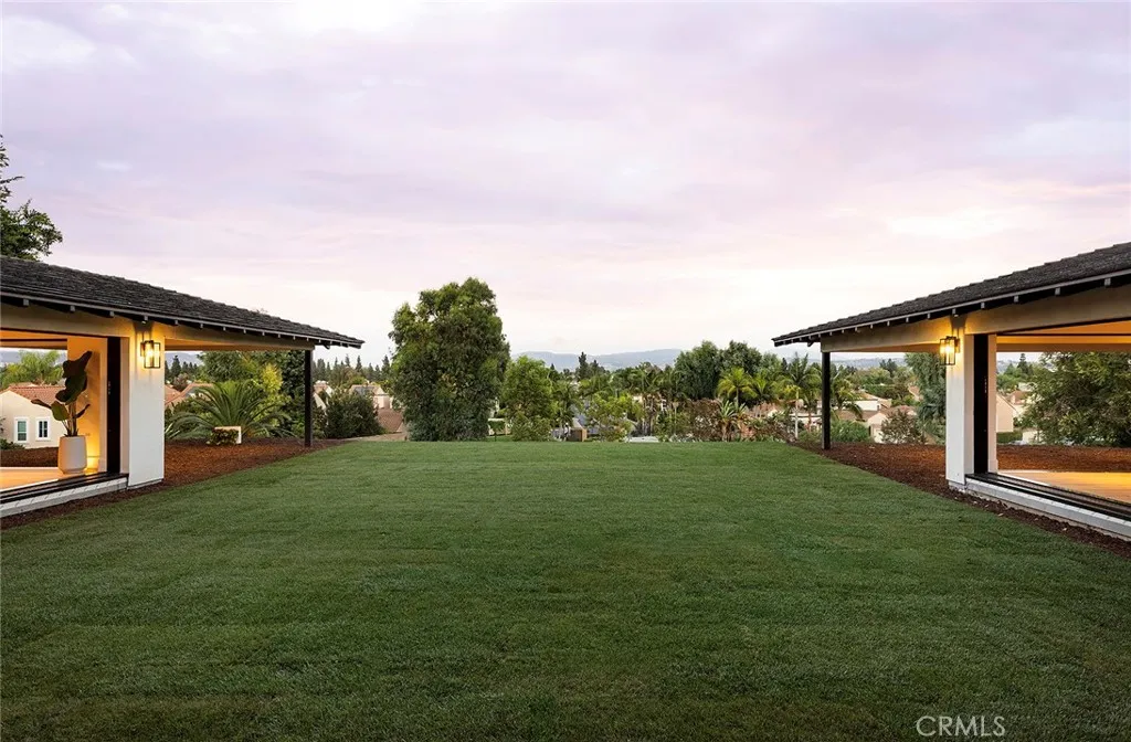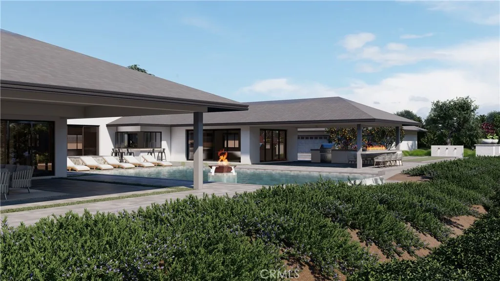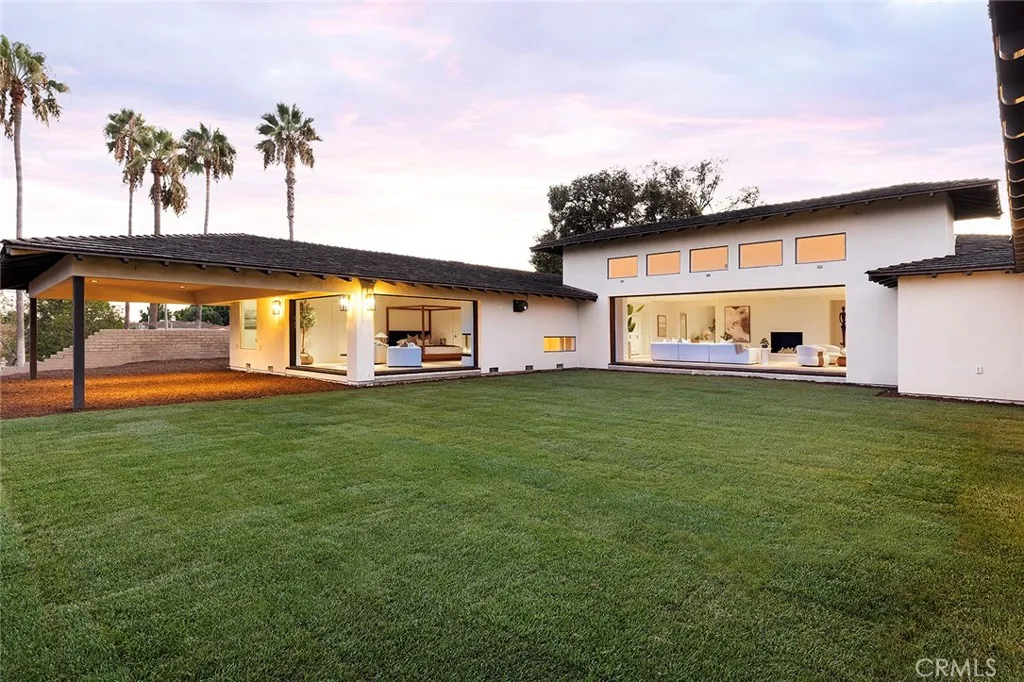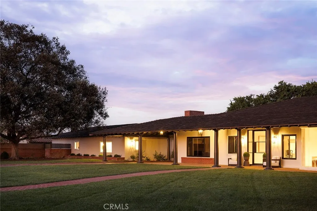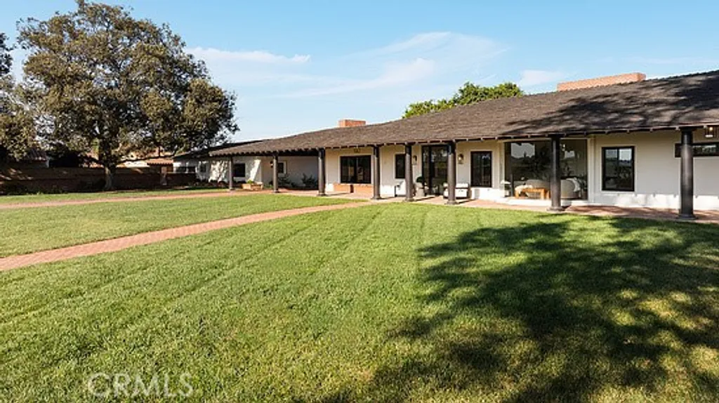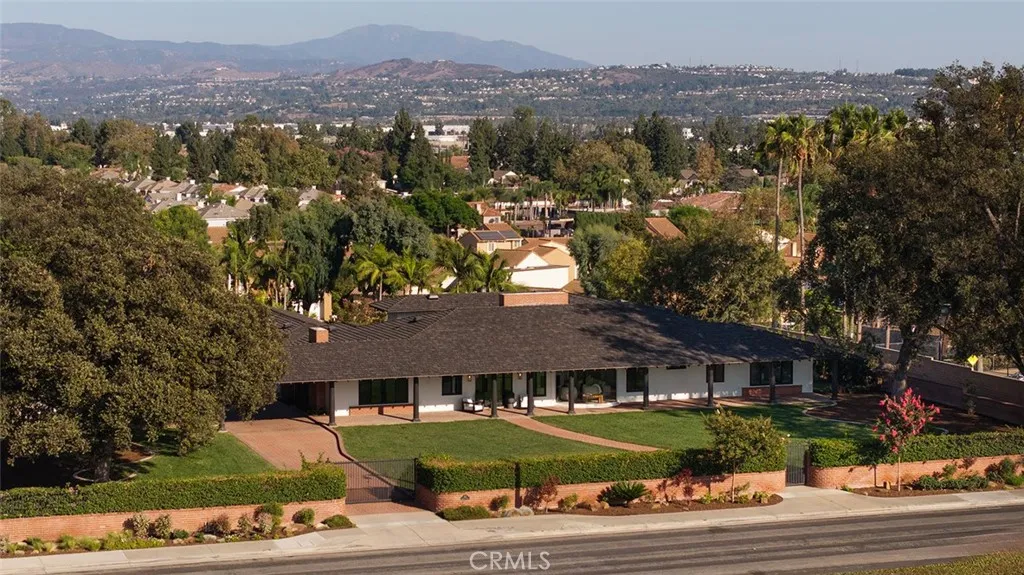 PRICE IMPROVEMENT TO $503/SF! Tucked in the heart of North Orange County, this newly rebuilt single-level Ranch-Style estate has never been occupied and embodies timeless California living. Masterfully reimagined in 2025, the gated compound spans 7,705 square feet plus 2,565 sf of covered patios on 1.25 acres, with sweeping 180-degree panoramic views of the mountains and city lights. From the moment you arrive through a single-pivot glass door, the residence tells a story of heritage and craftsmanship. Every detail is thoughtfully curated, designed to honor its past while embracing a modern vision of luxury. Wide-plank oak floors framed with expansive windows and pocketing doors, the home unfolds into light-filled interiors where indoor and outdoor living blend seamlessly. The main residence offers a rare single-level floor plan with 3 ensuite bedrooms plus an office w/ fireplace that could be a 4th bedroom. A 1,490 sf detached guest house with its own kitchen, living, dining and laundry adds two additional bedrooms and baths, ideal for extended family or visitors. Formal and casual spaces flow together: a fireplace-warmed living room with mitered glass bay window, an elegant dining room, and a grand great room with soaring ceiling, walk-in wet bar, fireplace and disappearing 24-foot glass pocket doors that dissolve into the walls. The chef's kitchen blends artistry with function - Binova cabinetry from Italy, a 14-foot waterfall island, breakfast bar, dining nook, and suite of Gaggenau appliances. Two pocket doors extend the space to a covered terrace, inviting alfresco dining framed by mesmerizing views. A finished subterranean level offers versatile possibilities: a wine cellar, gym, game room or media retreat. Each ensuite bedroom serves as a private sanctuary with walk-in closets and spa-inspired baths. The primary suite features dual pocketing doors, a covered patio, Stellar Enlight fireplace, walk-in closet, soaking tub and steam shower. Every inch has been renewed with new stucco and paint, tile roof, HVAC, plumbing, electrical, cabinetry, all executed with the highest quality materials. A gated driveway leads to a porte-cochere, motor court, 4-car garage and RV parking. The homesite offers limitless potential for a true outdoor resort-style paradise (see renderings). Set beneath graceful oaks, this is more than a residence. A private estate crafted for legendary living - an extraordinary retreat designed to host a lifetime of unforgettable moments
