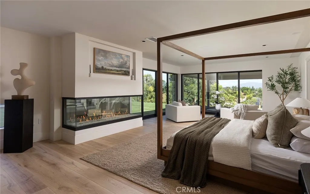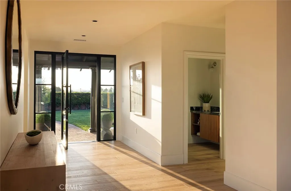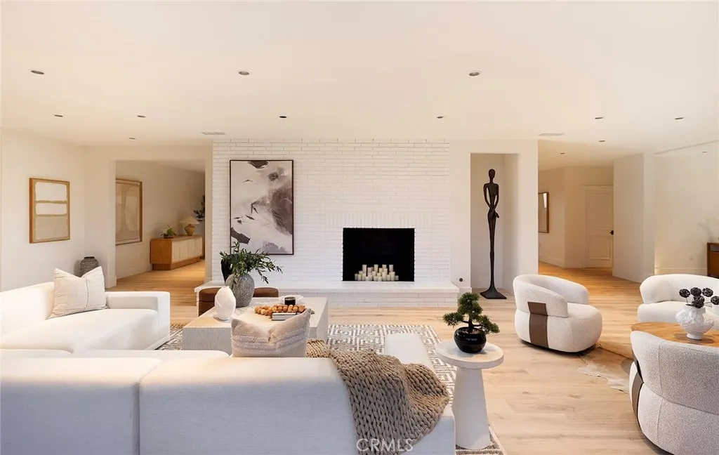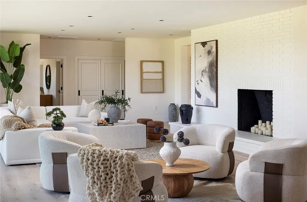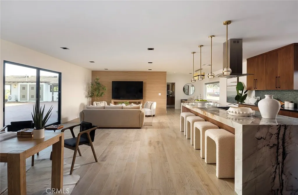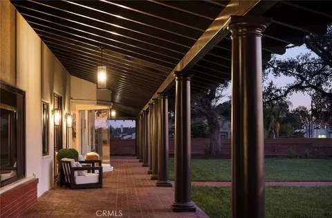 PRICE IMPROVEMENT TO $503/SF! Tucked in the heart of North Orange County, this newly rebuilt single-level Ranch-Style estate has never been occupied and embodies timeless California living. Masterfully reimagined in 2025, the gated compound spans 7,705 square feet plus 2,565 sf of covered patios on 1.25 acres, with sweeping 180-degree panoramic views of the mountains and city lights. From the moment you arrive through a single-pivot glass door, the residence tells a story of heritage and craftsmanship. Every detail is thoughtfully curated, designed to honor its past while embracing a modern vision of luxury. Wide-plank oak floors framed with expansive windows and pocketing doors, the home unfolds into light-filled interiors where indoor and outdoor living blend seamlessly. The main residence offers a rare single-level floor plan with 3 ensuite bedrooms plus an office w/ fireplace that could be a 4th bedroom. A 1,490 sf detached guest house with its own kitchen, living, dining and laundry adds two additional bedrooms and baths, ideal for extended family or visitors. Formal and casual spaces flow together: a fireplace-warmed living room with mitered glass bay window, an elegant dining room, and a grand great room with soaring ceiling, walk-in wet bar, fireplace and disappearing 24-foot glass pocket doors that dissolve into the walls. The chef's kitchen blends artistry with function - Binova cabinetry from Italy, a 14-foot waterfall island, breakfast bar, dining nook, and suite of Gaggenau appliances. Two pocket doors extend the space to a covered terrace, inviting alfresco dining framed by mesmerizing views. A finished subterranean level offers versatile possibilities: a wine cellar, gym, game room or media retreat. Each ensuite bedroom serves as a private sanctuary with walk-in closets and spa-inspired baths. The primary suite features dual pocketing doors, a covered patio, Stellar Enlight fireplace, walk-in closet, soaking tub and steam shower. Every inch has been renewed with new stucco and paint, tile roof, HVAC, plumbing, electrical, cabinetry, all executed with the highest quality materials. A gated driveway leads to a porte-cochere, motor court, 4-car garage and RV parking. The homesite offers limitless potential for a true outdoor resort-style paradise (see renderings). Set beneath graceful oaks, this is more than a residence. A private estate crafted for legendary living - an extraordinary retreat designed to host a lifetime of unforgettable moments