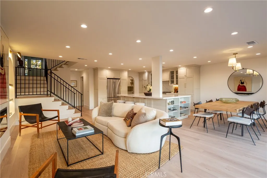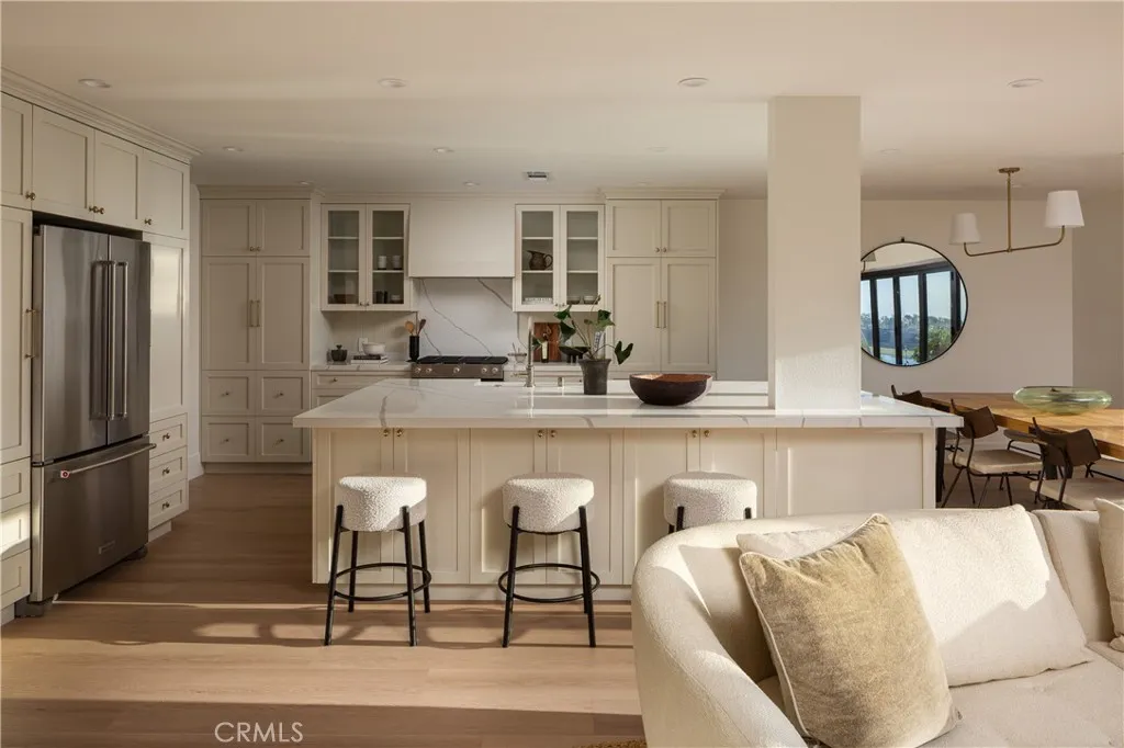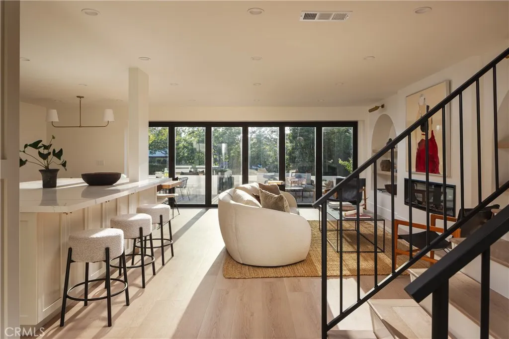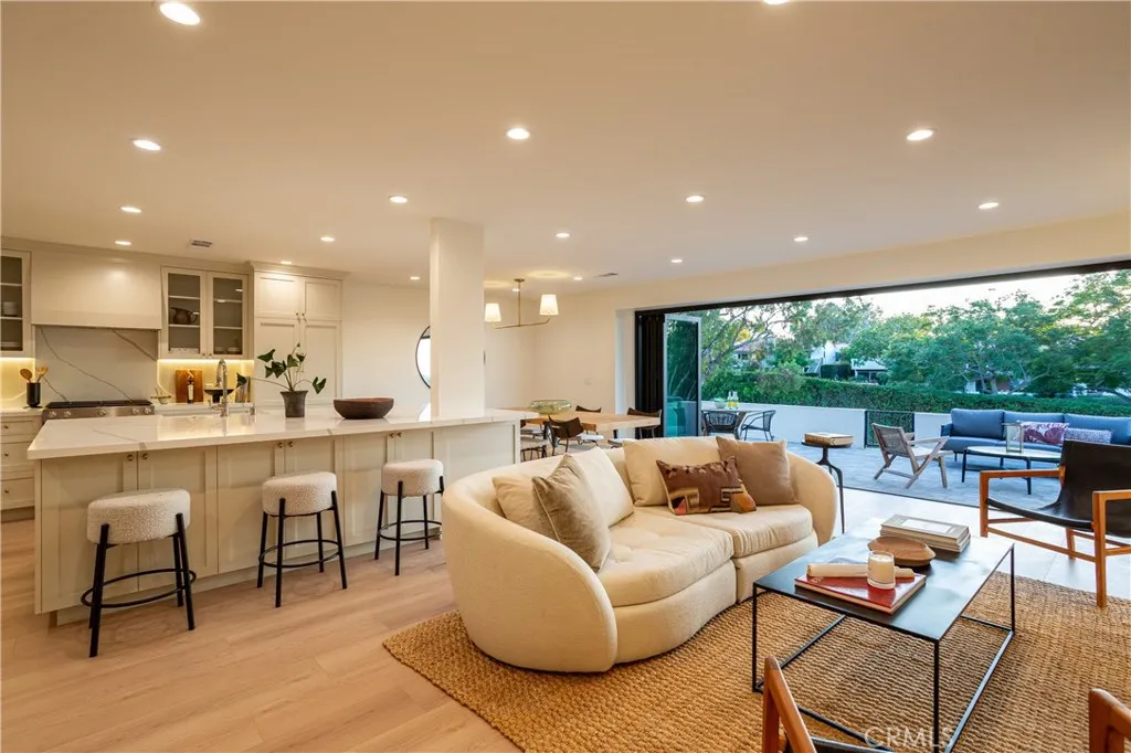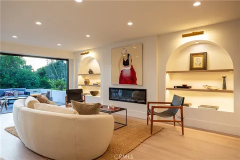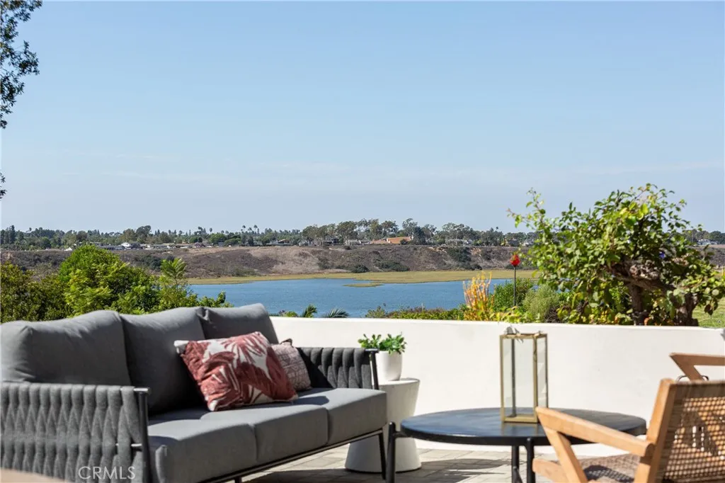 This stunning, fully renovated home sets a new benchmark for design, craftsmanship, and attention to detail. From the moment you enter through a charming Dutch door, the expanded foyer impresses with exposed wood beams and a skylight that fills the space with natural light, creating an unforgettable first impression. At the heart of the home is a chef's dream kitchen, featuring a show-stopping oversized island, fireclay farmhouse sink, premium KitchenAid appliances, a walk-in pantry, and generous floor-to-ceiling cabinetry. Ideal for entertaining, the kitchen flows seamlessly into the living area, where wall-to-wall La Cantina folding doors frame breathtaking views of the Back Bay. The living room is anchored by beautifully crafted built-in shelving and a sleek fireplace. Step outside to a private enclosed patio that overlooks a lush green gully and treetop canopy, leading into the tranquil sanctuary of the Back Bay - a perfect retreat for morning coffee or evening gatherings. Every detail of the renovation was thoughtfully executed, including new ducting, HVAC, a tankless water heater, fully insulated walls, integrated Nest doorbell and thermostat, and wide-plank white oak flooring throughout. Solid wood interior doors add a touch of timeless quality and elegance to every room. The guest and hall bathrooms feature designer Visual Comfort lighting, Bedrosian tile, and premium finishes. The primary suite offers a spa-like experience with Edward Martin checkerboard tile, a soaking tub, oversized shower, and McGee & Co fixtures. The attached two-car garage is finished with epoxy flooring, overhead lighting, a quiet electric door opener, and an EV charger for added convenience. Ideally located just minutes from John Wayne Airport, Fashion Island, Newport Beach Tennis Club, and world-class beaches. Enjoy walkability to award-winning schools including Corona del Mar High and Middle School and Eastbluff Elementary. Friendly neighbors on Vista Grande are the cherry on top! This home perfectly balances elegance, comfort, and the relaxed charm of coastal living, offering a truly elevated lifestyle in one of Newport Beach's most sought-after neighborhoods.