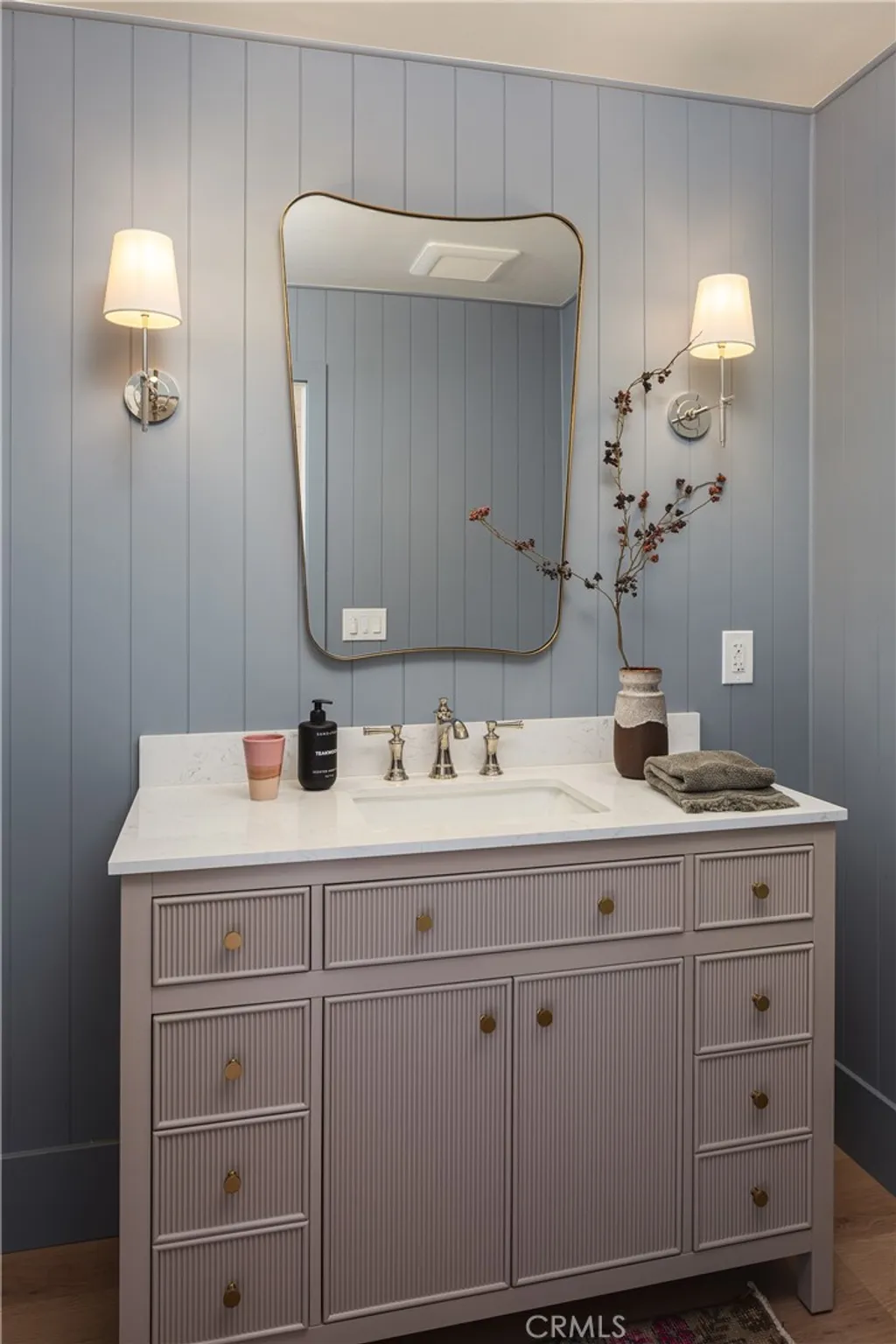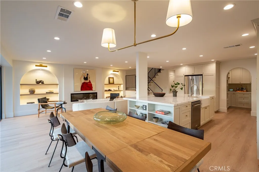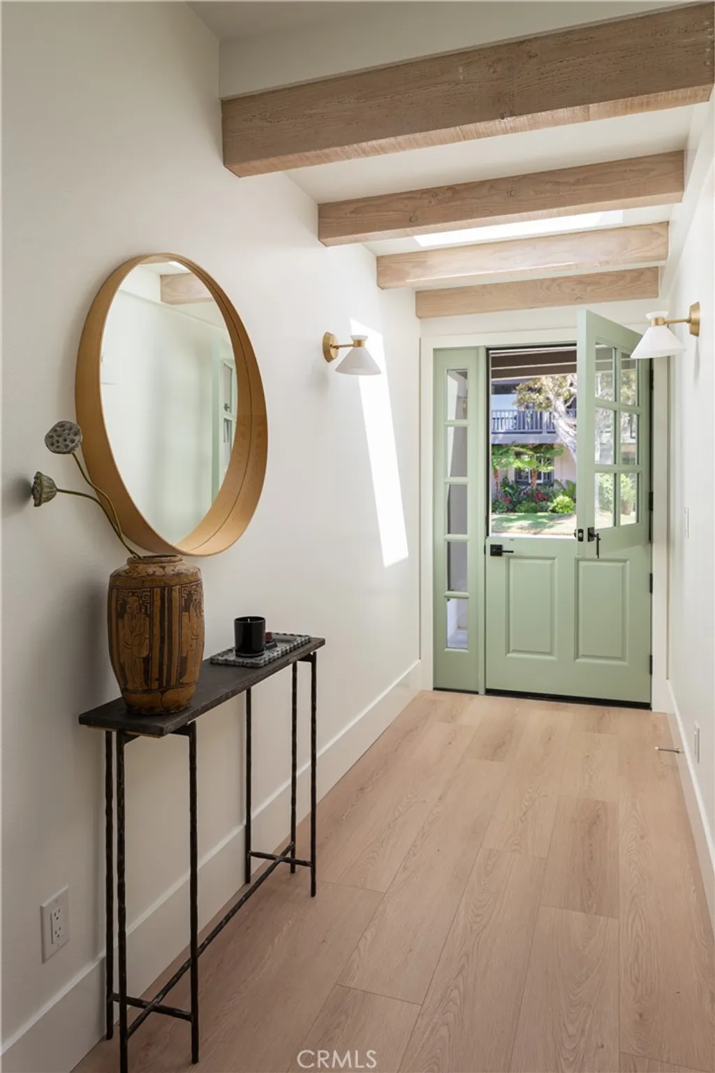This stunning, fully renovated home sets a new benchmark for design, craftsmanship, and attention to detail. From the moment you enter through a charming Dutch door, the expanded foyer impresses with exposed wood beams and a skylight that fills the space with natural light, creating an unforgettable first impression. At the heart of the home is a chef's dream kitchen, featuring a show-stopping oversized island, fireclay farmhouse sink, premium KitchenAid appliances, a walk-in pantry, and generous floor-to-ceiling cabinetry. Ideal for entertaining, the kitchen flows seamlessly into the living area, where wall-to-wall La Cantina folding doors frame breathtaking views of the Back Bay. The living room is anchored by beautifully crafted built-in shelving and a sleek fireplace. Step outside to a private enclosed patio that overlooks a lush green gully and treetop canopy, leading into the tranquil sanctuary of the Back Bay - a perfect retreat for morning coffee or evening gatherings. Every detail of the renovation was thoughtfully executed, including new ducting, HVAC, a tankless water heater, fully insulated walls, integrated Nest doorbell and thermostat, and wide-plank white oak flooring throughout. Solid wood interior doors add a touch of timeless quality and elegance to every room. The guest and hall bathrooms feature designer Visual Comfort lighting, Bedrosian tile, and premium finishes. The primary suite offers a spa-like experience with Edward Martin checkerboard tile, a soaking tub, oversized shower, and McGee & Co fixtures. The attached two-car garage is finished with epoxy flooring, overhead lighting, a quiet electric door opener, and an EV charger for added convenience. Ideally located just minutes from John Wayne Airport, Fashion Island, Newport Beach Tennis Club, and world-class beaches. Enjoy walkability to award-winning schools including Corona del Mar High and Middle School and Eastbluff Elementary. Friendly neighbors on Vista Grande are the cherry on top! This home perfectly balances elegance, comfort, and the relaxed charm of coastal living, offering a truly elevated lifestyle in one of Newport Beach's most sought-after neighborhoods.