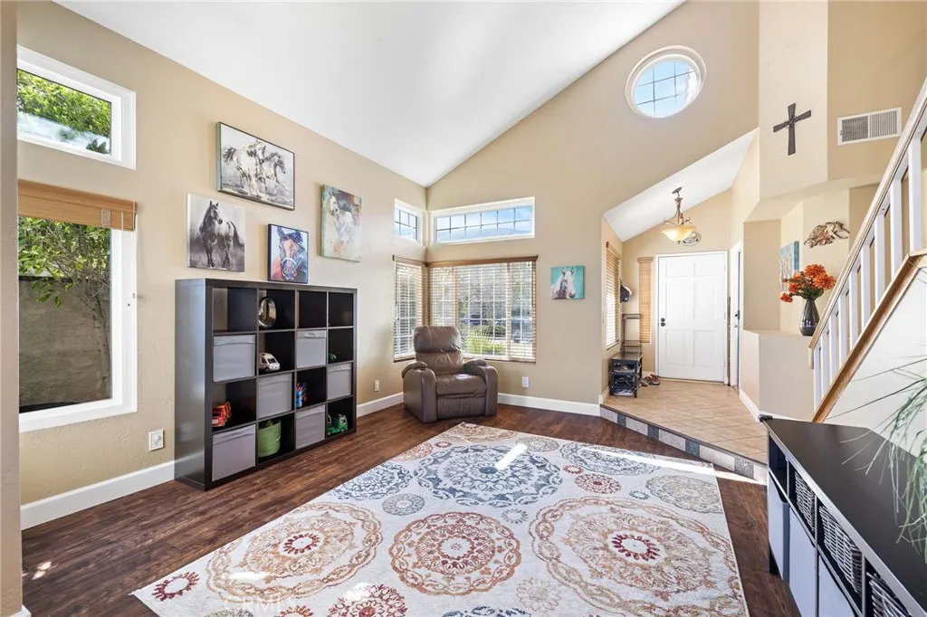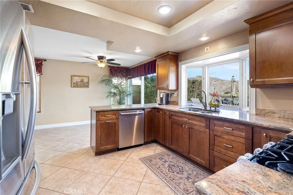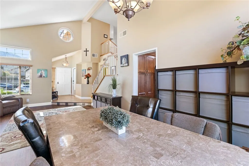 This move-in ready home is located in one of the most sought-after streets in the resort-like, guard-gated community of Green River; the home boasts an updated, oasis-like, oversized backyard with incredible, panoramic views of the mountains and canyons. When you enter the home, the family room offers volume ceilings and plenty of natural light. The Kitchen with its granite countertops and maple cabinets opens onto the Living room and backyard sliding door so you can entertain with ease. The spacious Master bedroom boasts a dual door entry, high ceilings, a mirrored walk-in closet and bath with dual vanities and an oversized luxury shower. Two bedrooms have been converted into a second master bedroom. Numerous recent updates to the house include: complete painting of the Exterior House and Trim, New House Roof with additional Insulation, new Luxury Vinyl Plank Flooring in the Family Room / Dining Room, New Lifesource Water System Tanks and Kitchen Reverse Osmosis system, New Backyard Shed with integrated electrical for use as an Office, Backyard Patio Renovation with Custom Stone walkways and landscaping, New Three-Person Hot Tub, New Concrete Block Stucco SideWall and New Rear Stucco Wall/Wired Fence, New Garage Door, New Water Heater, New High-end HVAC w/ Dual Thermostat, including New Ducts & Air Cleaner, New Master Bathroom with new toilet and shower glass, New Upstairs Bathroom with new deep bathtub, new vanity/faucet and new toilet, New Downstairs Bathroom with new toilet, and New Windows throughout the house. HOA includes a community pool, spa, playground, tennis, pickleball, basketball courts, racquetball courts, clubhouse, gym, sauna, BBQ, and Doggie Park, plus nearby the Green River golf course. This wondrous retreat lifestyle awaits you - make it yours while you can!
