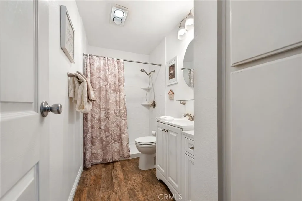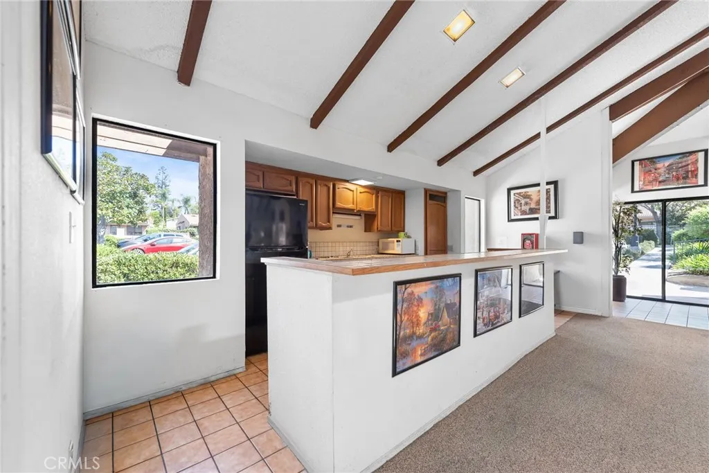 Welcome to your charming oasis in a vibrant 55+ community! This beautifully remodeled condo, built in 1982, offers an inviting 580 square feet of thoughtfully designed living space. Step inside to discover stunning laminate flooring throughout, creating a warm and welcoming atmosphere. The bright and airy living room seamlessly flows into the dining area, perfect for both entertaining friends and enjoying quiet meals at home. The well-appointed kitchen features modern Corian countertops and is open to the living and dining areas, ideal for social gatherings. Natural light pours in through The windows, enhancing the spacious feel of this delightful home. Your tranquil primary suite boasts a generous walk-in closet and convenient access to the charming balcony, also accessible from the living room, which provides a peaceful retreat for enjoying neighborhood views and fresh air. Additional comforts include air conditioning for those warm summer days and easy access to the building's elevator and the ramp that makes this seem as though its on the first level. This is a level unit but is on the second floor. This condo is truly a hidden gem, combining convenience and style in a picturesque setting. Experience the ease of low-maintenance living with community amenities that enhance your lifestyle. Don't miss this opportunity to own a wonderful home in a great community! There is also a large clubhouse as well as a library within the clubhouse. Located just across the street from the Yorba Linda town center, you'll have easy access to shopping, dining, entertainment and a local coffee shop that is just down the road. The library and cultural center are also close by. Schedule your private tour today and picture yourself calling this place home.