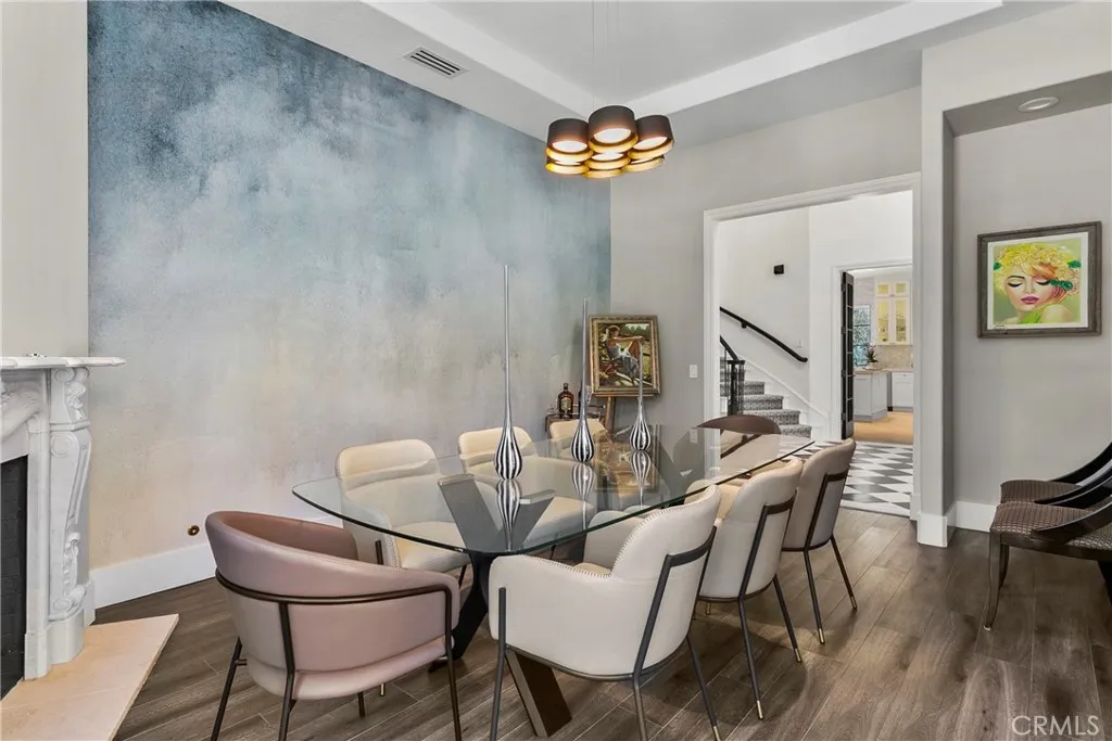 Welcome to your dream home, a masterfully remodeled Mediterranean-style residence nestled in the prestigious, guard-gated South Peak community of Laguna Niguel. Situated on a serene cul-de-sac with breathtaking views of the El Niguel Country Club golf course, rolling coastal hills, and refreshing ocean breezes, this 4-bedroom, 5-bathroom masterpiece spans approximately 4,200 square feet on a sprawling 9,000-square-foot lot. Seamlessly blending timeless elegance with modern sophistication, this light-filled retreat offers luxury, privacy, and an unparalleled Southern California lifestyle. Step through the grand front door into a striking foyer, where high ceilings, checkerboard floors, and brass fixtures create a vintage-glam ambiance. The open-concept main level flows effortlessly, featuring a stately dining room with a fireplace, a chic living room, and an entertainer's kitchen that's sure to impress. The chef's kitchen boasts handmade Moroccan Zellige tiles, a large center island, top-of-the-line stainless steel appliances, a wine refrigerator, and new windows framing stunning golf course and coastal hill views. The adjacent great room opens to a tropical oasis - a flagstone patio with a built-in BBQ, fireplace, and a sparkling pool/spa with a waterfall, perfect for hosting gatherings or enjoying tranquil evenings. A bedroom with a full bath and a laundry room complete the lower level. Ascend the elegant staircase to the primary suite, a luxurious sanctuary reminiscent of a high-end NYC penthouse. This retreat features a spacious lounge area, private balcony, and a spa-inspired bathroom with dual vanities, a separate shower, soaking tub, and sauna. Two additional bedrooms, each with exquisitely designed en-suite bathrooms, and a versatile family room or media space round out the upper level. Enhanced with modern amenities, including brand-new wood flooring on the main level, plush luxury carpet upstairs, travertine accents, solar power, repiped plumbing, new pool plaster, reverse osmosis system, and smart home features, this home offers both comfort and grandeur. Located just minutes from Crown Valley, pristine beaches, top-rated schools, and convenient freeway access, this South Peak masterpiece delivers quiet luxury and breathtaking scenery in one of Laguna Niguel's most coveted communities. Don't miss this rare opportunity to own a home that perfectly blends elegance, functionality, and coastal charm.