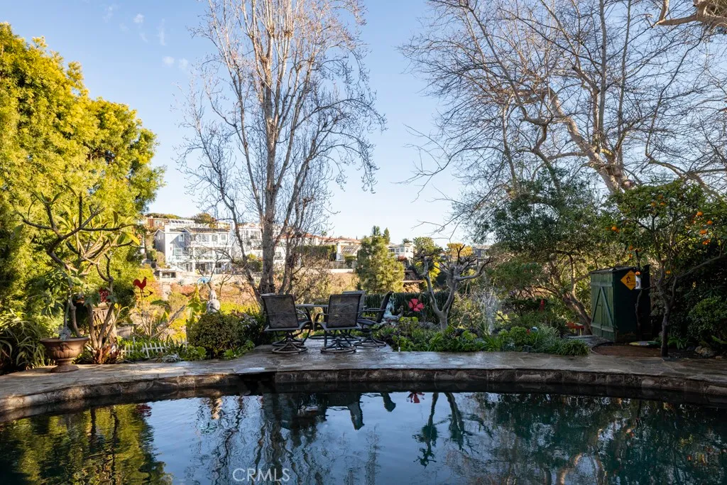 Located amidst the enchanting allure of the Flower Streets in Corona del Mar, 612 Poppy Avenue emerges as a sanctuary of coastal living, offering a harmonious blend of livability and tranquility. This canyon-facing property among mature trees on an approximately 7,480 square foot parcel, which is double that of a traditional Village lot. This home embraces the grandeur of 2-story ceilings in the living room, where grand windows frame panoramic views of the canyon and the lush landscape below. Bathed in natural light, the living & dining areas flow seamlessly into the kitchen, a convenient island and custom cabinetry, ideal for culinary endeavors and entertaining guests. The approximately 2,250 square foot residence boasts the flexibility of 3 bedrooms and 3 bathrooms, or 2 bedrooms & 2 bathrooms in a main house with an ADU (accessory dwelling unit). Experience ocean views from the second floor primary bedroom balcony with spa. Step outside to discover your own private oasis, complete with a solar-heated pool surrounded by verdant foliage and fruit trees, creating a serene ambiance for relaxation. A generous stone-paved deck offers a peaceful setting for soaking in the California sunshine and the surrounding wildlife habitat. The oversized 2-car garage provides ample room for two vehicles plus storage space. Designed for seamless indoor-outdoor living, this home invites you to savor the coastal breeze and embrace nature. 612 Poppy sits only blocks from the countless amenities, restaurants and shops along PCH, multiple State Beaches, and is a short drive away from Fashion Island and John Wayne Airport.