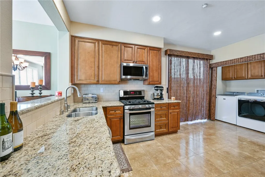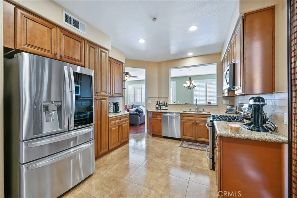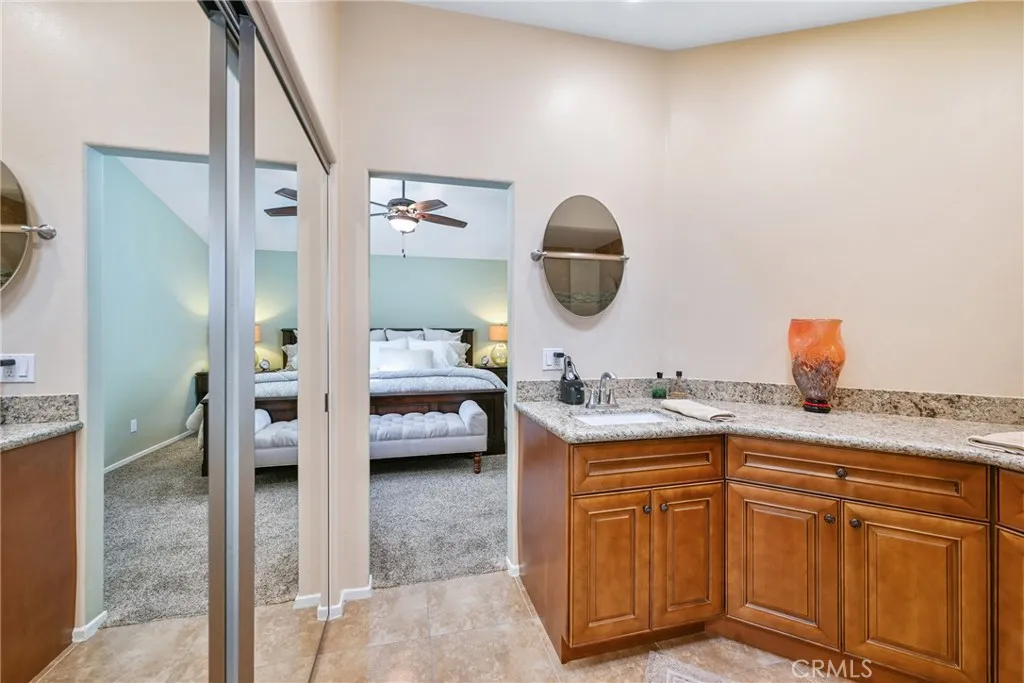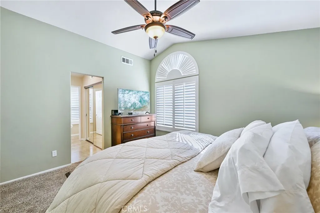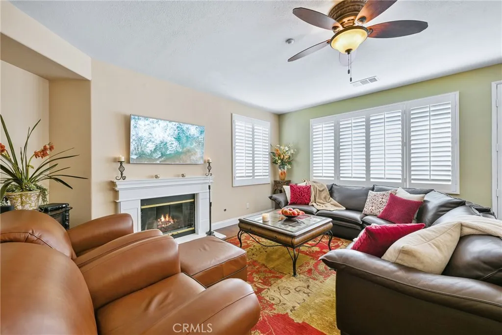 Discover a beautifully upgraded home in the prestigious gated community of Fairways at Alta Vista. This spacious 3-bedroom, 2.5-bathroom residence offers 1,750 square feet of living space with a large bonus room and a peek-a-boo golf course view. Step through a spectacular custom iron door with a glass partition panel into a world of elegance and comfort. The living room, adorned with hardwood floors, a gas fireplace with a mantle, and plantation shutters, invites you to relax and unwind. The dining room, with its chandelier and door to the backyard, offers a perfect space for entertaining guests. As you explore further, you'll find a gourmet kitchen equipped with a modern flair, including granite countertops, a subway tile backsplash, a stainless steel sink, stainless LG appliances, and an adjacent inside laundry room. The spacious bonus room, with its peek-a-boo golf course view, carpet, cathedral ceilings, ceiling fan, and plantation shutters, offers a versatile space for relaxation or entertainment. The primary suite, with its luxurious en-suite bathroom, is a true retreat. The bathroom features a dual vanity with granite countertops, tile floors, a tile shower with a mosaic inlay, a bench seat and large glass doors, and a mirrored walk- in closet. The bedroom itself boasts cathedral ceilings with a ceiling fan. Two additional bedrooms offer carpeted floors, ceiling fans, mirrored wardrobe closet doors, and custom shutters. The hallway features a built-in linen closet and a Nest thermostat. The shared hall bathroom features tile floors, a tub/shower combo with tile inlay and glass doors, granite countertops, and a new vanity and fixtures. The attached two-car garage provides ample parking and takes advantage of the Tesla solar panels. The community offers a pool, spa, playground, park, and picnic area with BBQ facilities. Recent updates, such as a full remodel in 2015-2016, a new AC unit in 2024, and a new front door in 2022, ensure this home is in pristine condition. Experience the perfect blend of luxury, comfort, and community living in this exceptional property..