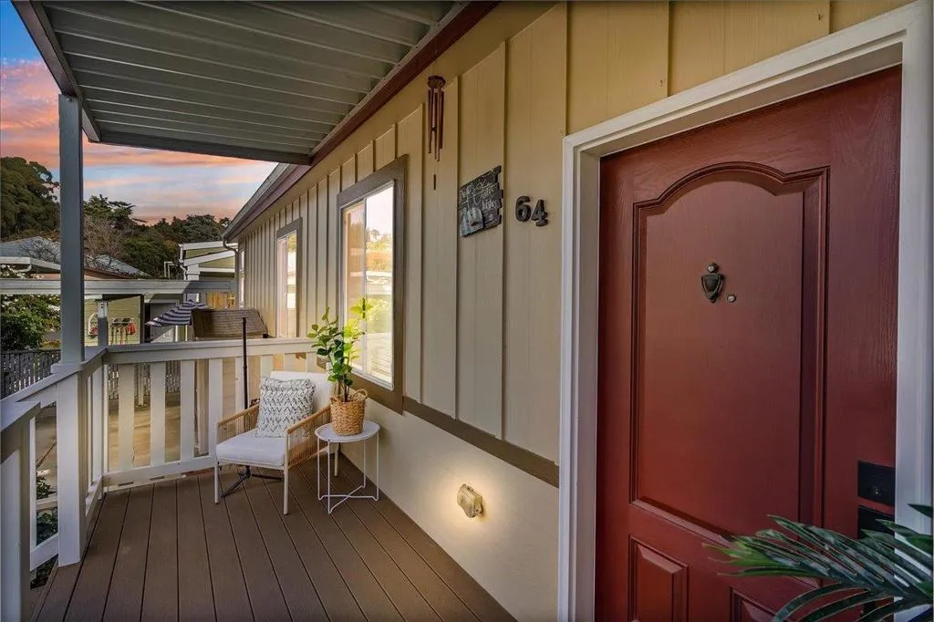 This beautiful 3-bedroom, 2-bath manufactured home offers wonderful curb appeal and is located in one of the best-maintained parks in Aptos, the home features hardwood floors, granite countertops, and a cozy fireplace in the living room, the perfect spot for curling up with a good book and warm beverage during the cooler months. A rare side-by-side parking setup adds extra convenience. The spacious primary suite boasts ample closet space, a ceiling fan, and a luxurious en-suite bath with dual sinks, jetted soaking tub, and a stall shower. Easy access to world renowned outdoor activities like hiking trails in Nisene Marks, mountain biking at Demonstration Forest, and surfing at Manresa State Beach. As part of a partnership-owned community, the park requires a separate $59,000 buy-in, granting access to fantastic amenities like the clubhouse, a community pool, and exceptionally low space rent. Enjoy this amazing opportunity to live near the beach at an affordable price! 55+ community.