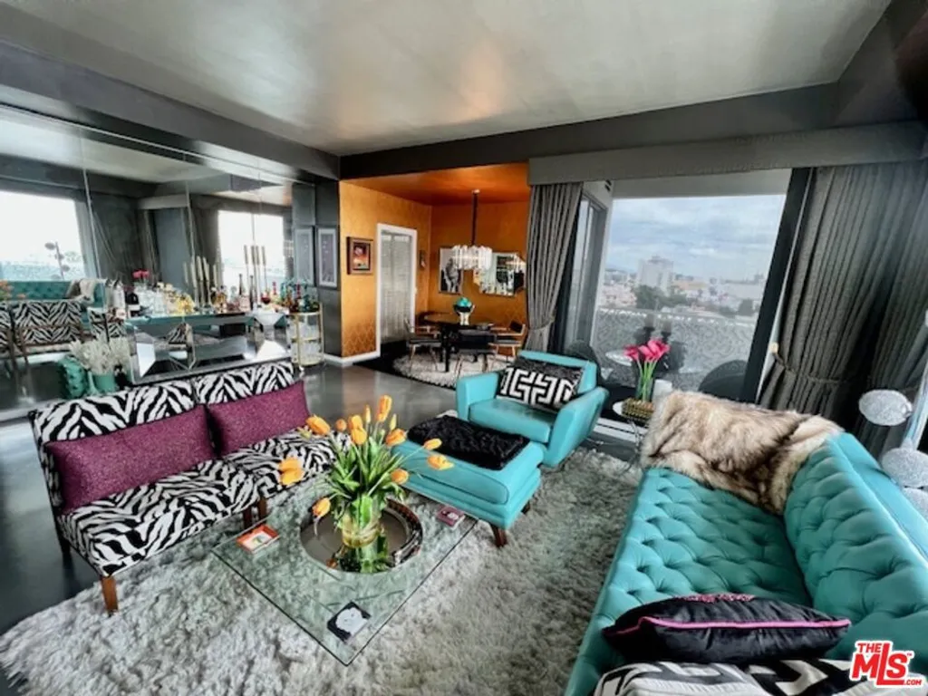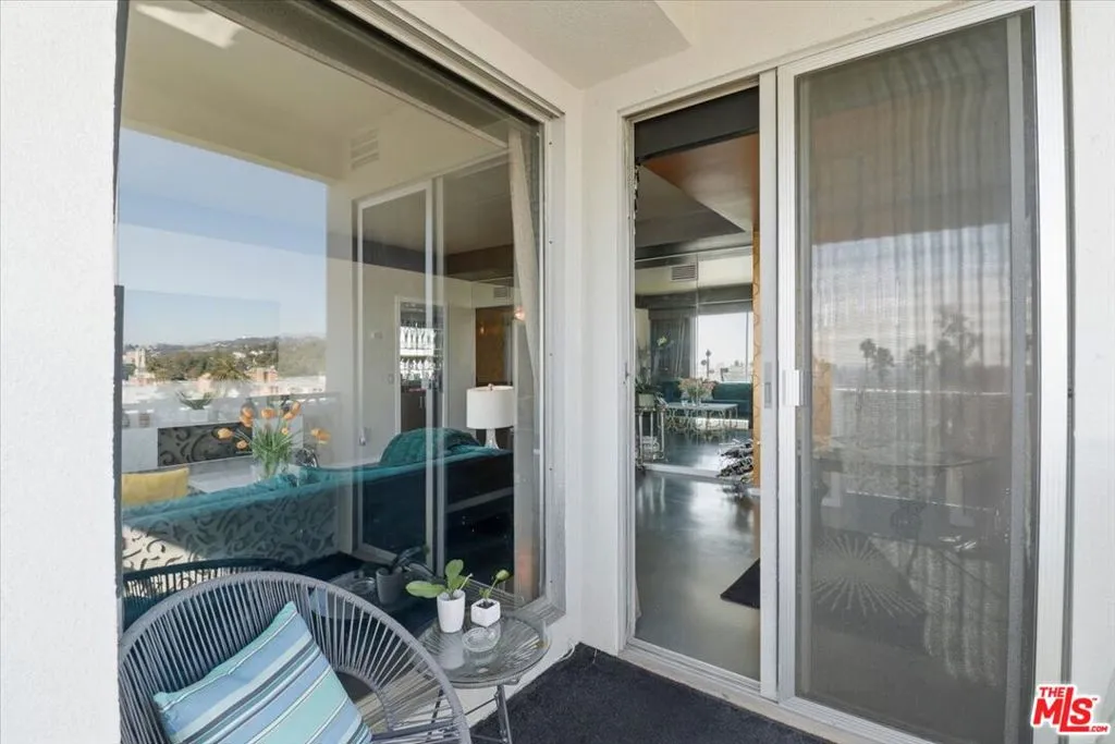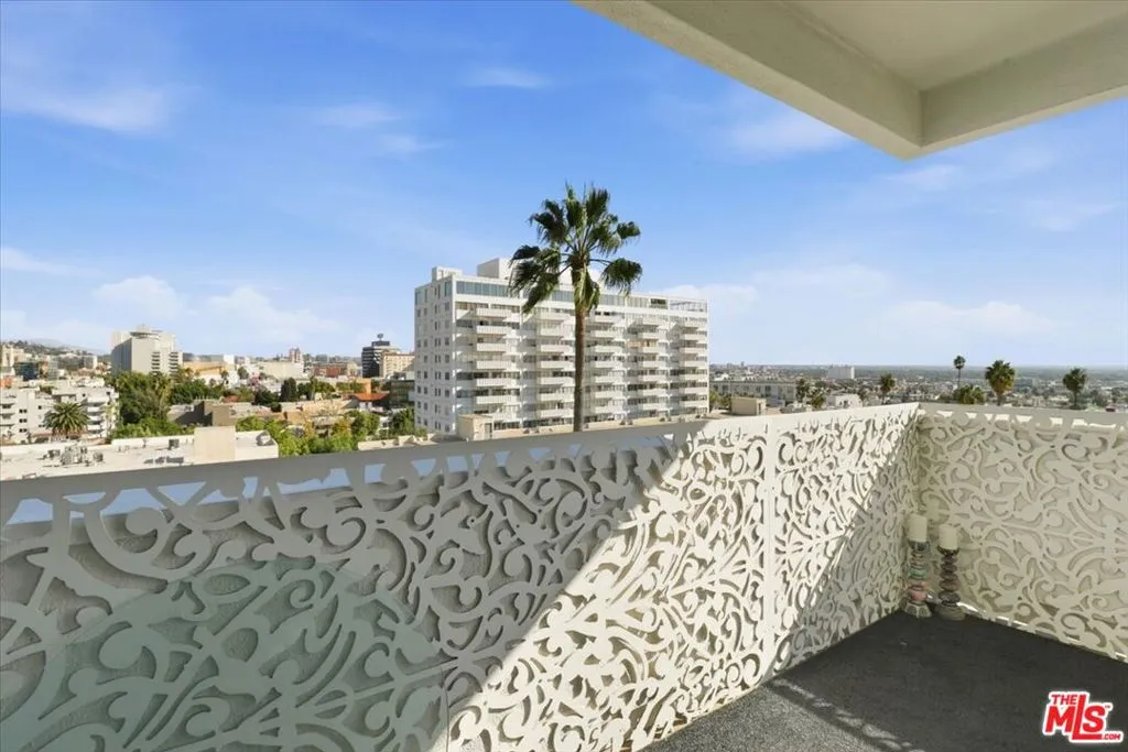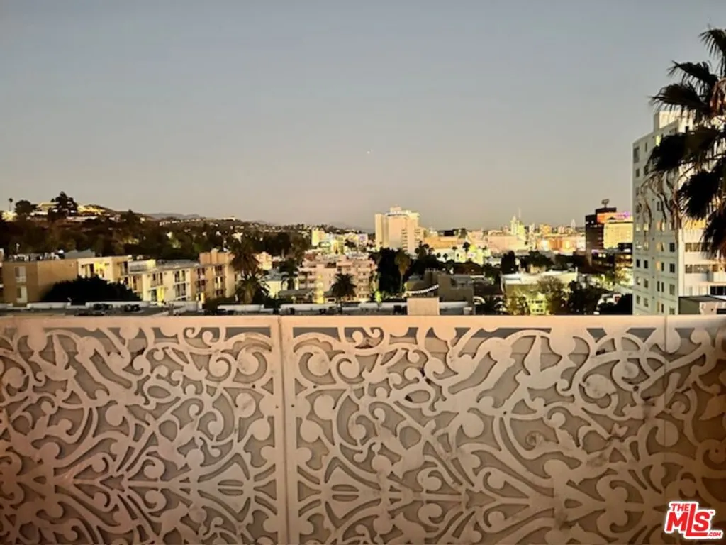 Perched on the fifth floor of the sought-after Franklin Towers at 7250 Franklin Ave #517, this renovated corner residence offers 2 bedrooms and 2 bathrooms with sweeping views of the Los Angeles skyline. The generous wraparound terrace showcases dramatic city vistas and spectacular sunset displays. Meticulously upgraded throughout, this contemporary home features concrete and hardwood floors, designer wallpaper accents, and a custom mirrored wall that enhances the sophisticated aesthetic. The designer kitchen is outfitted with stainless steel appliances, contemporary cabinets, and black granite countertops that blend sophistication with practicality. A newly updated air-conditioning system ensures year-round comfort, while the luxurious cedar-lined walk-in closet and custom built-in closets provide abundant storage solutions. Convenience is enhanced with in-unit laundry hookups and two designated parking spots plus additional storage space. Franklin Towers delivers exceptional full-service amenities including round-the-clock concierge and security services, valet parking, a temperature-controlled pool, spa facilities, steam room, dry sauna, dedicated yoga studio, and a glass-walled rooftop fitness center offering magnificent city scape panoramas. The rooftop entertaining space and clubhouse featuring a full kitchen and comfortable lounge area create the perfect setting for gatherings. Perfectly positioned near Runyon Canyon, Hollywood Boulevard, and the Sunset Strip, this outstanding residence provides unparalleled urban luxury living.