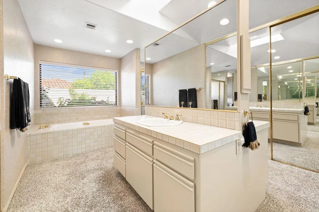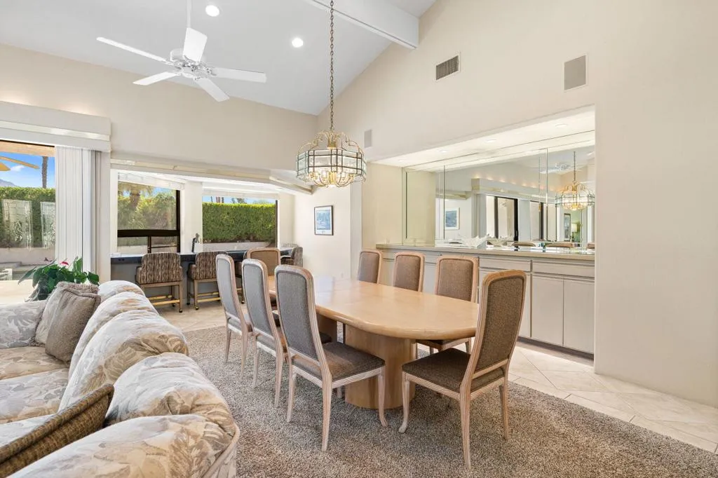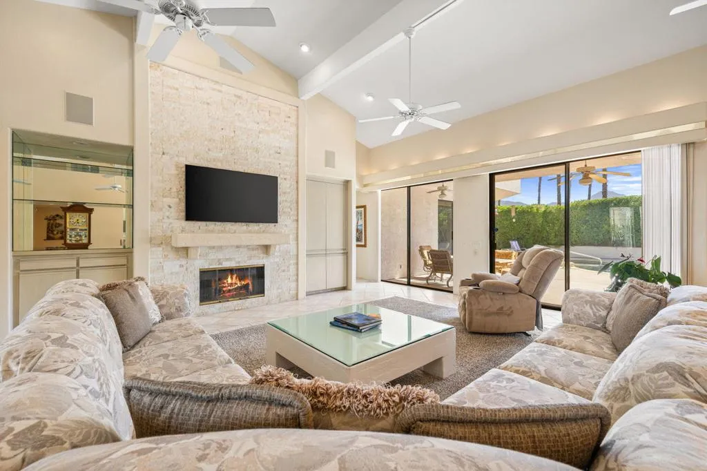 Welcome to Ironwood Heights, part of the Ironwood Country Club community!Discover sophisticated desert living in this custom home. Designed for elegance and comfort, this residence features three spacious en-suite bedrooms for ultimate privacy.The kitchen boasts granite countertops, a butcher block island, a cozy breakfast nook with beautiful views, and a built-in workspace--perfect for both culinary creations and casual dining.Entertain in style in the open-concept great room, showcasing high ceilings, a dramatic fireplace, an oversized sunken wet bar, and dining area. Step outside to your private backyard oasis with views of the mountains, complete with a sparkling saltwater pool, and large pool deck, ideal for sun-soaked relaxation or unforgettable gatherings.Additional highlights include a solar lease for energy efficiency and a dedicated golf cart garage, golf cart included. Experience one of Palm Desert's most desirable gated communities, where luxury and lifestyle converge. Ironwood Country Club is a private club with two 18-hole golf courses, fitness center, tennis and pickleball courts, and a beautiful club house. Membership is by application, requires sponsorship and is separate from home ownership.