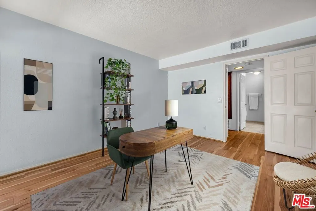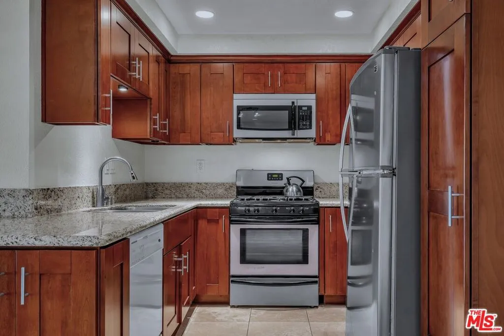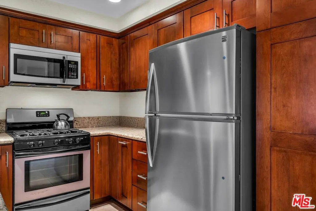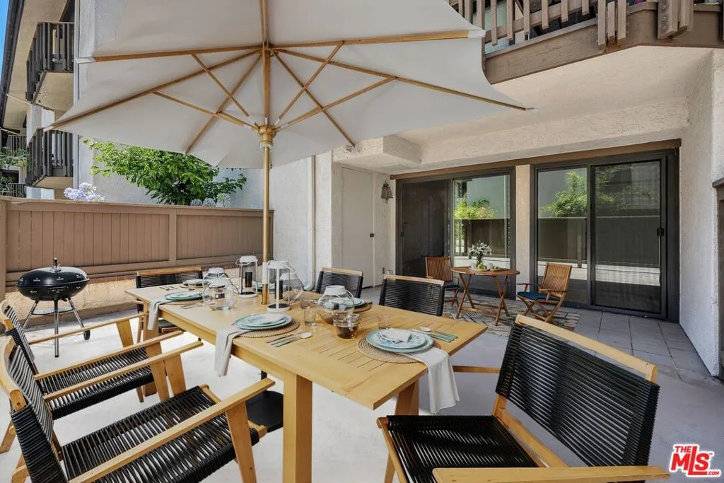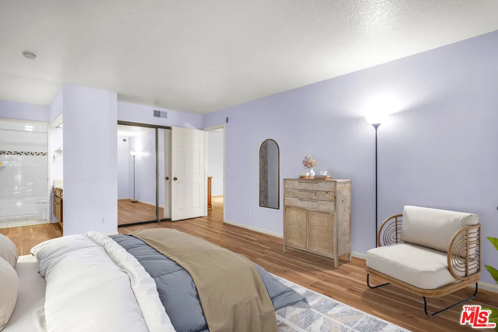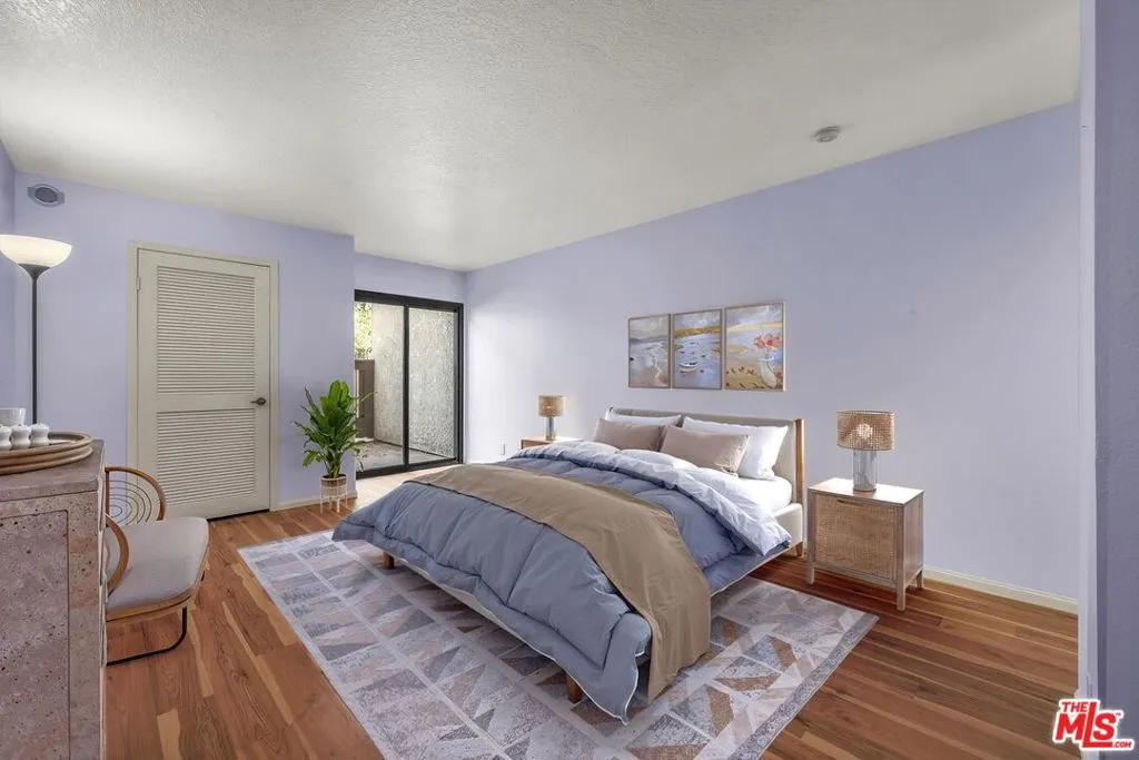 Elegant, courtyard-facing 2 Bedroom, 2 Bath condo at the Villas del Rey. This is an interior unit with just one connection wall to neighbor. It features sliding door access to 300+sf of patio area from the living room and both bedrooms. The kitchen has granite counters and custom cabinetry. Both bedrooms have large walk-in closets. The primary bedroom is ensuite and has its own separate, enclosed patio area. Other highlights include central heat/air, full-sized washer & dryer, plantation shutters (in living room), and stylish Pergo flooring throughout. It's location near a pedestrian exit off of the main courtyard provides convenient access to sidewalk on Manchester Ave for walking your dog or visiting the nearby shopping center. Complex amenities include community pool and spas, tennis courts, gym, saunas, clubhouse, guest parking, and extra storage. Villas del Rey is located approximately a mile from downtown Playa del Rey and beach, and just minutes from nearby Playa Vista, Marina del Rey, freeway connections, and LAX.