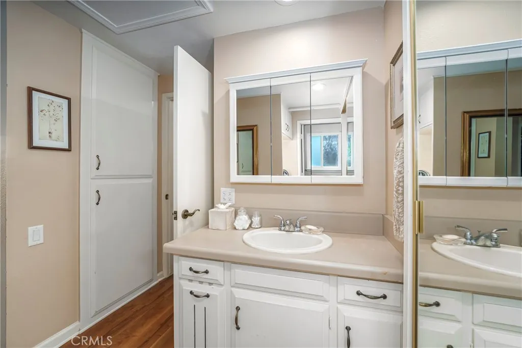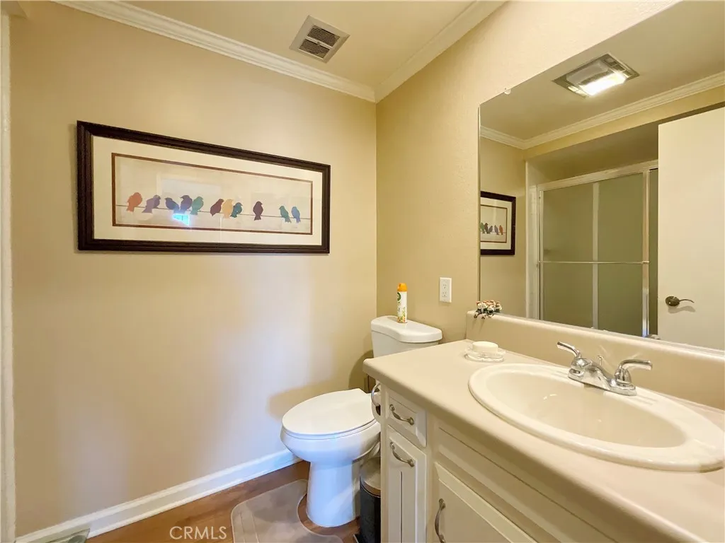 Peaceful Creekside Living with Sunset Views - Knob Hill Retreat in Laguna Woods Tucked away in the desirable Knob Hill area near the creek, this light-filled upper-level home offers quiet, privacy, and beautiful hillside sunset views. Set well away from busy roads, the location feels serene and insulated. Mature trees, gentle breezes, and glowing evening skies create a calming backdrop that can be enjoyed every day. Inside, the remodeled open kitchen features black granite countertops, stainless steel appliances, recessed lighting, and a generous breakfast bar that flows seamlessly into the dining and living areas. The open layout feels bright yet comfortable - ideal for gathering or unwinding. Highlights include: Central air conditioning Custom decorative front door Dual-pane windows Textured ceilings with crown molding Wood-look flooring throughout main living areas Inside laundry with newer washer and dryer The spacious primary suite is filled with natural light and mirrored closets. The half-enclosed patio with ceiling fan provides valuable additional living space - a peaceful sunroom, reading retreat, or morning coffee spot overlooking the hills. Beyond the home itself, Laguna Woods Village offers an exceptional 55+ lifestyle with: 27-hole championship golf course + 9-hole executive course 5 swimming pools 7 clubhouses Fitness centers and wellness facilities Tennis, pickleball, lawn bowling & equestrian center Performing arts theater Over 200 clubs and social organizations Guard-gated security and community transportation This is hillside tranquility combined with vibrant community living - a rare opportunity in one of Laguna Woods' most peaceful interior locations.