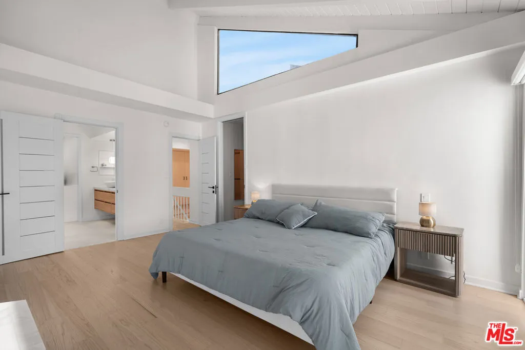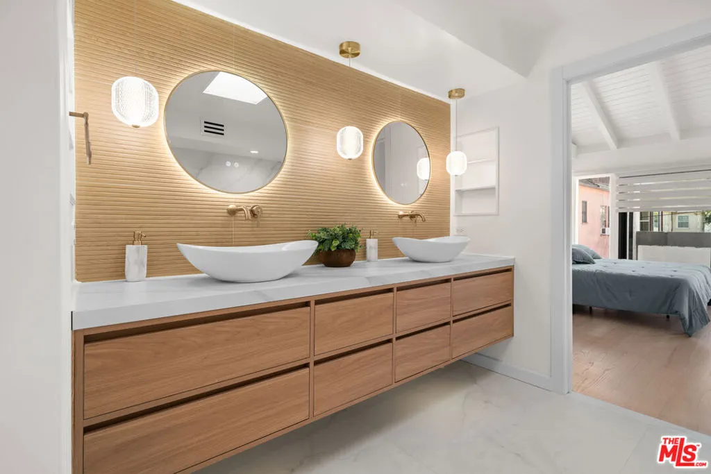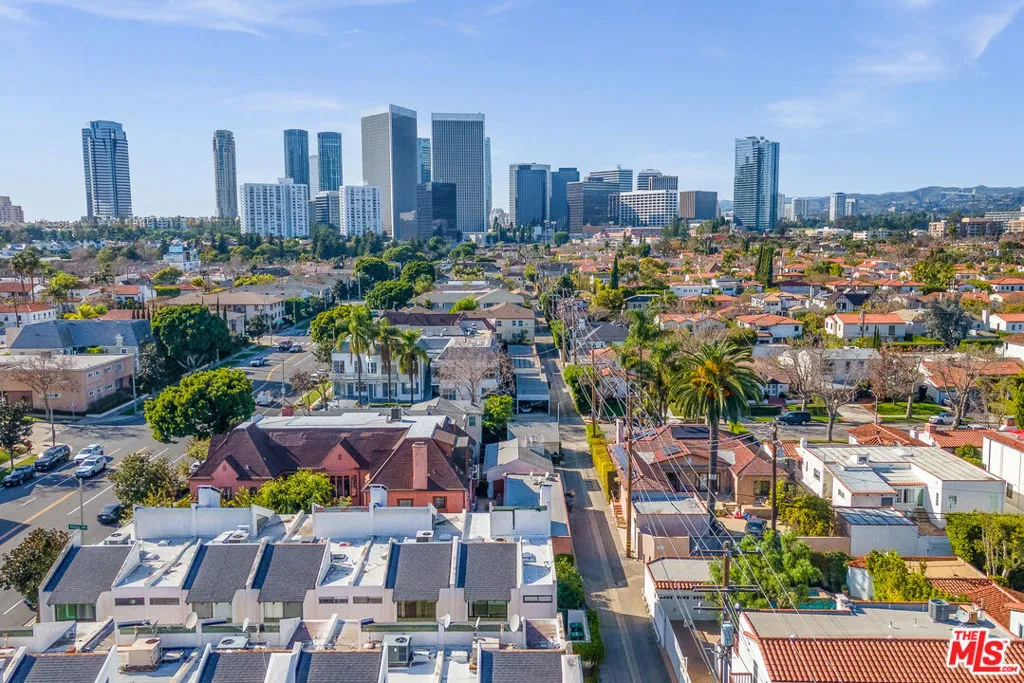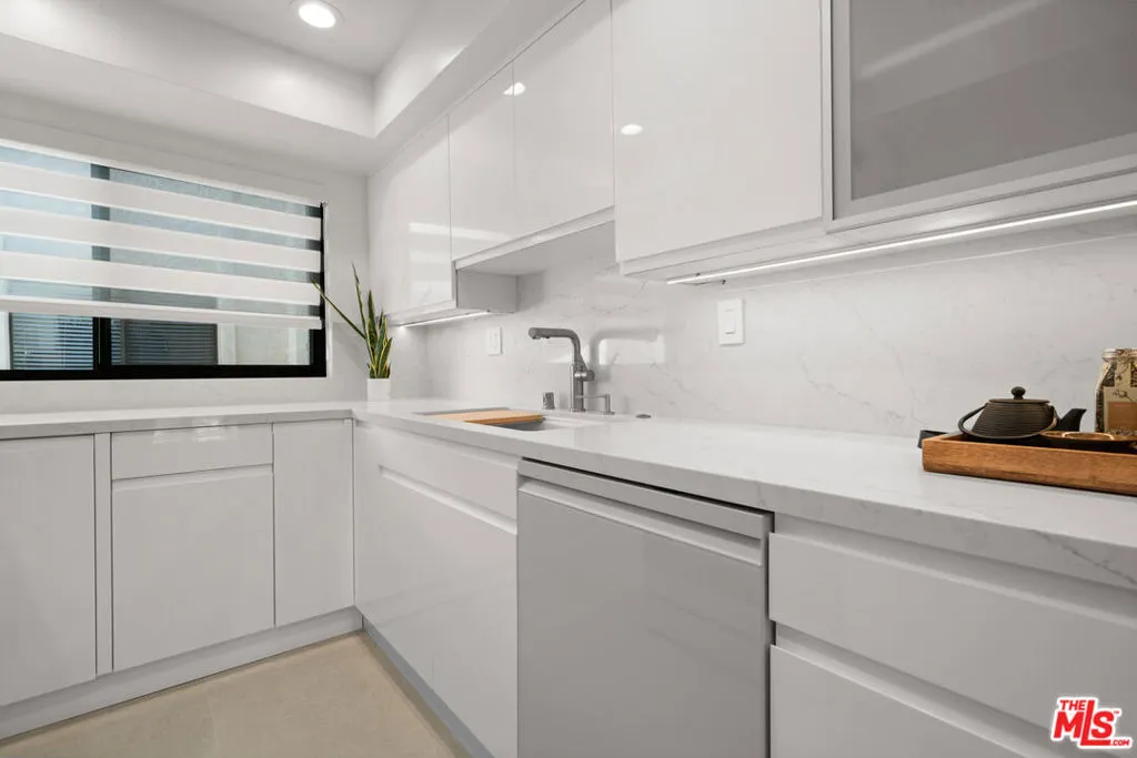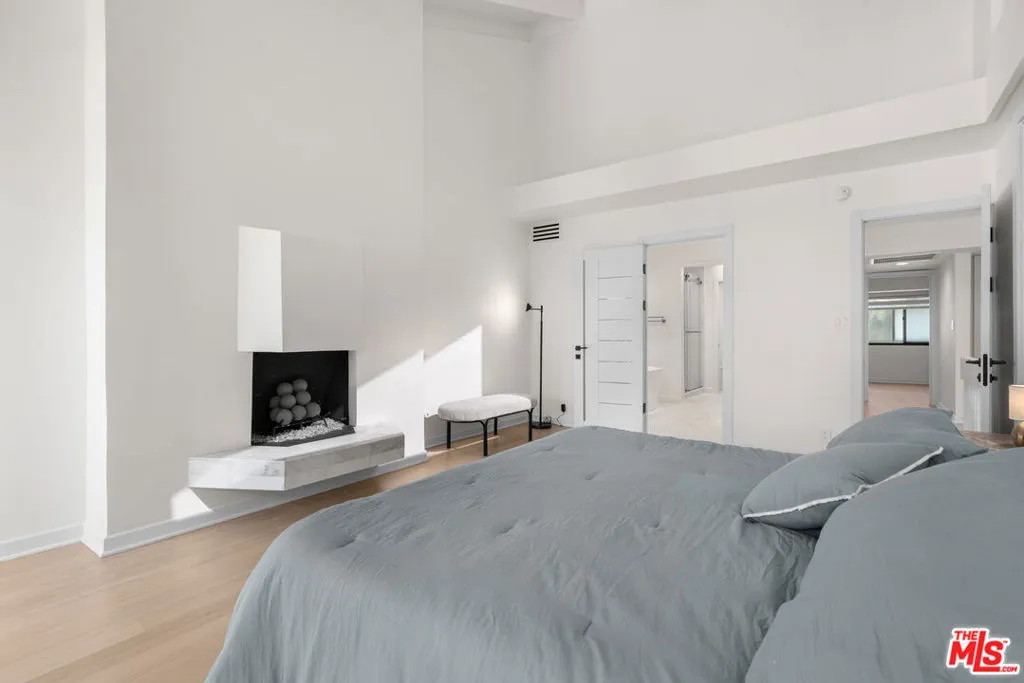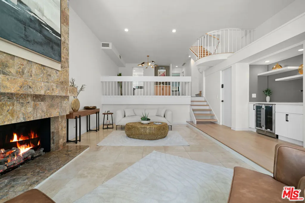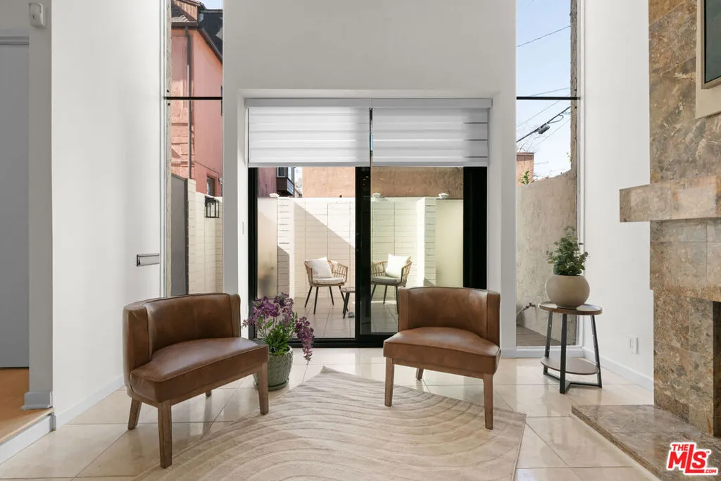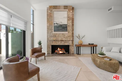 Tucked away in a quiet rear section of the luxurious El Camino townhomes, this corner residence provides a sense of privacy and calm rarely found in such a prime location thus giving it the feel of a single family home. This exquisitely remodeled three-bedroom, three-bathroom residence offers a rare opportunity to enjoy refined living in one of Beverly Hills' most coveted enclaves near iconic Rodeo Drive, just moments from Beverly Drive. Two side glass panels fill the living room with natural light, accentuating the striking marble fireplace. A private patio invites effortless indoor-outdoor living, while a designer wet bar with built-in wine cooler creates an inviting setting for intimate gatherings and elegant entertaining. The elevated dining area overlooks the living room and is highlighted by a statement chandelier. The European-style kitchen features sleek quartz countertops and brand-new Samsung Bespoke light gray glass appliances, blending timeless design with functionality. Modern doors with magnetic closures add refined architectural detail throughout. Upstairs, two luxurious primary bedrooms serve as serene retreats, each with a walk-in closet. One primary suite offers a marble fireplace, private balcony, and captivating views of the Century City skyline, while the spa-inspired bath is enhanced by dual skylights that bathe the space in natural light.Completing the residence are a two-car garage and close proximity to celebrated dining, boutiques, and parks. The property is located within the exceptional Beverly Hills school district, offering excellent schools from elementary through high school.