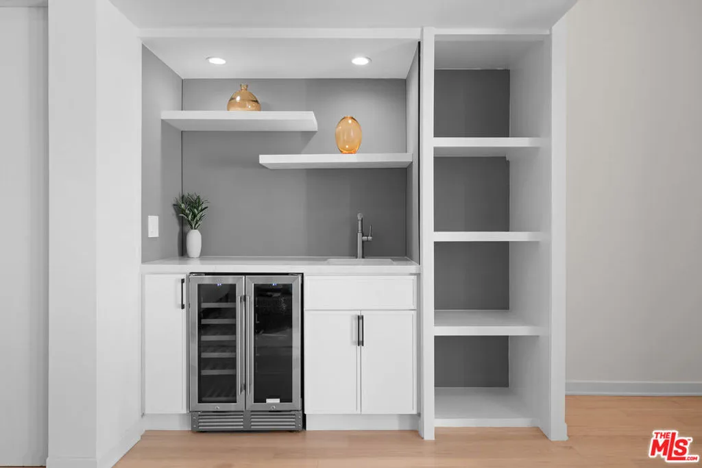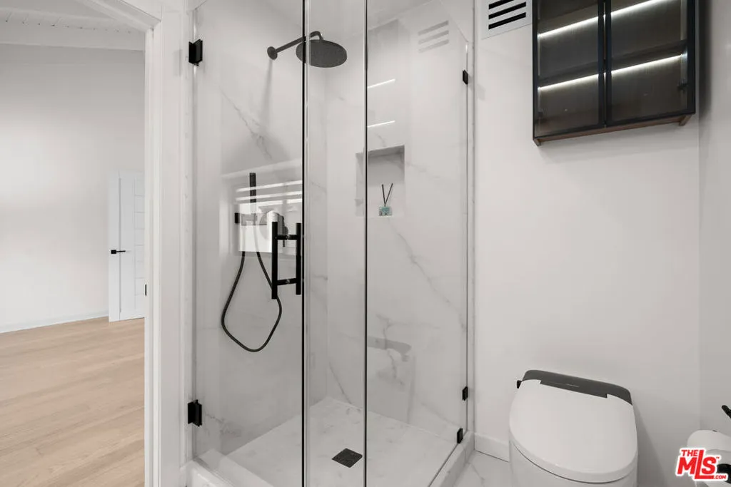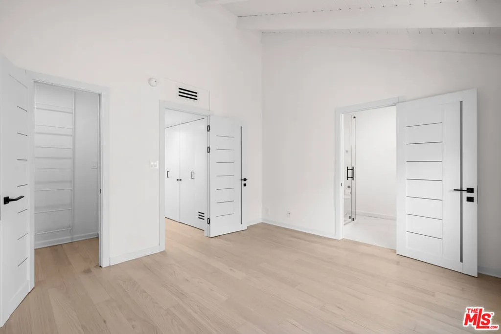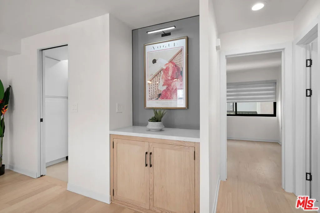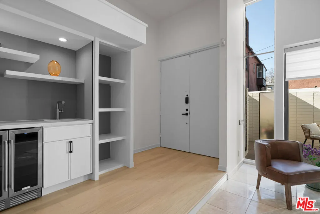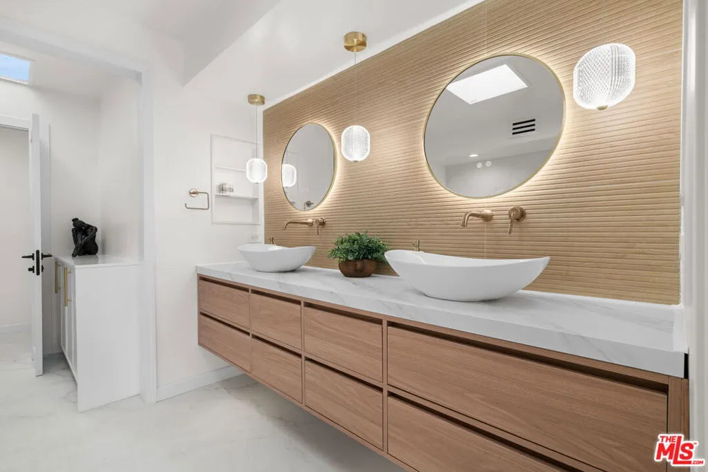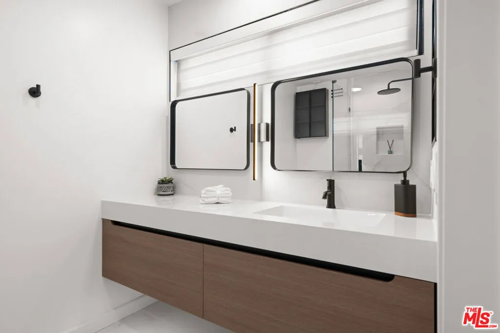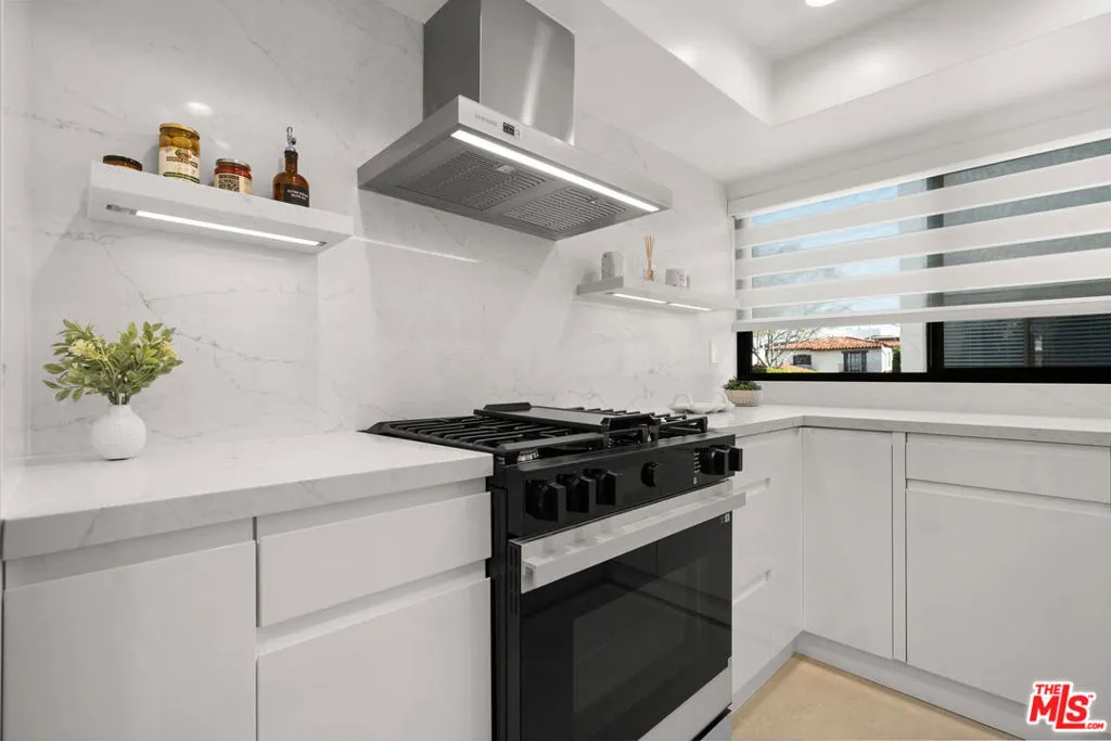 Tucked away in a quiet rear section of the luxurious El Camino townhomes, this corner residence provides a sense of privacy and calm rarely found in such a prime location thus giving it the feel of a single family home. This exquisitely remodeled three-bedroom, three-bathroom residence offers a rare opportunity to enjoy refined living in one of Beverly Hills' most coveted enclaves near iconic Rodeo Drive, just moments from Beverly Drive. Two side glass panels fill the living room with natural light, accentuating the striking marble fireplace. A private patio invites effortless indoor-outdoor living, while a designer wet bar with built-in wine cooler creates an inviting setting for intimate gatherings and elegant entertaining. The elevated dining area overlooks the living room and is highlighted by a statement chandelier. The European-style kitchen features sleek quartz countertops and brand-new Samsung Bespoke light gray glass appliances, blending timeless design with functionality. Modern doors with magnetic closures add refined architectural detail throughout. Upstairs, two luxurious primary bedrooms serve as serene retreats, each with a walk-in closet. One primary suite offers a marble fireplace, private balcony, and captivating views of the Century City skyline, while the spa-inspired bath is enhanced by dual skylights that bathe the space in natural light.Completing the residence are a two-car garage and close proximity to celebrated dining, boutiques, and parks. The property is located within the exceptional Beverly Hills school district, offering excellent schools from elementary through high school.