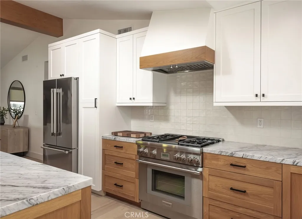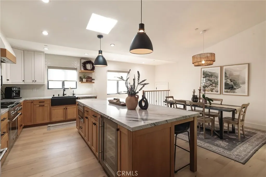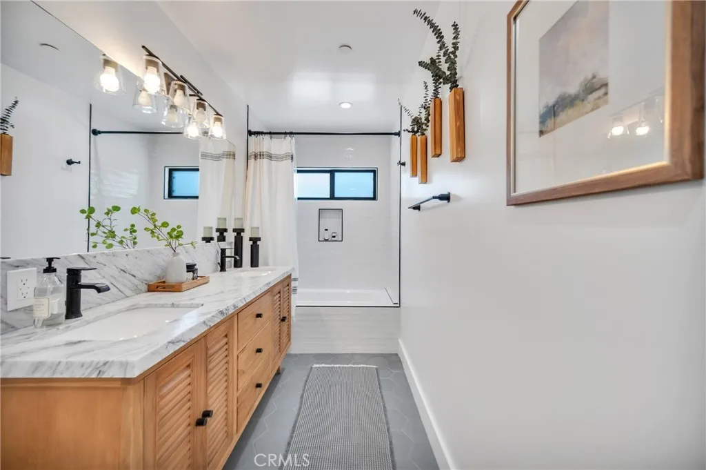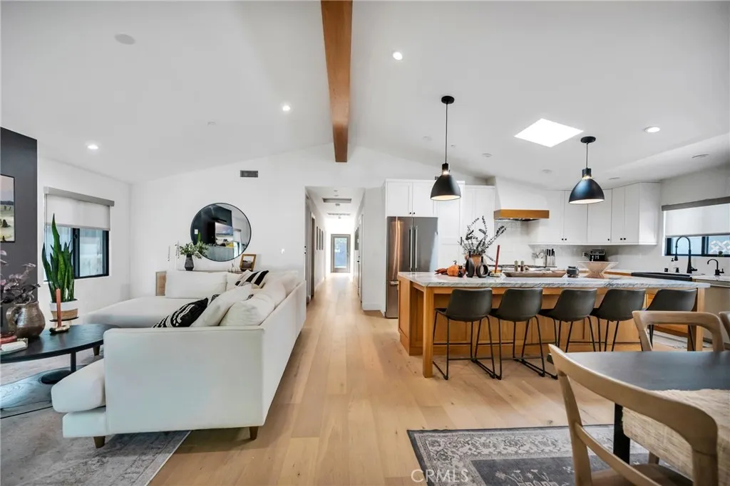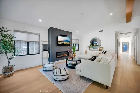 Tucked behind lush greenery, this Manhattan Beach haven immediately exudes a sense of calm. Reimagined with a designer's eye, the home layers organic textures with sculptural details, creating a modern coastal vibe that feels both elevated and soulfully relaxed. Inside, buttery oak floors and tailored finishes set the stage for a single-level layout that flows with ease. The kitchen and baths showcase stonework with tactile depth, dual vanities, and a spa-like primary retreat with double rain showers - a blend of utility and indulgence that feels curated rather than conventional. High ceilings and discreet lighting keep the interiors luminous, while a statement fireplace anchors the living space with understated drama. Equally compelling are the outdoor moments. The front garden feels cloistered and serene, while the backyard unfolds like a private alfresco lounge - ideal for slow mornings, long table dinners, or late-night gatherings under string lights. Living here means enjoying the best of Manhattan Beach at your doorstep. Just minutes from the sand and downtown, and close to Manhattan Village's dining and shopping, this location captures the essence of California coastal living. It's a home that invites you to slow down, breathe in the ocean air, and embrace a lifestyle that's equal parts stylish and relaxed.